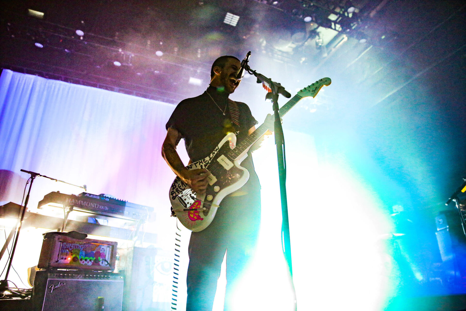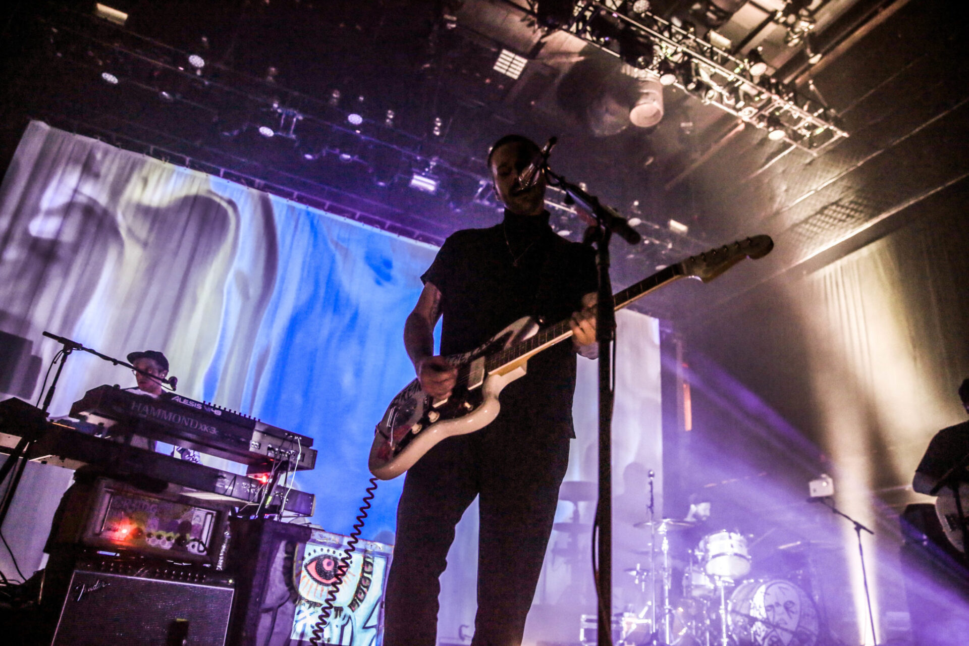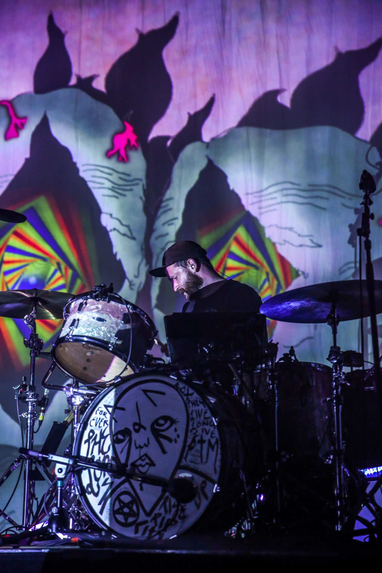 The band graced the stage under minimal lights and opened with a cover of Metallica’s “For Whom The Bell Tolls” before seamlessly flowing into their hit “Purple Yellow Red & Blue.” For each song, the projector shined a different aesthetic of trippy visuals behind the band. Throughout the night, Portugal. The Man left an aura of mystery within their set, performing in mostly black light, appearing for the most part as silhouettes (although the occasional strobe lit up their faces). Nonetheless, the band put on a great show that was very high energy. Their lengthy 16-song setlist included hits both new and old like “Holy Roller (Hallelujah),” “Modern Jesus” as well as their fair share of covers from The Beatles and Pink Floyd.