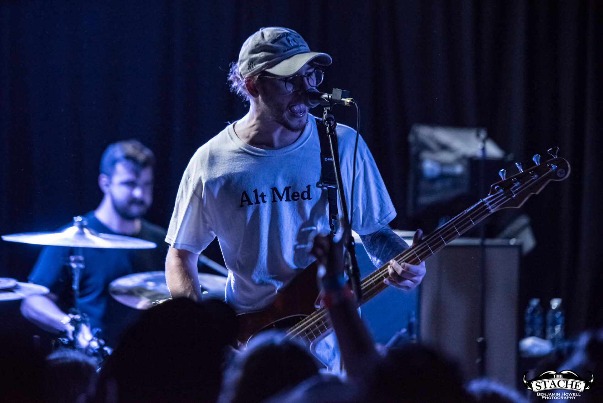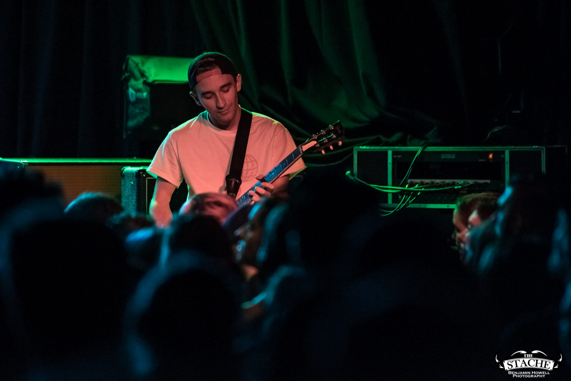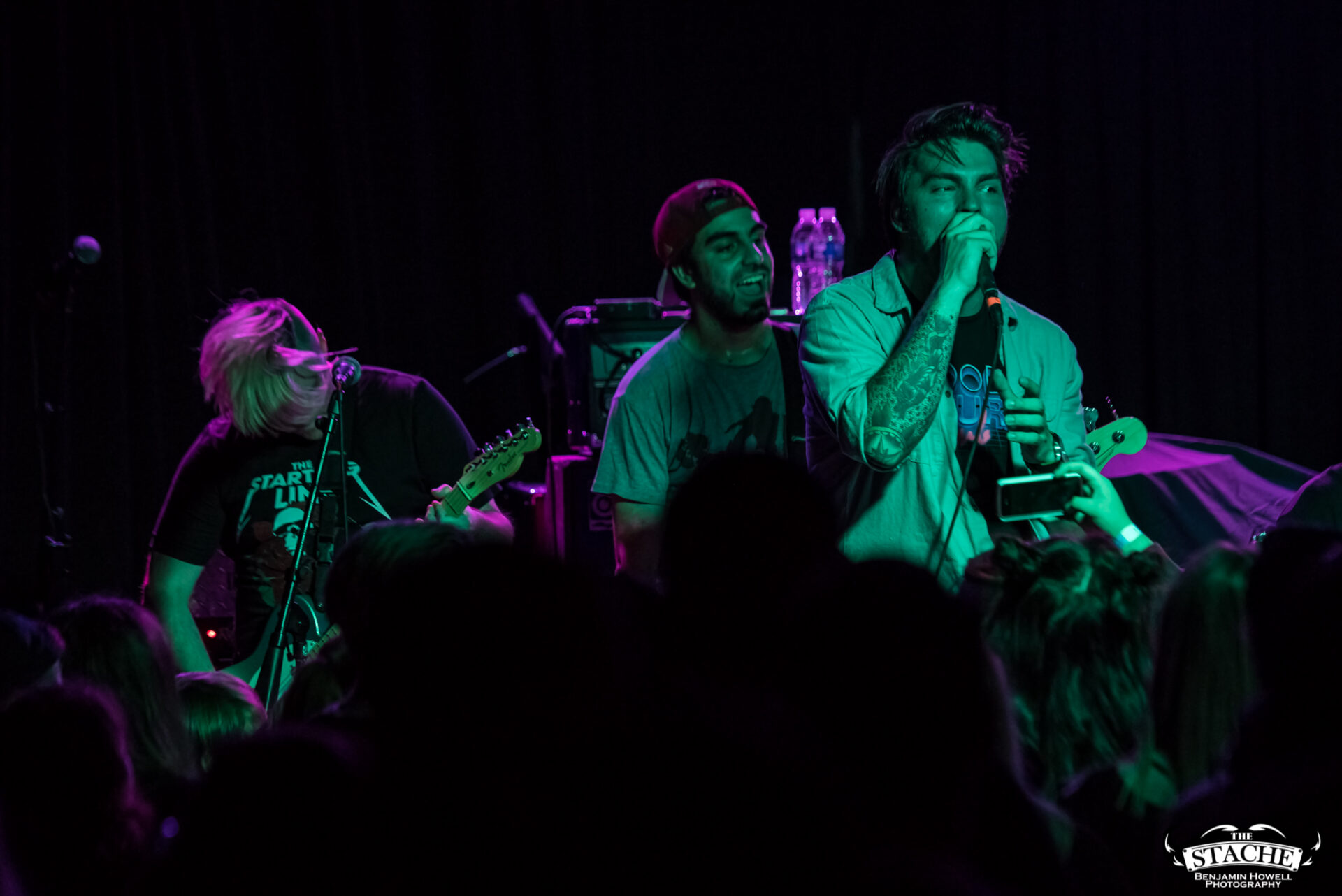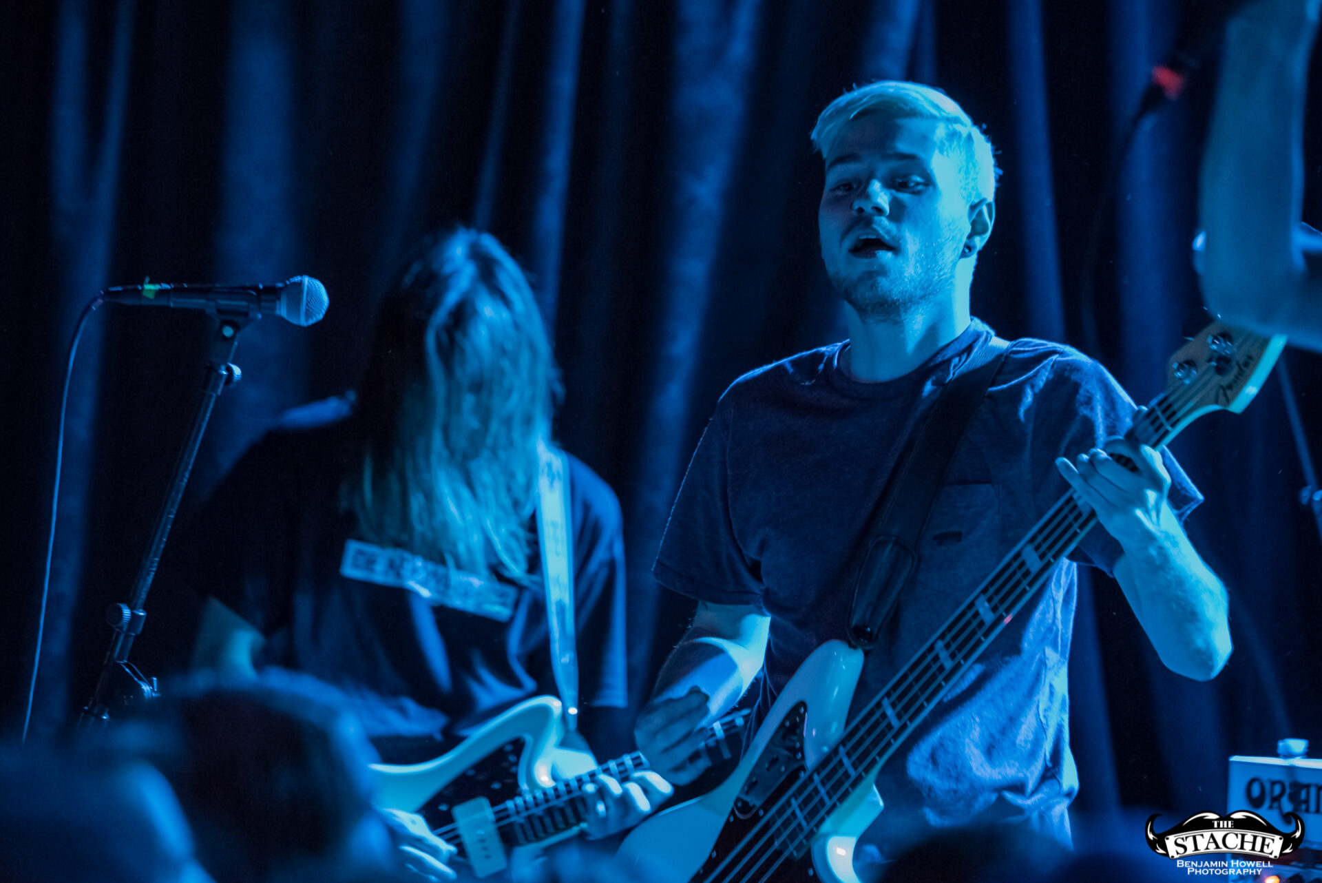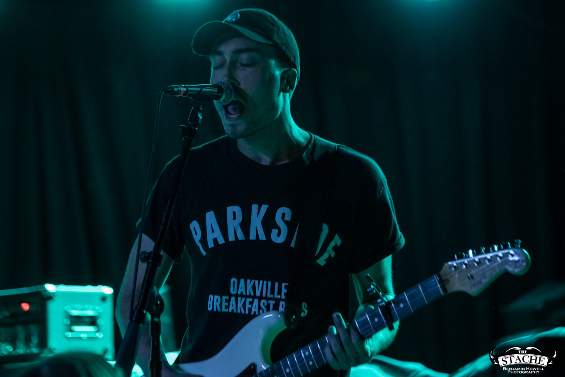 The changeover between Sleep On It and Homesafe is the first time most notice the rising temperature of The Stache. On the coldest winter nights this small space can feel like a furnace, so you can probably imagine what a packed show held at the tail end of summer feels like after people start moving. I myself first notice the heat when I slip on the wet floor and nearly spill a $7 hard cider on a group of girls trying to capture a snapchat filter on the stagehands, then again when a young man wearing a shirt he appears to have torn the sleeves off of himself just moments prior passes by and like a slug leaves a moist, sweat-induced impression on my red shirt. I walk outside to catch my breath and breathe clean air only to find cigarettes are still cool in certain pop-punk circles, and quickly retreat back into the increasingly damp venue with hopes for an early start.