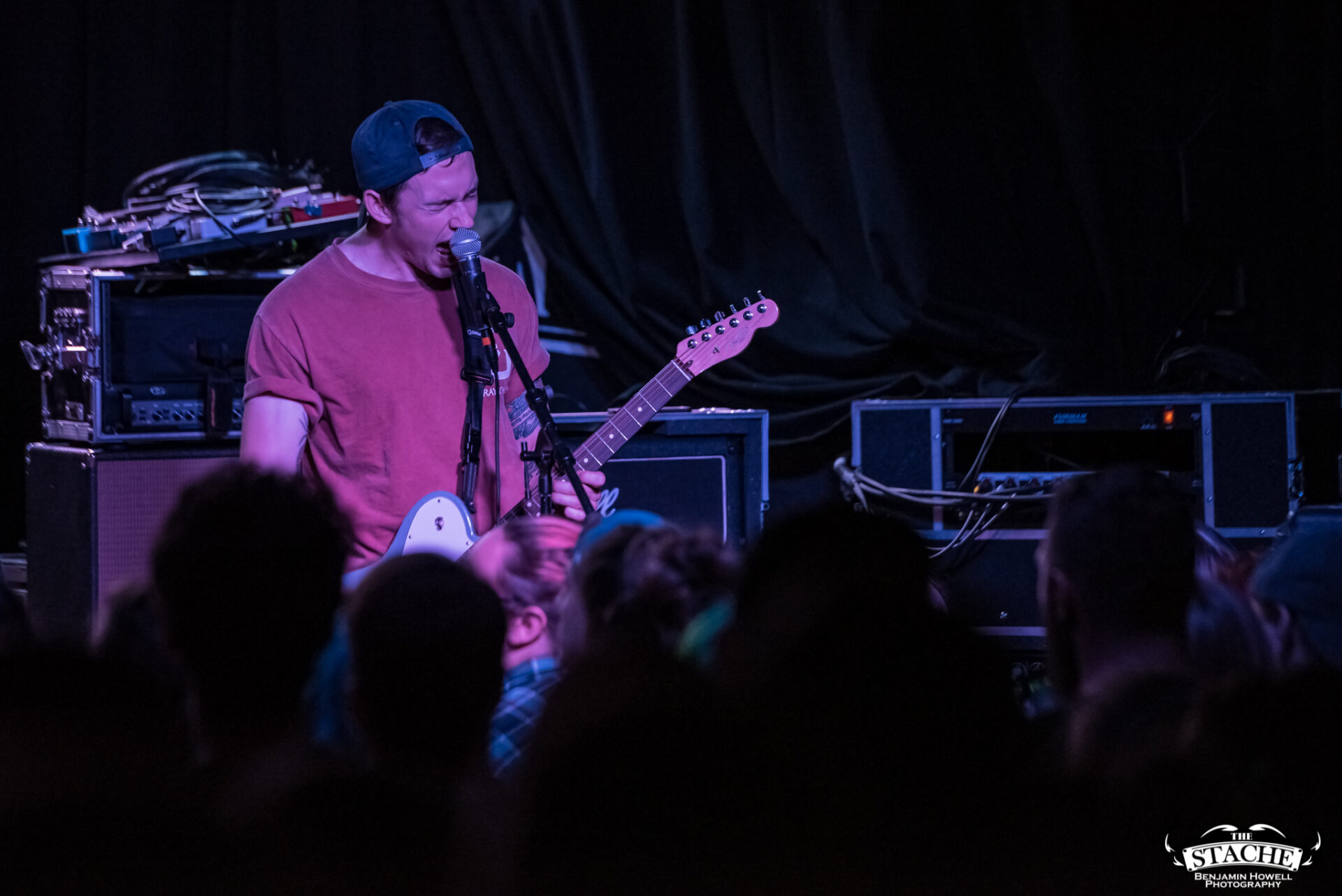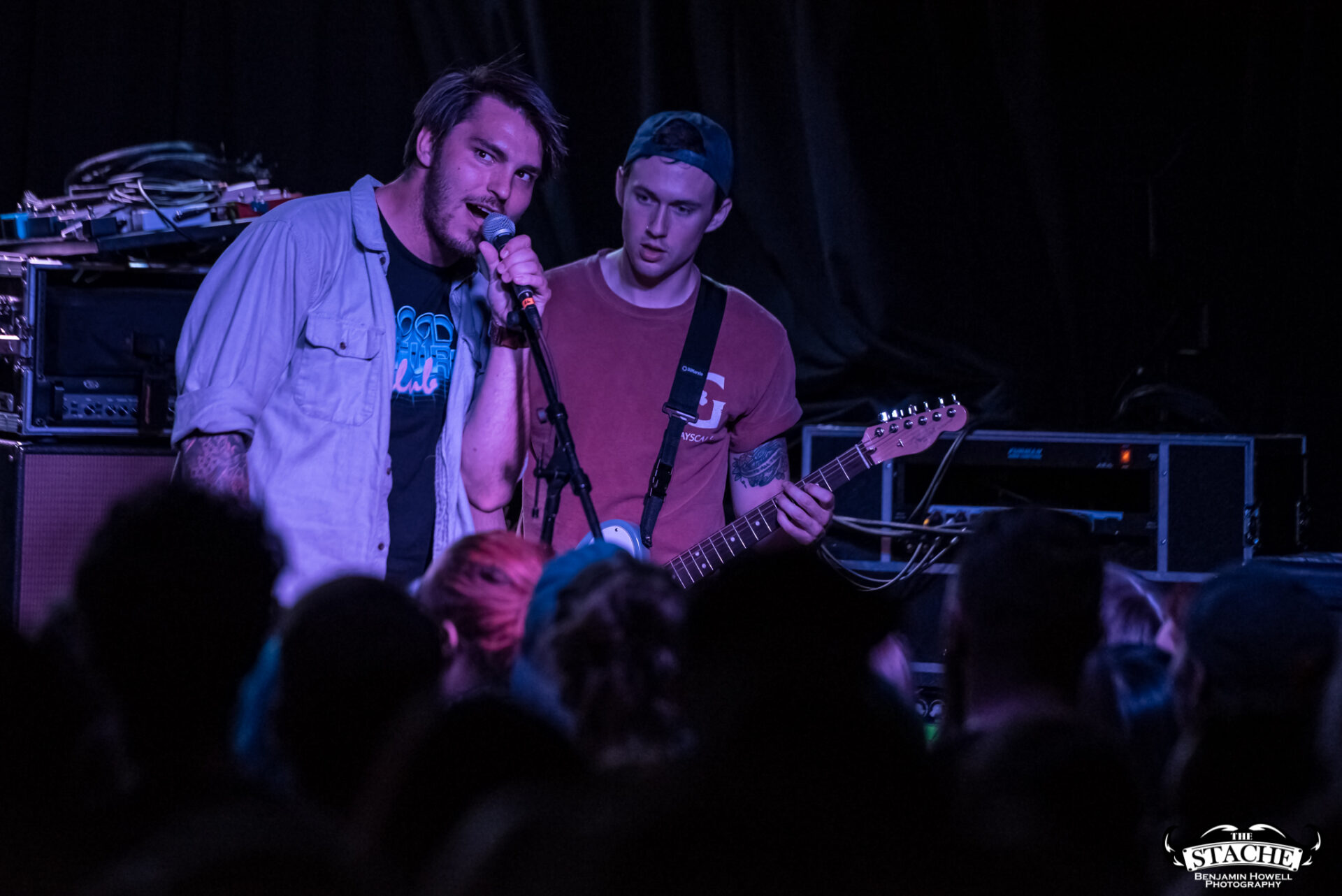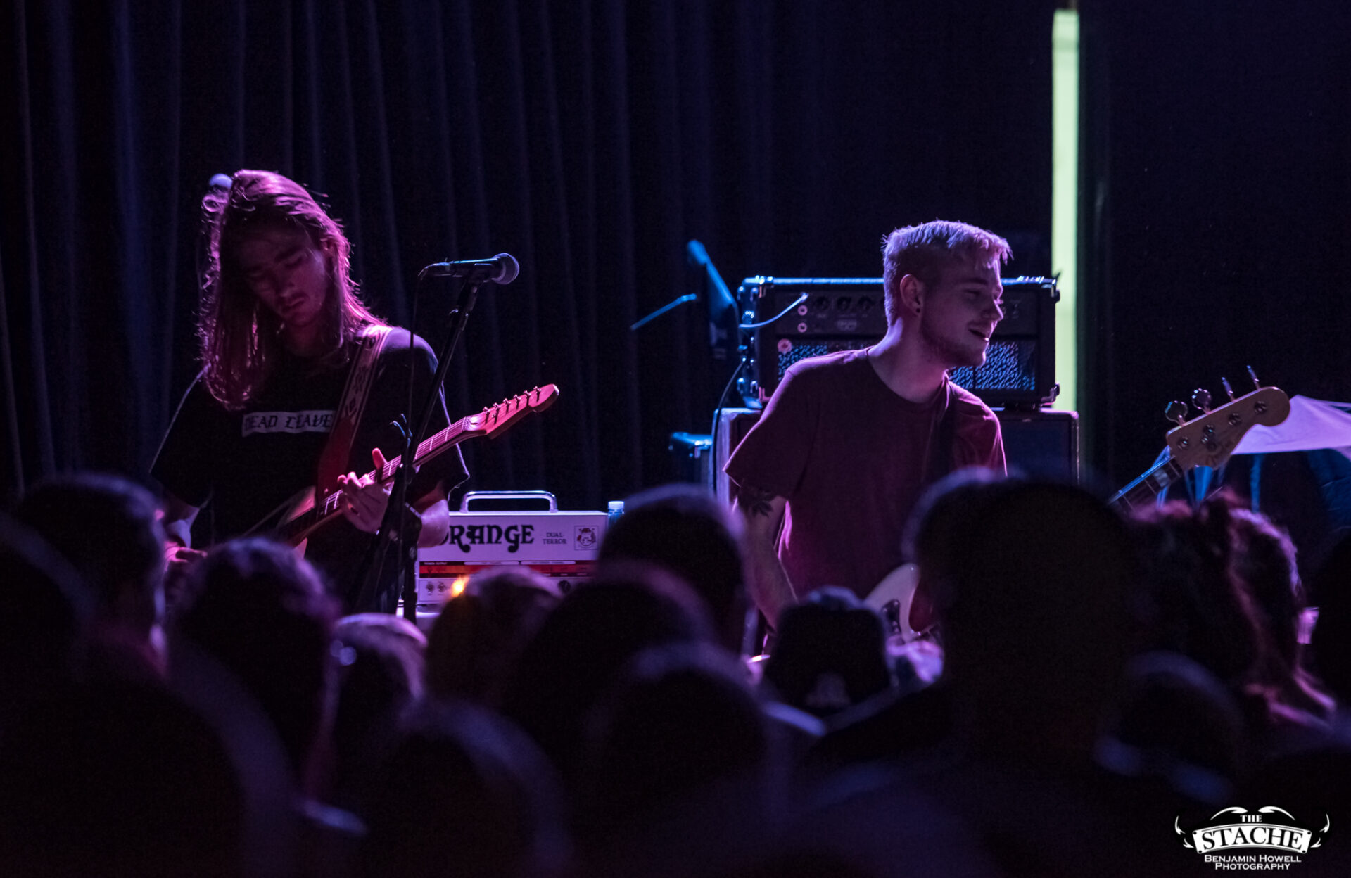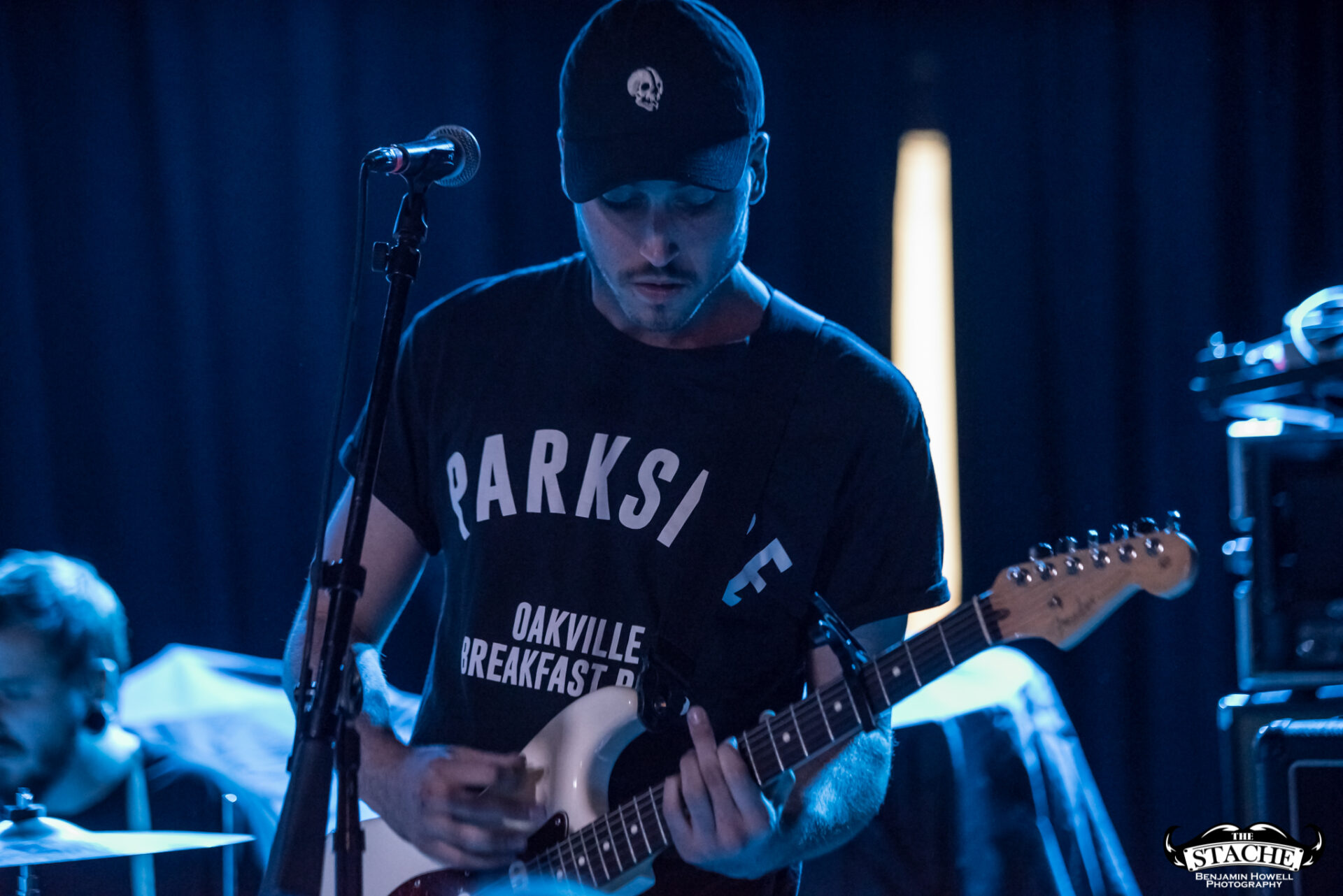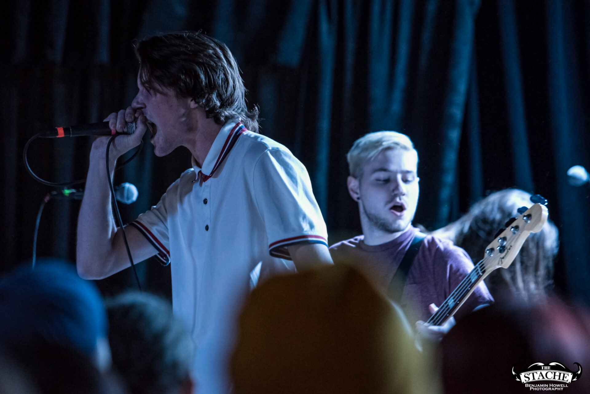 The changeover between Sleep On It and Homesafe is the first time most notice the rising temperature of The Stache. On the coldest winter nights this small space can feel like a furnace, so you can probably imagine what a packed show held at the tail end of summer feels like after people start moving. I myself first notice the heat when I slip on the wet floor and nearly spill a $7 hard cider on a group of girls trying to capture a snapchat filter on the stagehands, then again when a young man wearing a shirt he appears to have torn the sleeves off of himself just moments prior passes by and like a slug leaves a moist, sweat-induced impression on my red shirt. I walk outside to catch my breath and breathe clean air only to find cigarettes are still cool in certain pop-punk circles, and quickly retreat back into the increasingly damp venue with hopes for an early start.