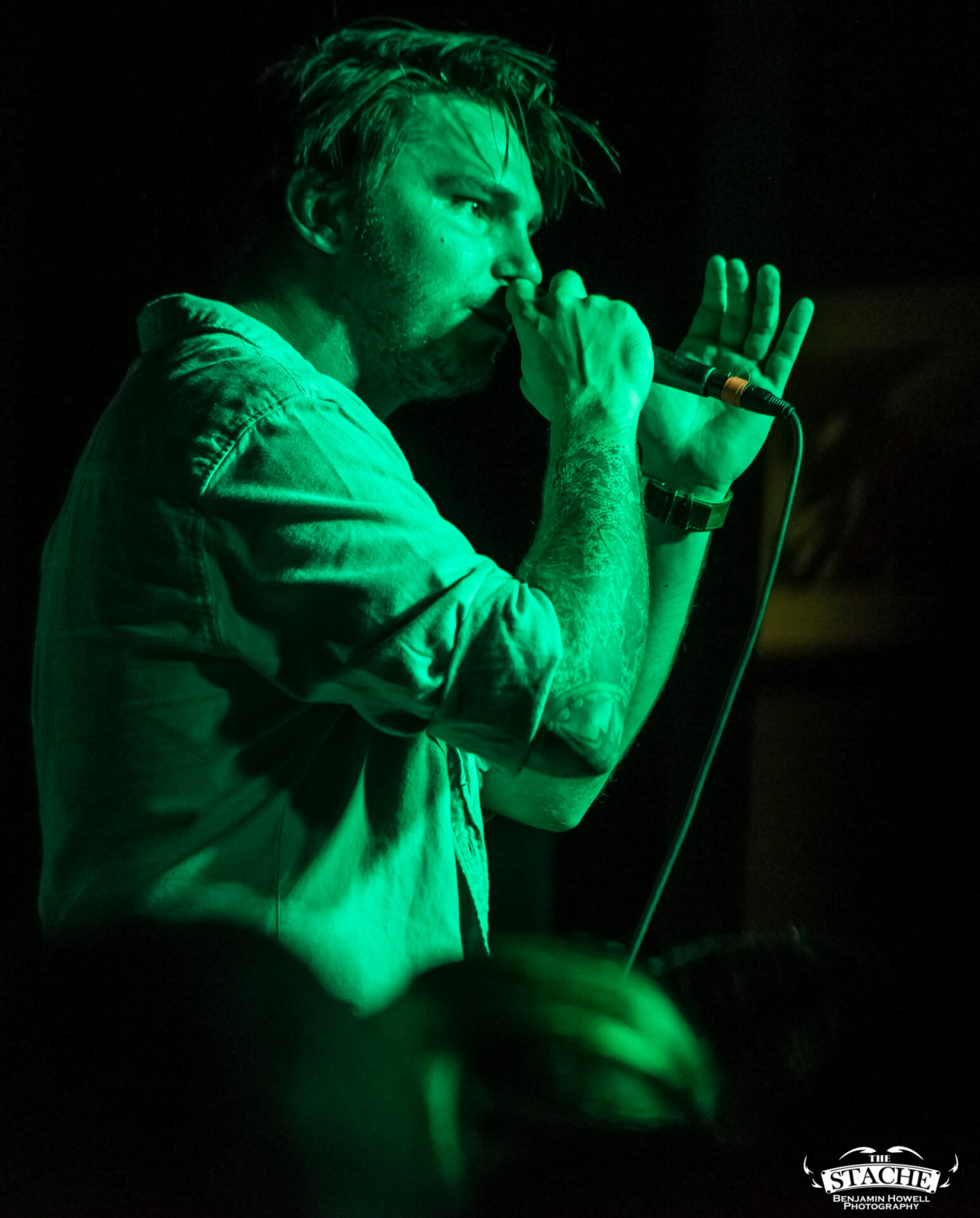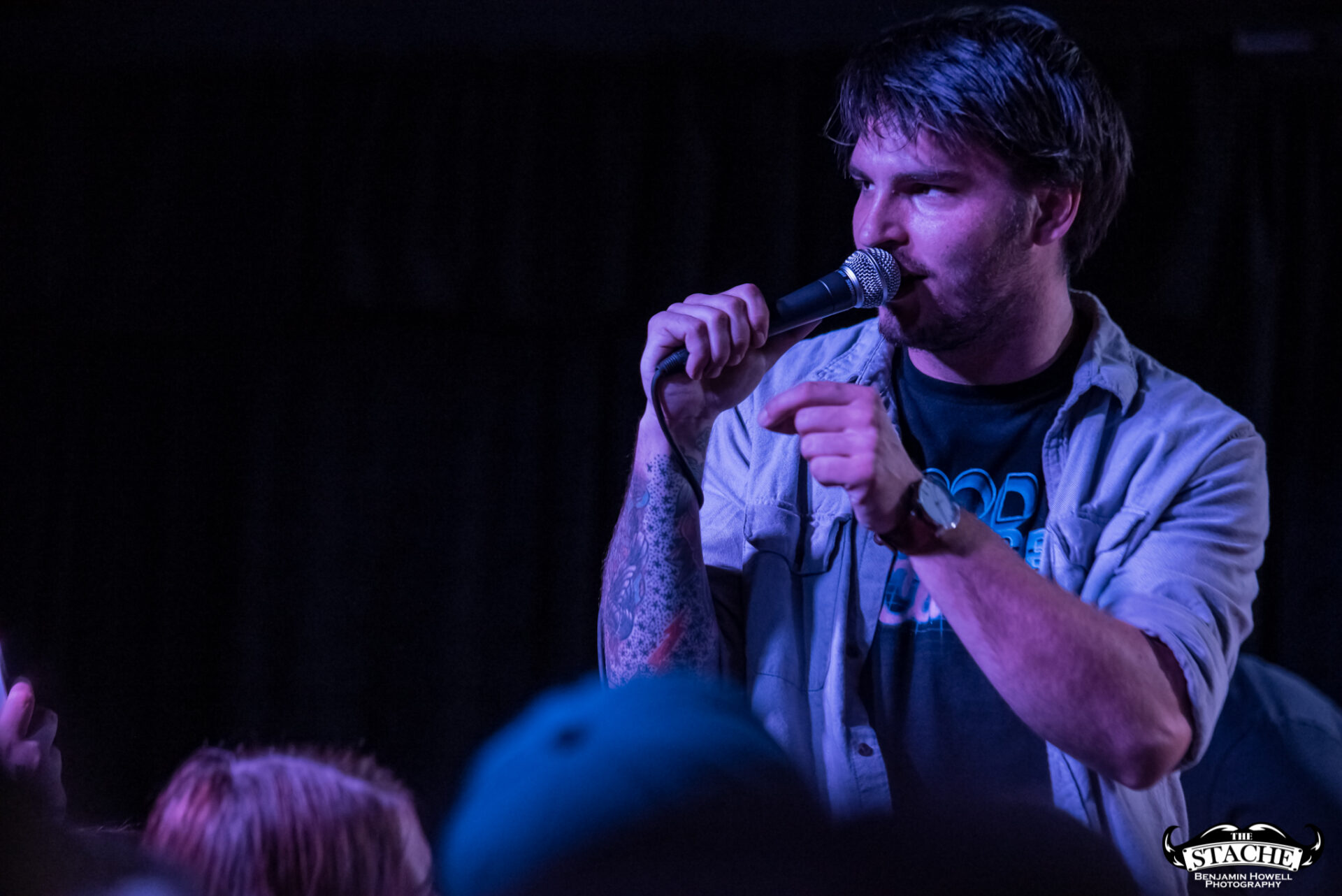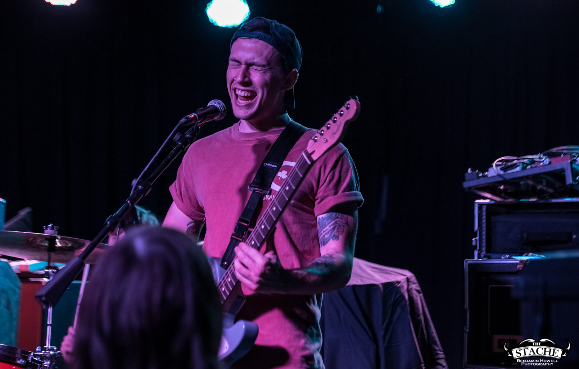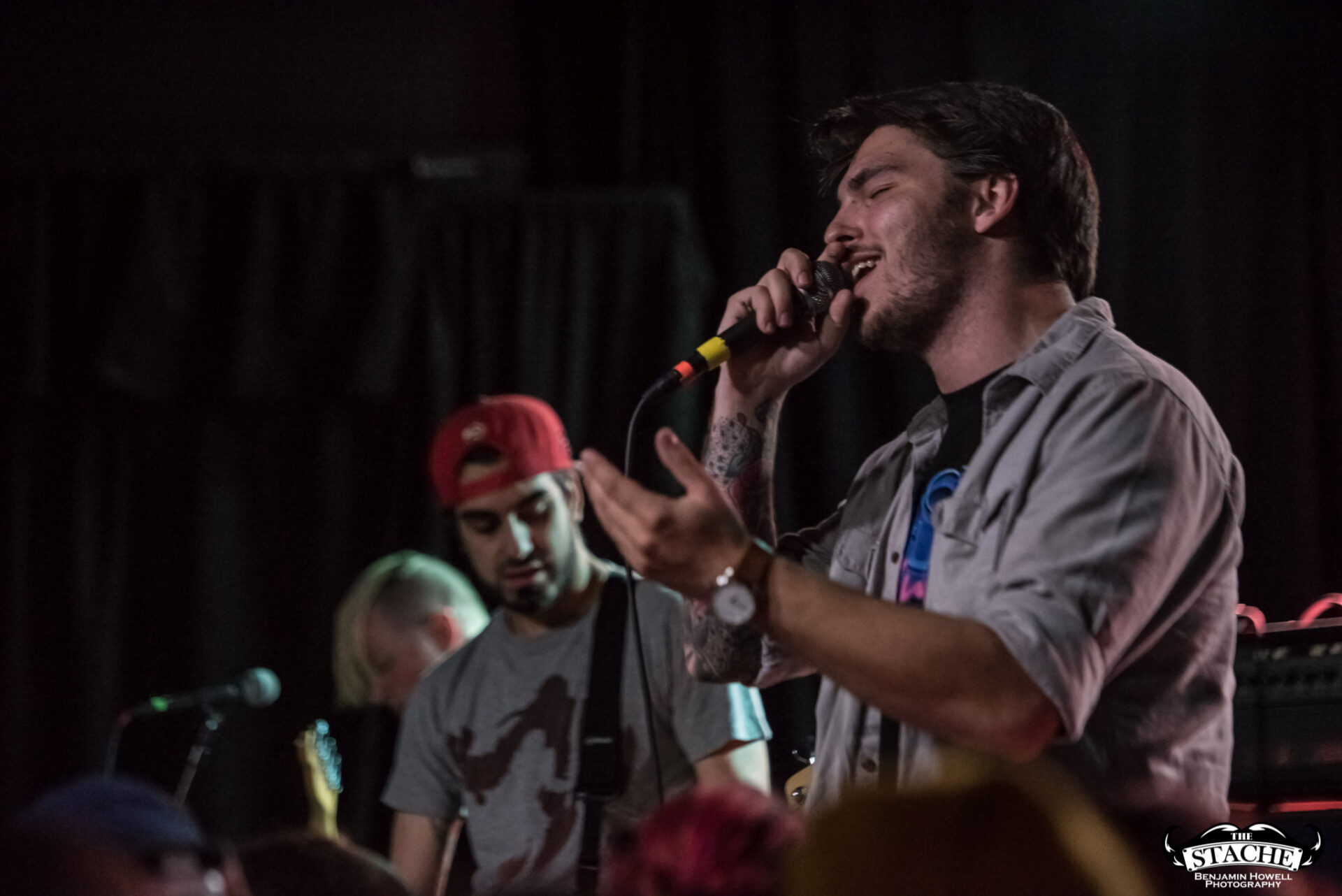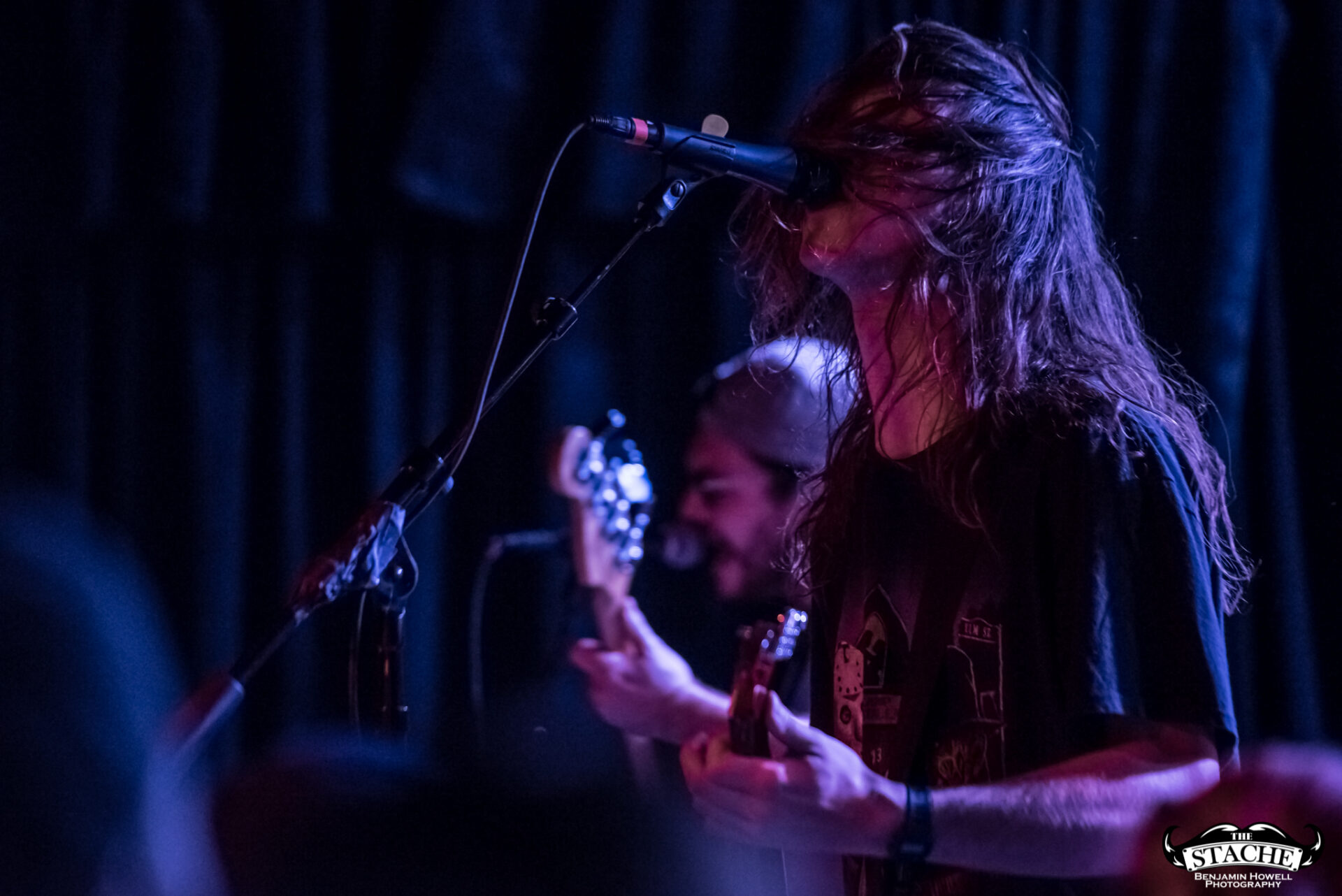 The changeover between Sleep On It and Homesafe is the first time most notice the rising temperature of The Stache. On the coldest winter nights this small space can feel like a furnace, so you can probably imagine what a packed show held at the tail end of summer feels like after people start moving. I myself first notice the heat when I slip on the wet floor and nearly spill a $7 hard cider on a group of girls trying to capture a snapchat filter on the stagehands, then again when a young man wearing a shirt he appears to have torn the sleeves off of himself just moments prior passes by and like a slug leaves a moist, sweat-induced impression on my red shirt. I walk outside to catch my breath and breathe clean air only to find cigarettes are still cool in certain pop-punk circles, and quickly retreat back into the increasingly damp venue with hopes for an early start.
