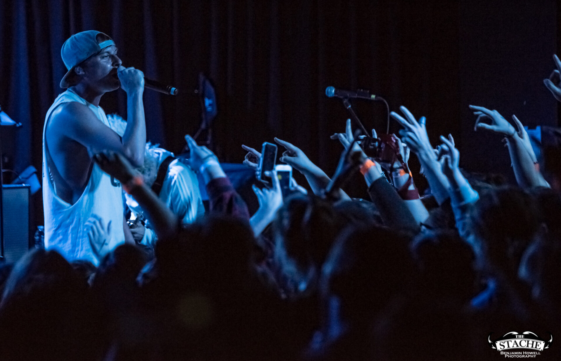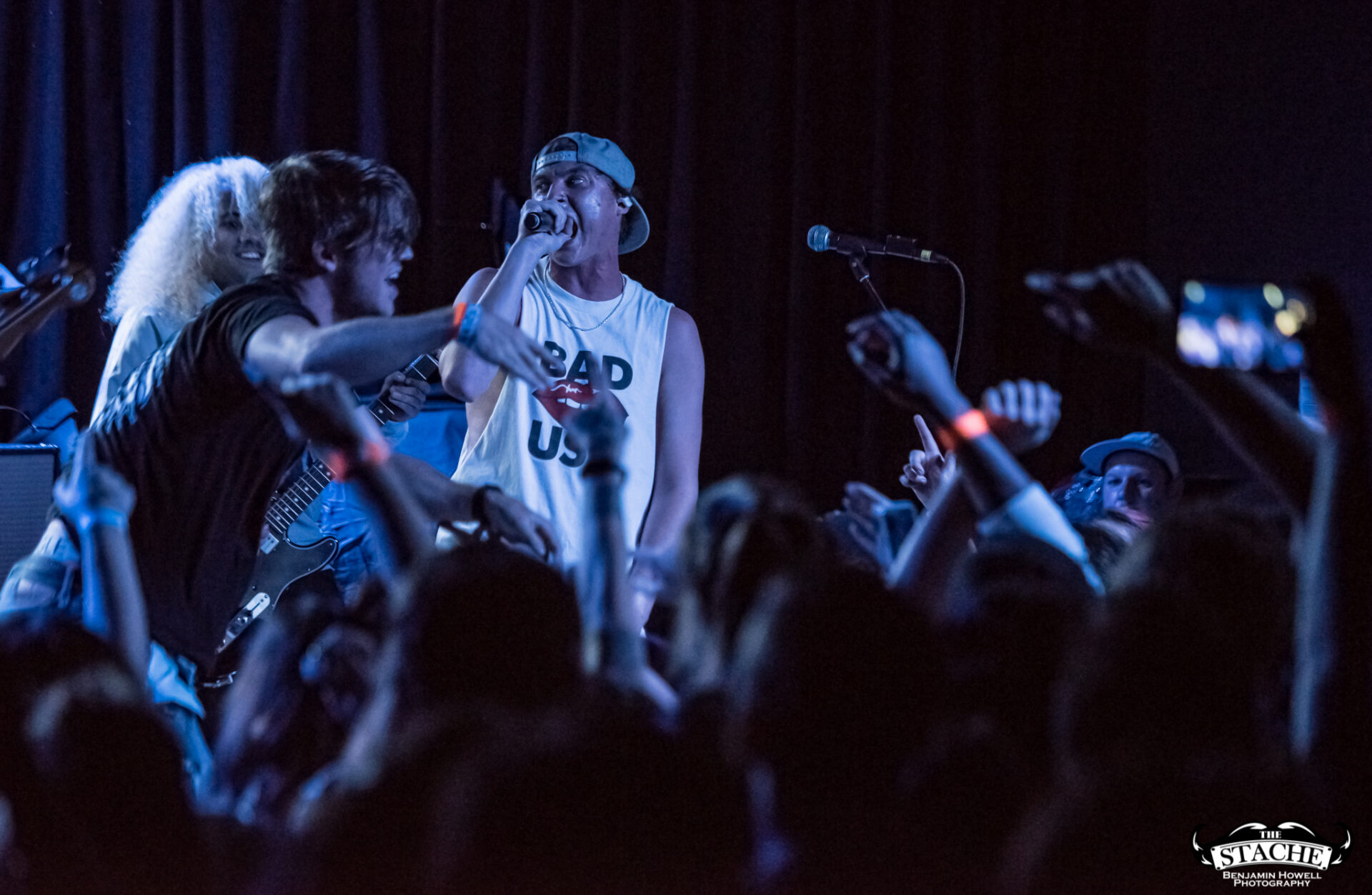 When the band digs a bit deeper into their catalog I find myself with a front row seat to a moment I would not believe if I had not seen it with my own two eyes. I see a young woman, no older than 18, begin taking numerous Snapchat story updates as one particular song plays. She captures three or four clips then hands her phone to a friend and momentarily disappears. Her friend takes the phone, points it back at the stage, and begins recording again. Just as this happens the girl who vanished moments prior appears on stage and dives into the audience precisely where her friend is standing. She is so on the mark that she knocks her phone out of her friend’s hand while diving, which in turn makes both of them fall to the ground. The people nearby help them up, and the girl – having just assured herself her phone screen was not cracked – posts the stage dive update. I didn’t see the final clip, but I assume it was epic.