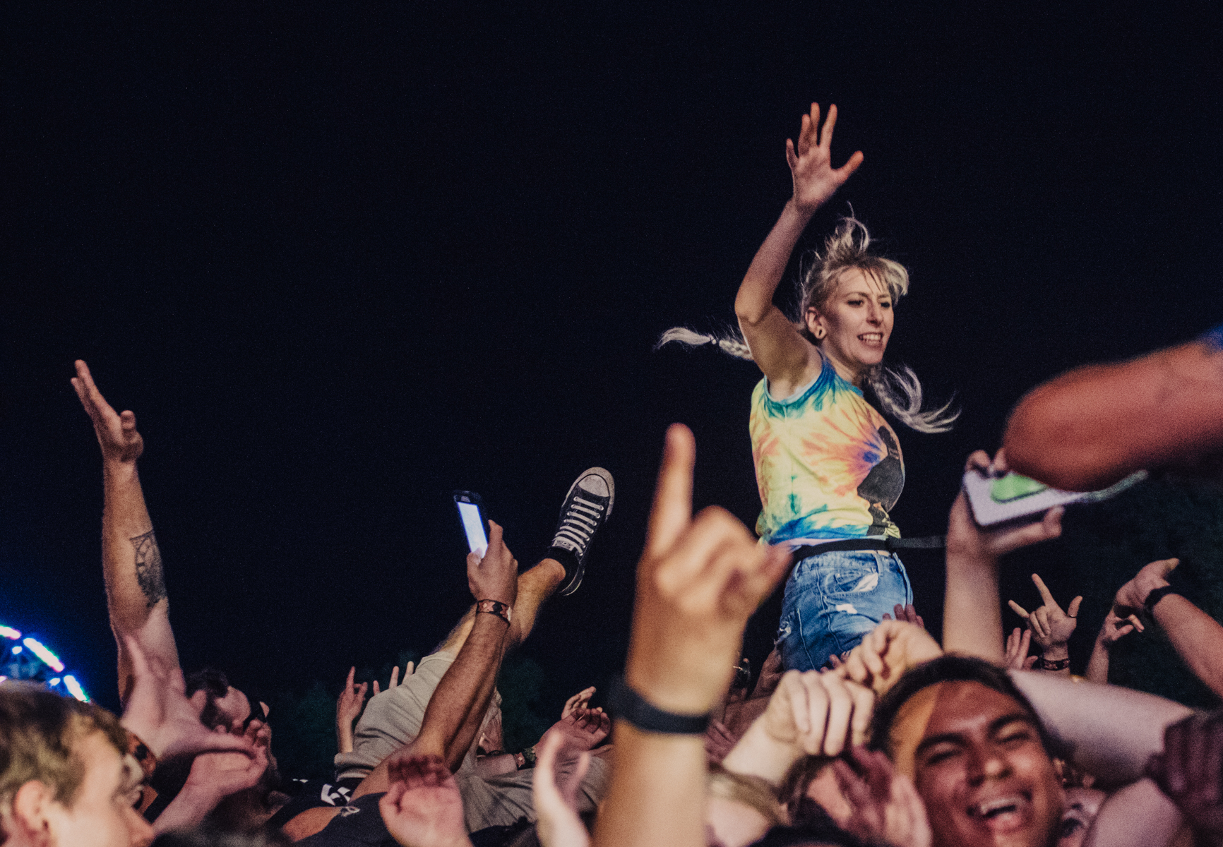 Mayday Parade’s crowd was one of the most dedicated of the day, with fans standing at the barricade for hours to see Derek Sanders’ long locks and sick dance moves. The band released the 10th anniversary edition of A Lesson in Romantics in March, which featured never-before-heard demos and received criticism from their producer for not giving former vocalist Jason Lancaster credit in the commentary. Despite the band moving on from Lancaster, the fans were elated to hear such songs as “Jamie All Over”, which featured a surprise duet with Joe Taylor of Knuckle Puck.