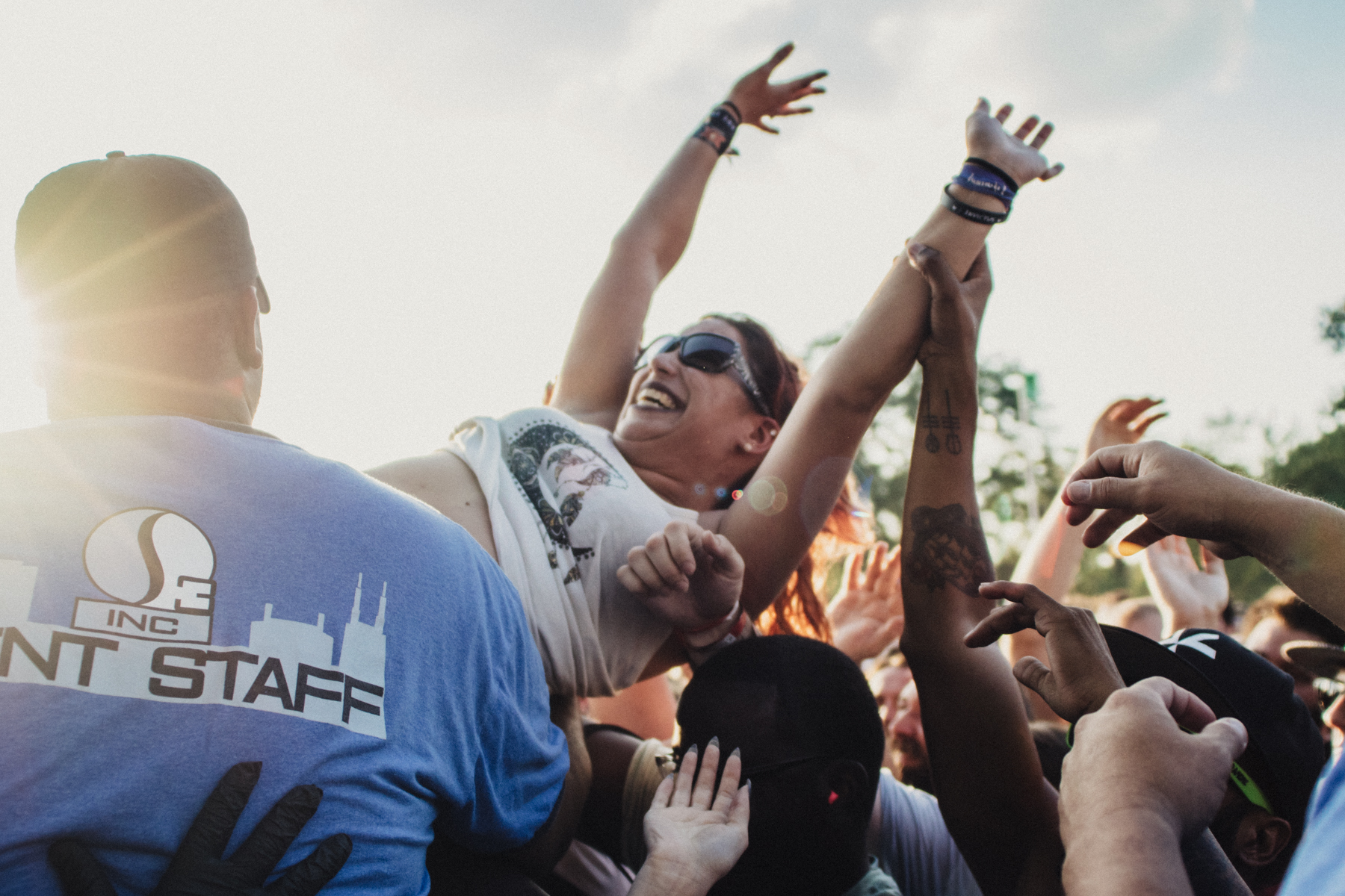Gogol Bordello are always a must-see act, whether playing a small club or headlining a stage at Riot Fest. The multi-instrumental gypsy punk group, fronted by Eugene Hutz, have a number of massive hits under their belt, but they’re the kind of band you could see only knowing one song but fall in love with their entire set. Halfway through Gogol Bordello’s set, New Found Glory played the Rise Stage on the other side of the park. The band is currently celebrating their 20th anniversary (which will make most people who listened to them in middle school feel incredibly old) with a worldwide tour and a nostalgic setlist. Their set had some of the biggest diehard fans of the day, many who had waited at the stage’s barricade since the festival opened at noon (the band played at 7pm).