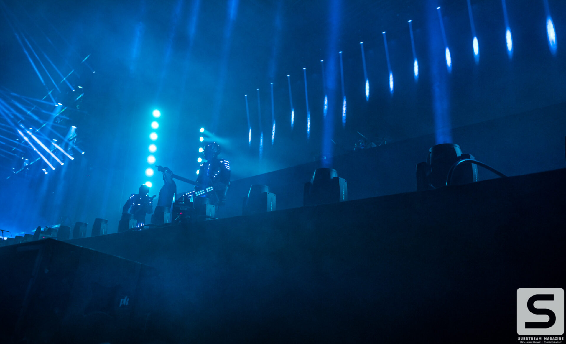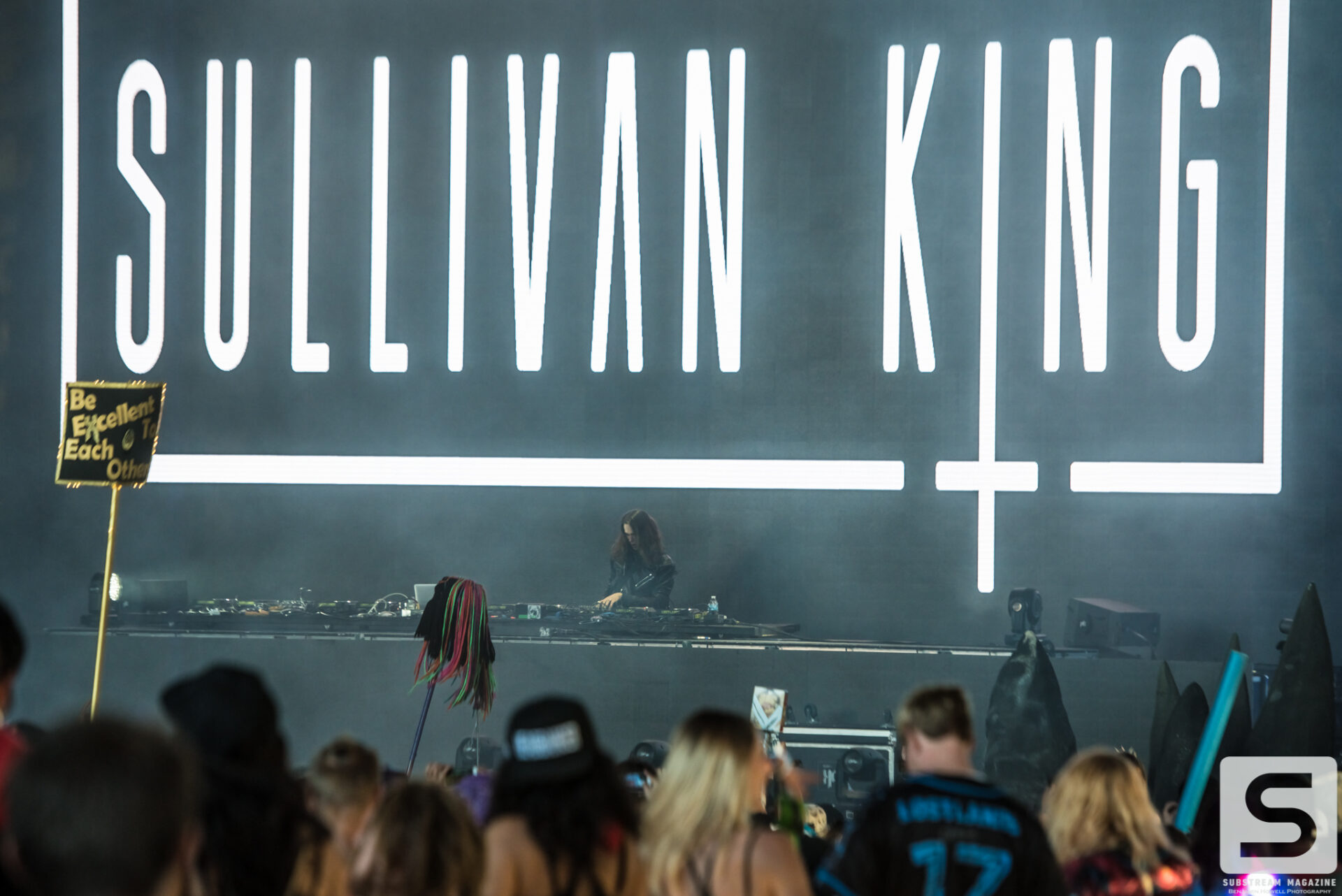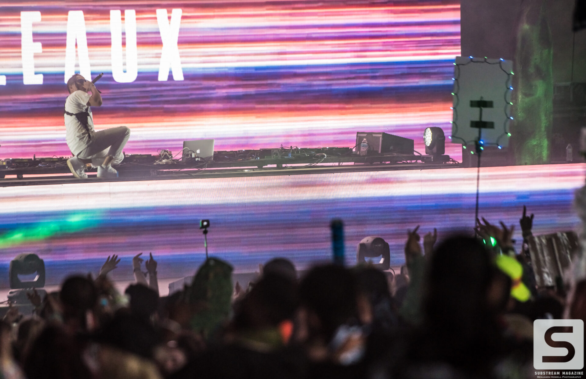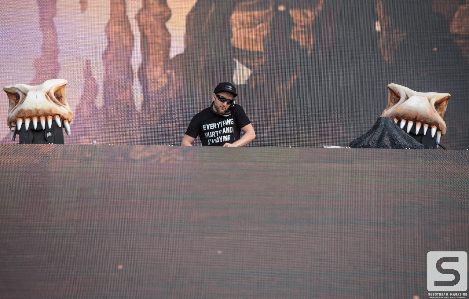 Everyone seemed to have a favorite day, mine was the second. I spent the majority of the day capturing as many artists as I could, from Sullivan King to Cookie Monsta, Snails, Black Tiger Sex Machine and many more. It was costume day, so no matter which way you turned there was always something interesting to see. During the early afternoon I ran across a brawl with over 30 inflatable dinosaurs that was hilarious to watch. But the real highlight for me came when Destroid (Excision/Downlink/KJ Sawka) took the stage in their fully illuminated suits. Everyone on the production team seemed to really be going the extra mile for this set, which is why I wasn’t entirely surprised when I first heard the sound cut out. Initially I figured something had just blown, but then I saw a some flickering flames and heard a voice come across the speakers saying, “I think we just destroyed the stage.” Running back to grab my camera, I managed to snag a quick shot of the flames before they went out. The crowd politely moved back out of harm’s way, and the Paradox stage was shut down for about 20 minutes before being allowed to resume without pyro for the rest of the night. As of Saturday night the festival was 100% sold out.