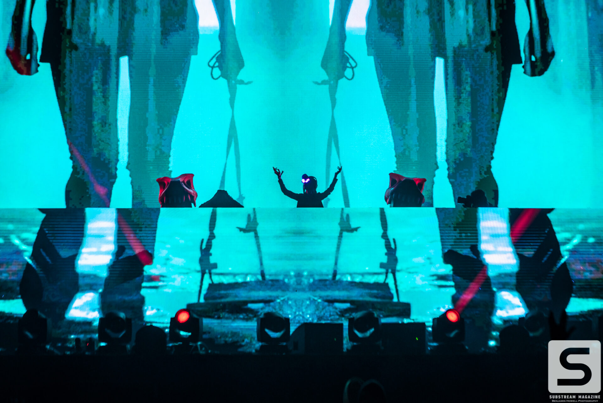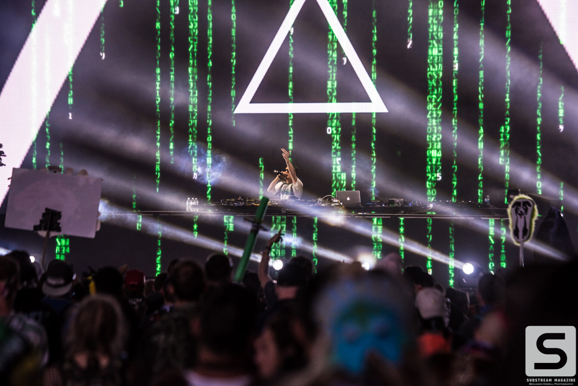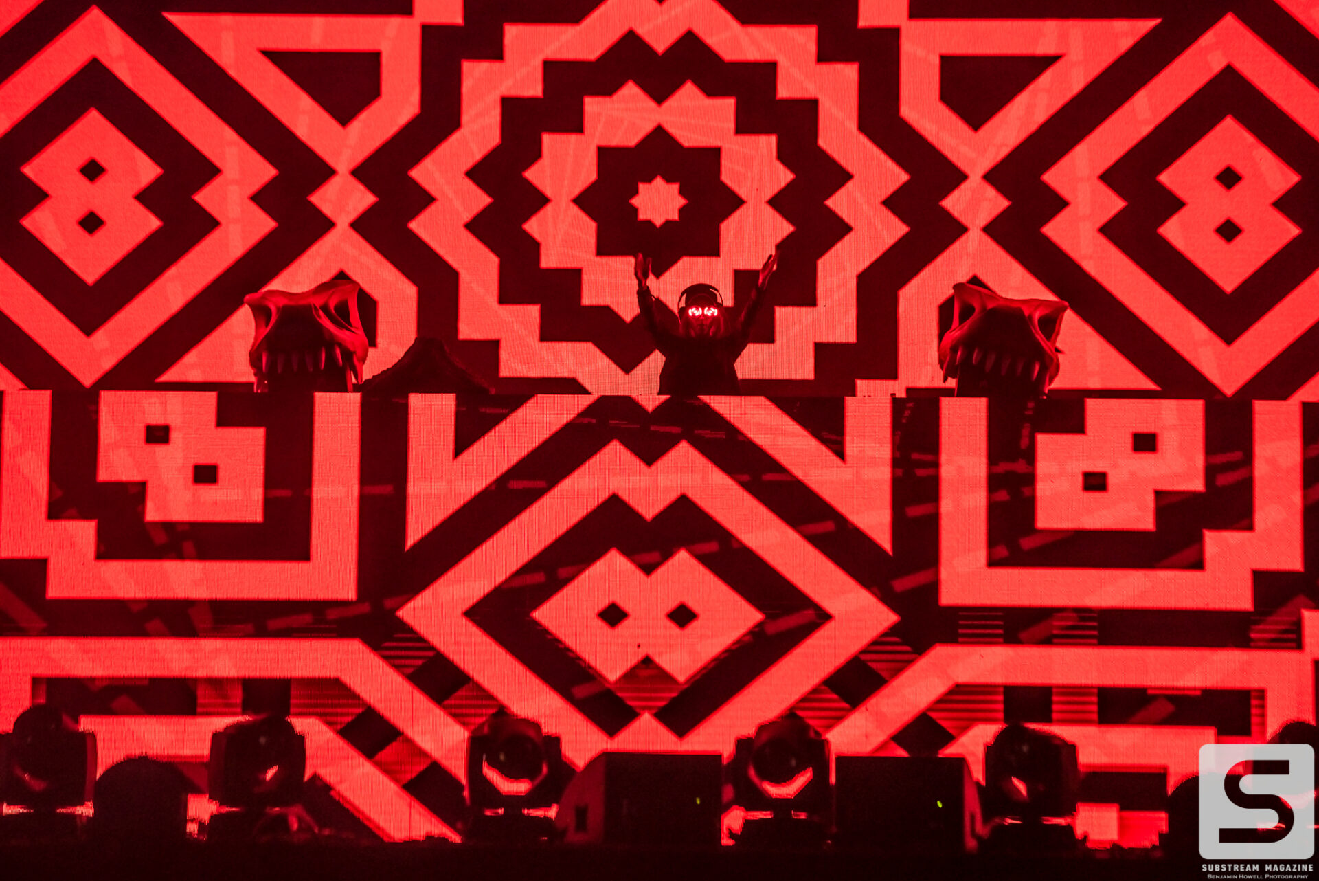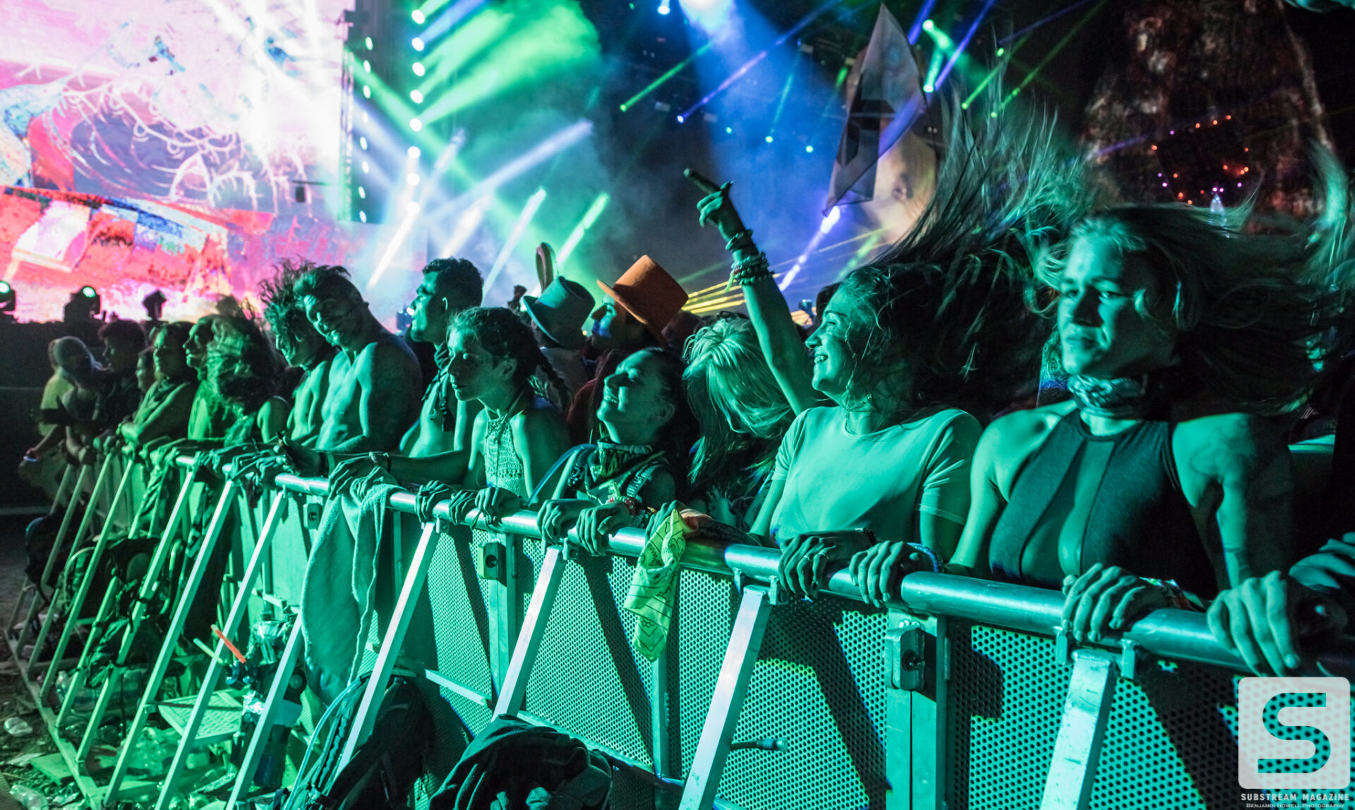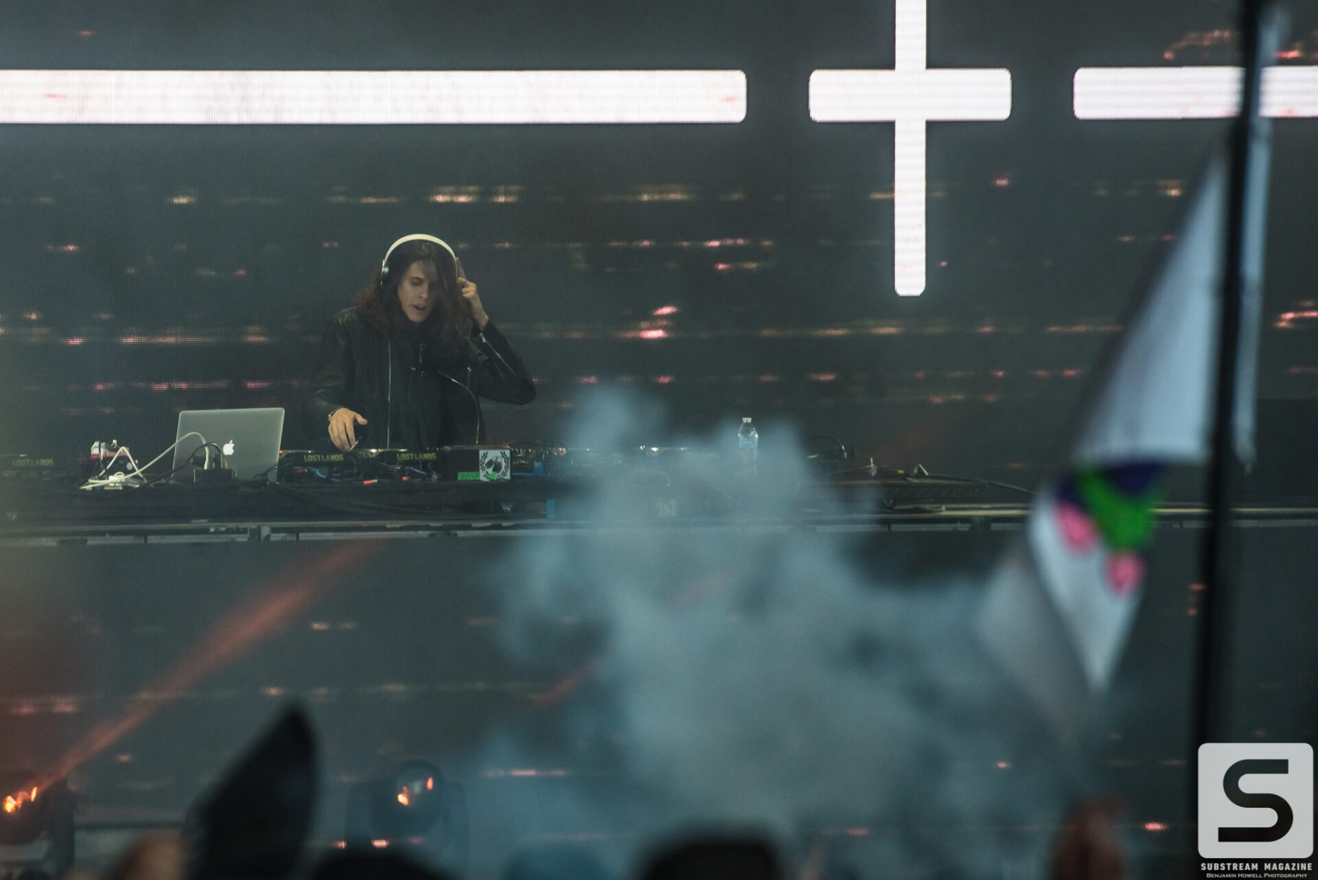 With such an incredible lineup, it’s hard to pick highlights from the evening, but nobody will forget when Excision finally took the stage. The headbangers had secured their spots on the rail that ran all the way from the stage, through the crowd, and to the sound booth. Smoke was rolling from the volcanos. We finally hear his voice, “Loooosssst Lannnnndss,” and the crowd goes completely berserk. The lights go down and the intro music for Jurassic Park begins to play. Minutes later his set begins with fire shooting from every part of the stage and the volcanos erupting into the sky with green, pink and orange flames. The Paradox lights up with the visuals that most of us have only seen in cell phone videos and it’s completely breathtaking. Everyone in the crowd is either losing their minds or frozen in a state of ecstasy. I have never experienced so much energy in all of my years of covering festivals, and the best part was there was still hours of talented artists left ahead of us. Even as the night approached 40 degrees, the crowd remained impressively active.
