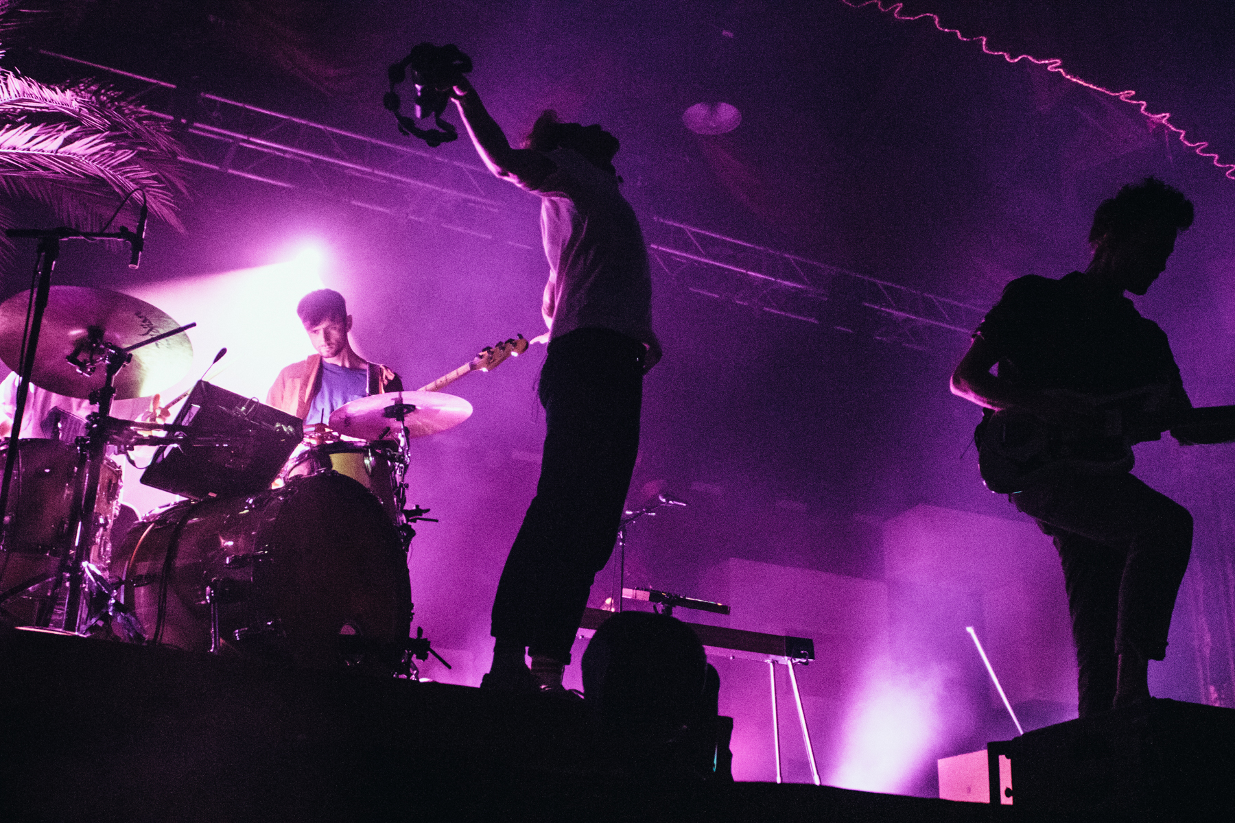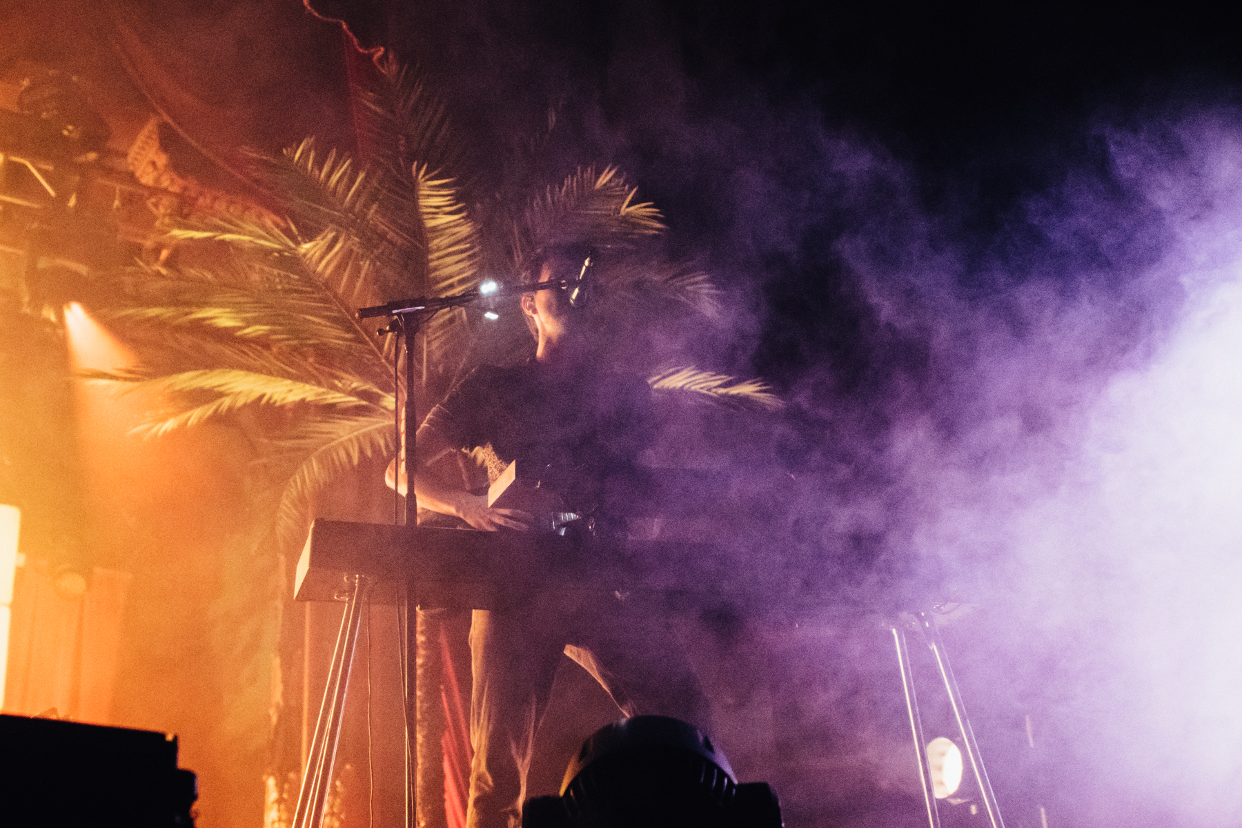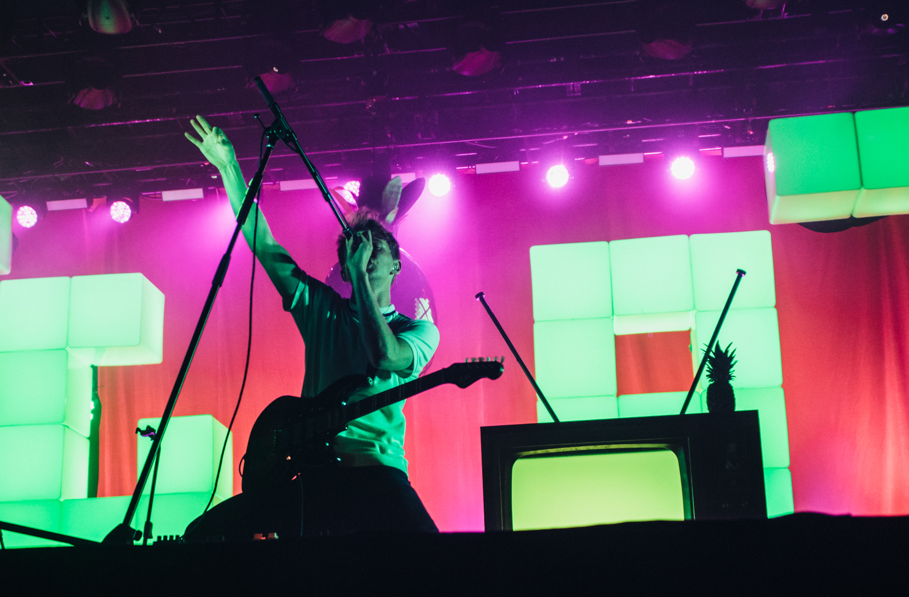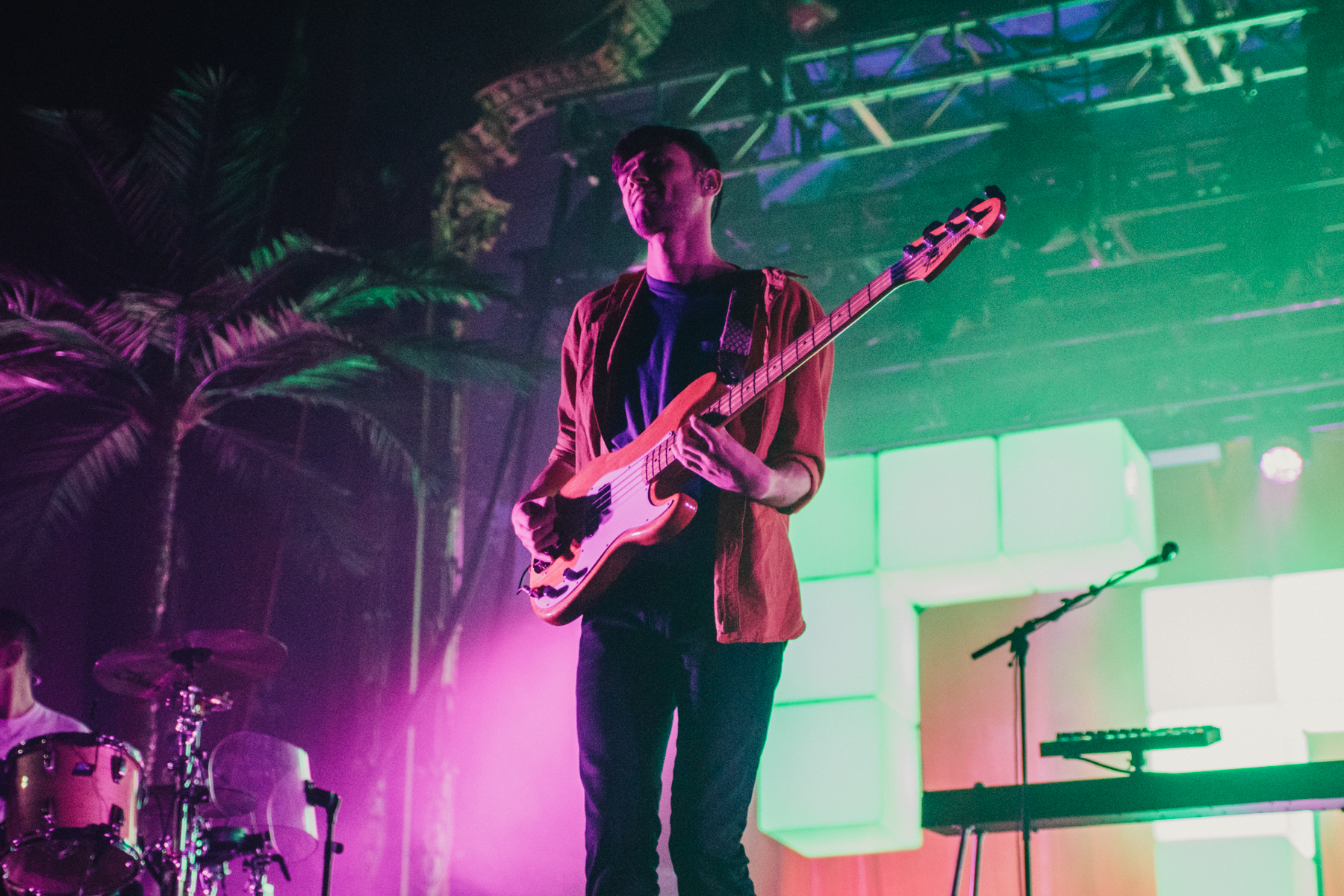 Glass Animals frontman Dave Bayley refuses to stand still. When the band came on for their set, it was nearly impossible to track him for a few moments, as he immediately darted from one side of the stage to the other. The band’s aesthetic does wonders for their live show; the stage was adorned with 12-foot palm trees, a watermelon drum set, and ever-changing rainbow lights. No two frames that came out of my camera were the same. Similar to the last time they were in Chicago, Glass Animals started off the night with “Life Itself”, the from their newest album, How to be a Human Being. The album reached the Top 20 in the US charts and found a home in America’s indie rock staples. They also played hits from Zaba, including “Black Mambo” and “Hazey”, two songs that perfectly capture the band’s peanut butter vibes. The entire show was loaded with passion, electricity, and their assurance that they’re only going to get bigger.