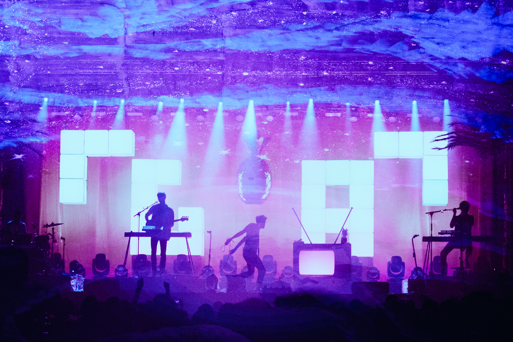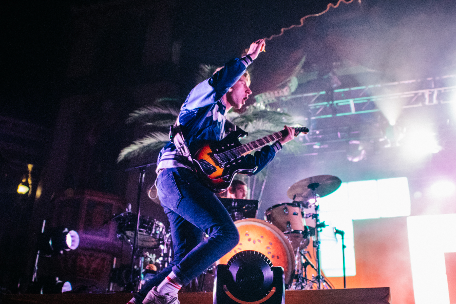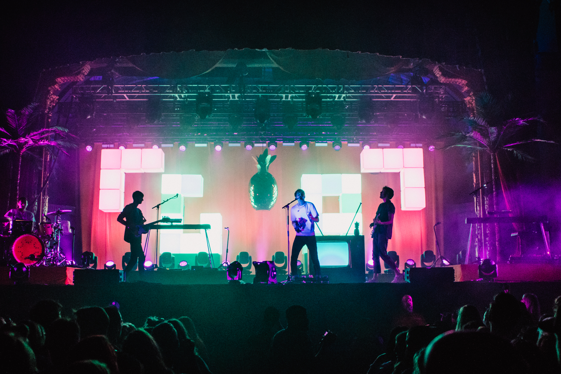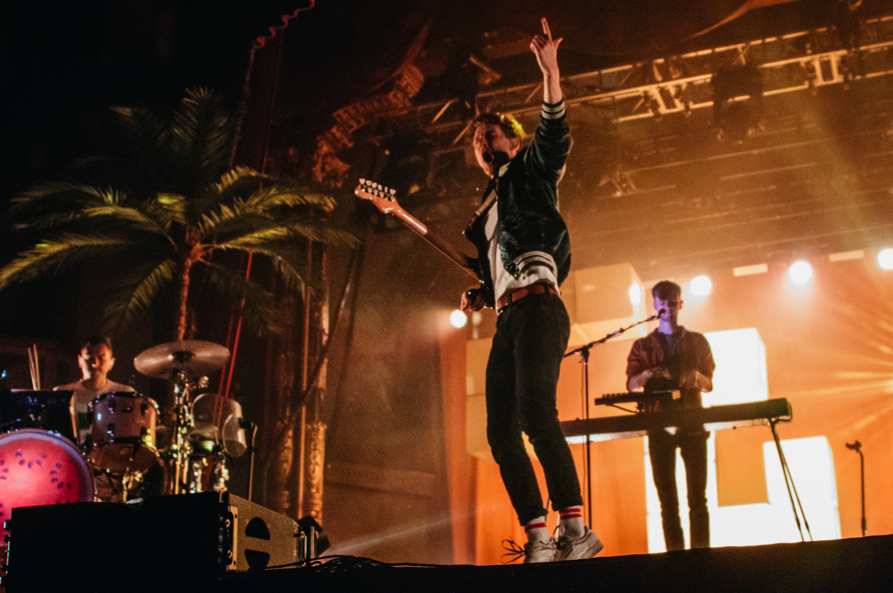 Glass Animals frontman Dave Bayley refuses to stand still. When the band came on for their set, it was nearly impossible to track him for a few moments, as he immediately darted from one side of the stage to the other. The band’s aesthetic does wonders for their live show; the stage was adorned with 12-foot palm trees, a watermelon drum set, and ever-changing rainbow lights. No two frames that came out of my camera were the same. Similar to the last time they were in Chicago, Glass Animals started off the night with “Life Itself”, the from their newest album, How to be a Human Being. The album reached the Top 20 in the US charts and found a home in America’s indie rock staples. They also played hits from Zaba, including “Black Mambo” and “Hazey”, two songs that perfectly capture the band’s peanut butter vibes. The entire show was loaded with passion, electricity, and their assurance that they’re only going to get bigger.