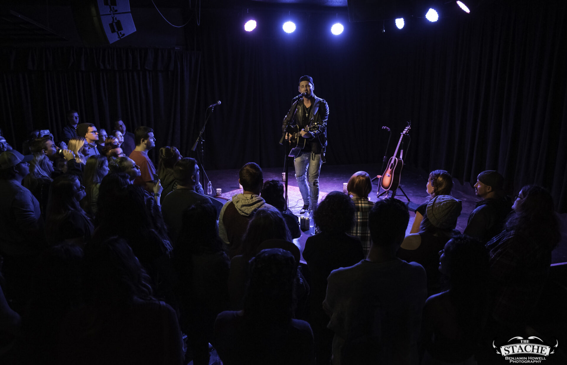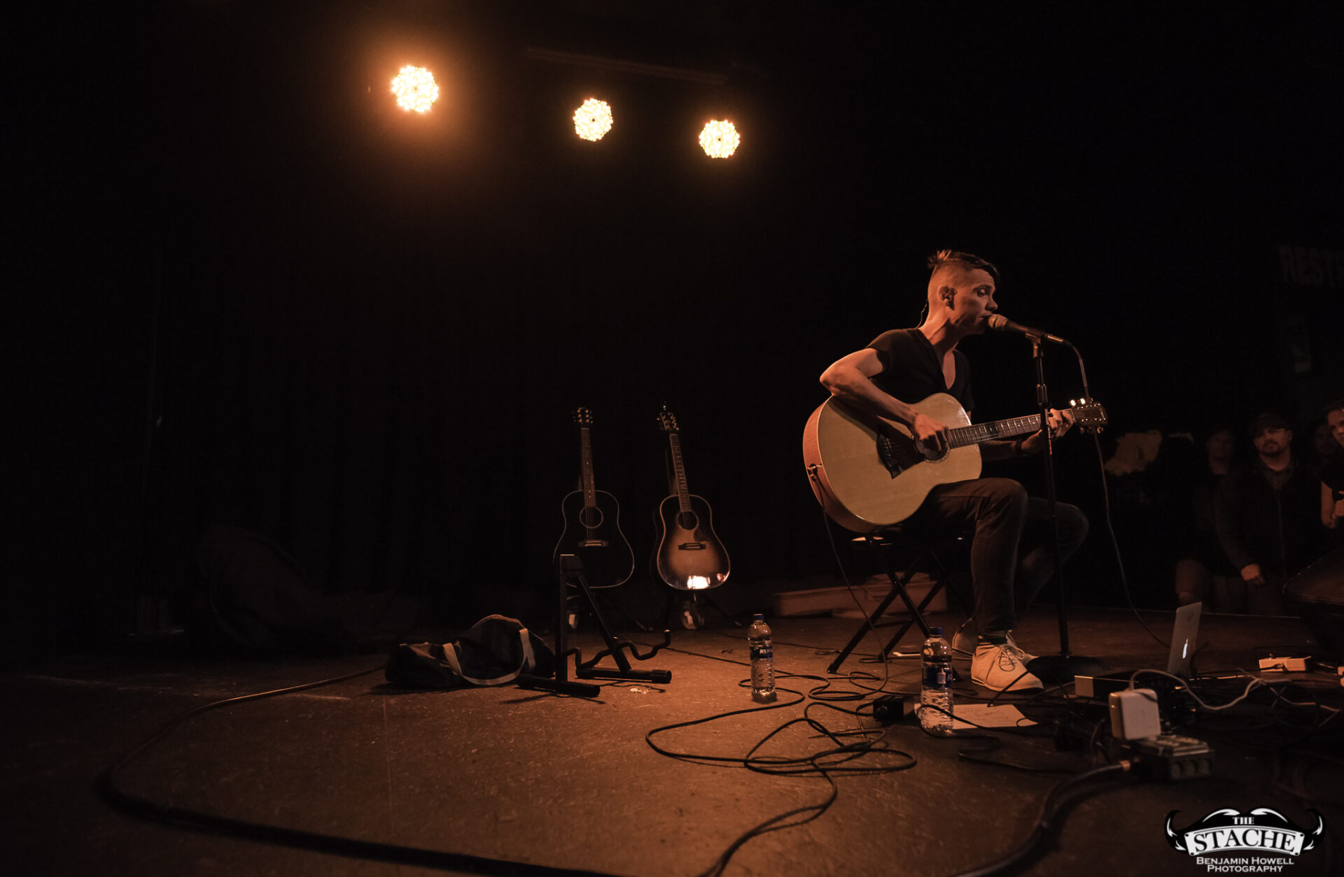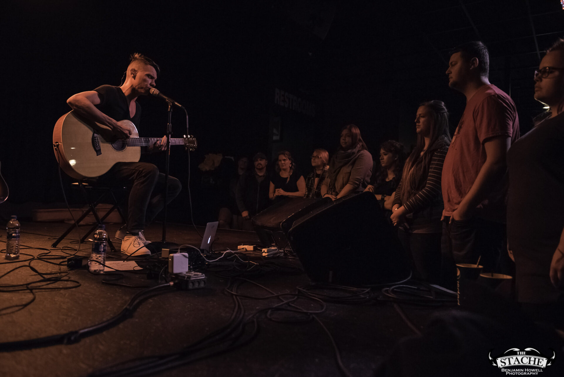 “Hi. I just landed at 7:05.” Seated, Ronnie Winter briefly recounts what amounts to a cross city race to appear on stage at The Stache just seven minutes late for his 7:30 set time. The lights in the room do not dim as Winter begins singing a song told from the perspective of a grandfather discussing the facts of life with his grandson. The crowd applauds as Winter introduces cause for the evening, the 10th anniversary of Secondhand Serenade’s debut album, Awake, before telling those in attendance this is his first solo acoustic tour in a career that now spans fourteen years. “I was little nervous, but then I figured ‘why not – this is how I write everything anyways.’”