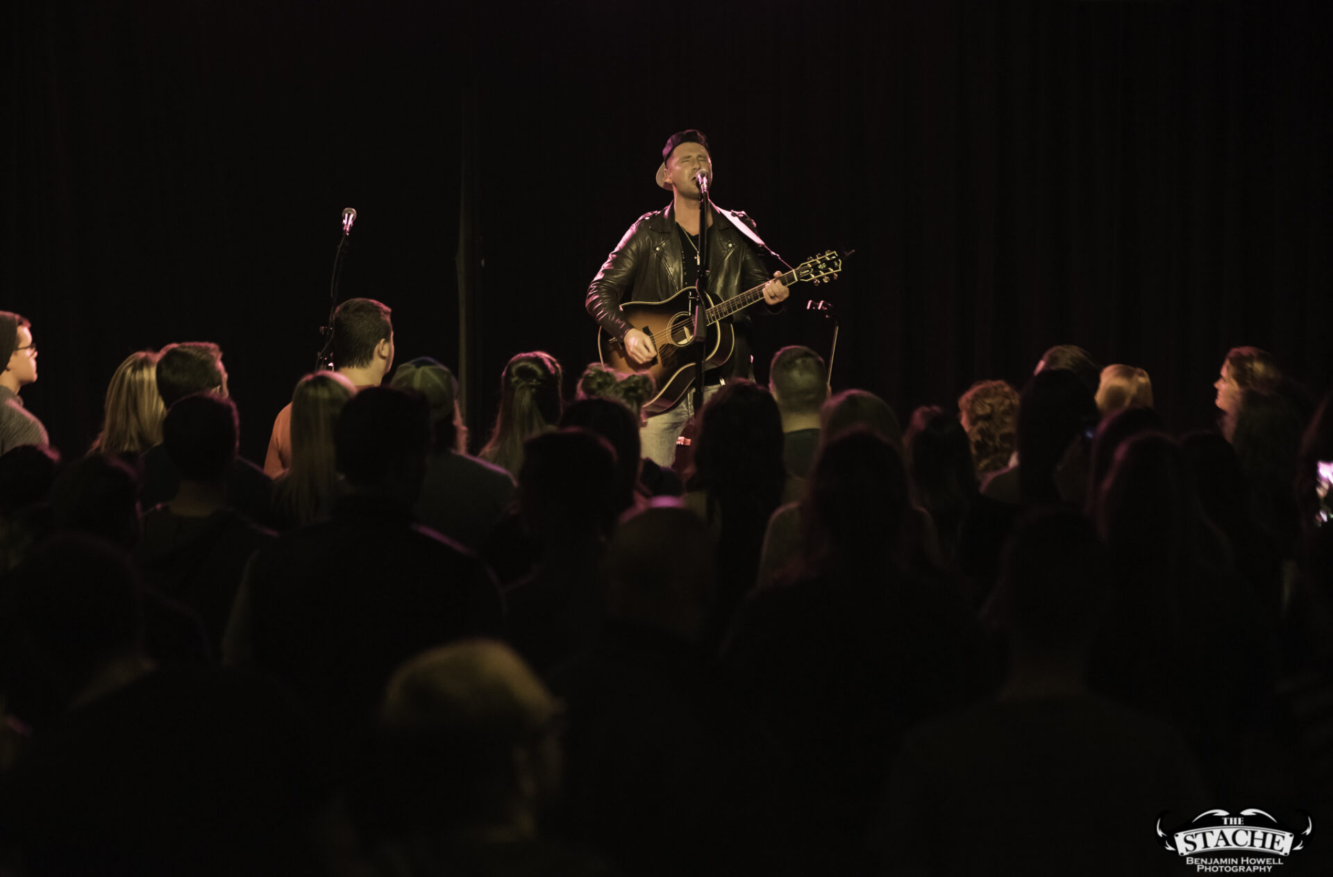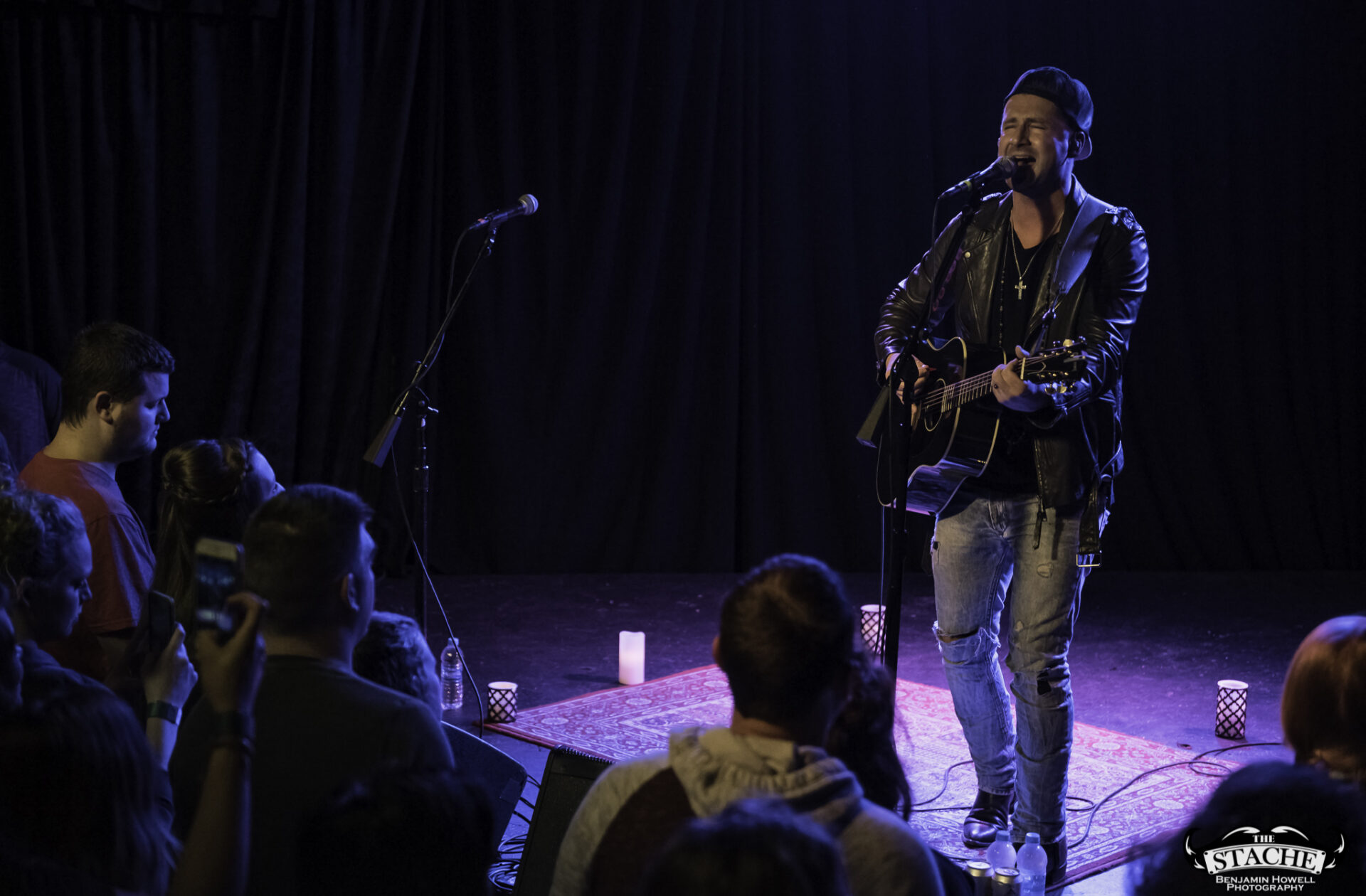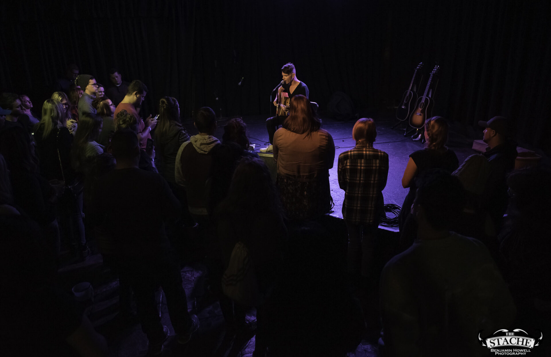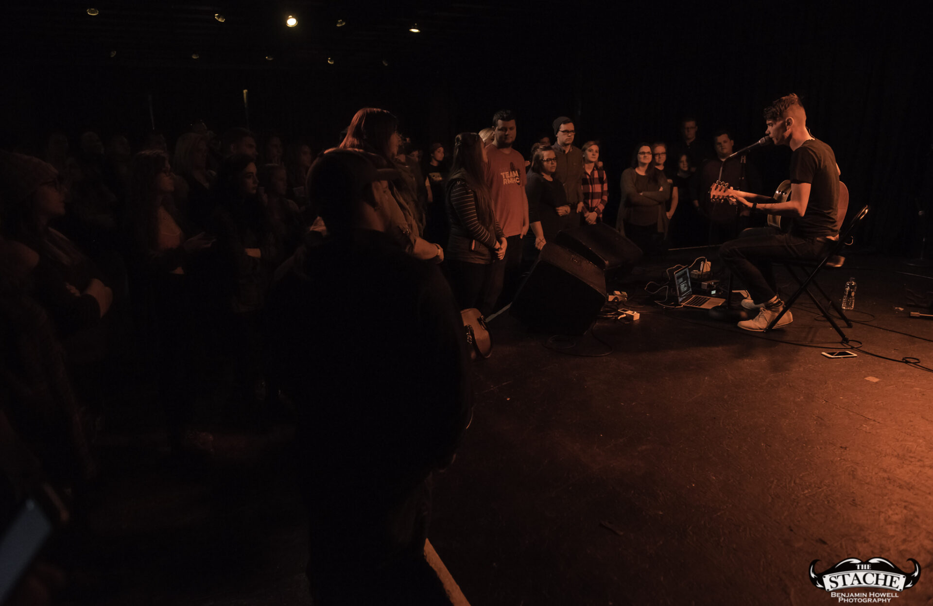 “Hi. I just landed at 7:05.” Seated, Ronnie Winter briefly recounts what amounts to a cross city race to appear on stage at The Stache just seven minutes late for his 7:30 set time. The lights in the room do not dim as Winter begins singing a song told from the perspective of a grandfather discussing the facts of life with his grandson. The crowd applauds as Winter introduces cause for the evening, the 10th anniversary of Secondhand Serenade’s debut album, Awake, before telling those in attendance this is his first solo acoustic tour in a career that now spans fourteen years. “I was little nervous, but then I figured ‘why not – this is how I write everything anyways.’”