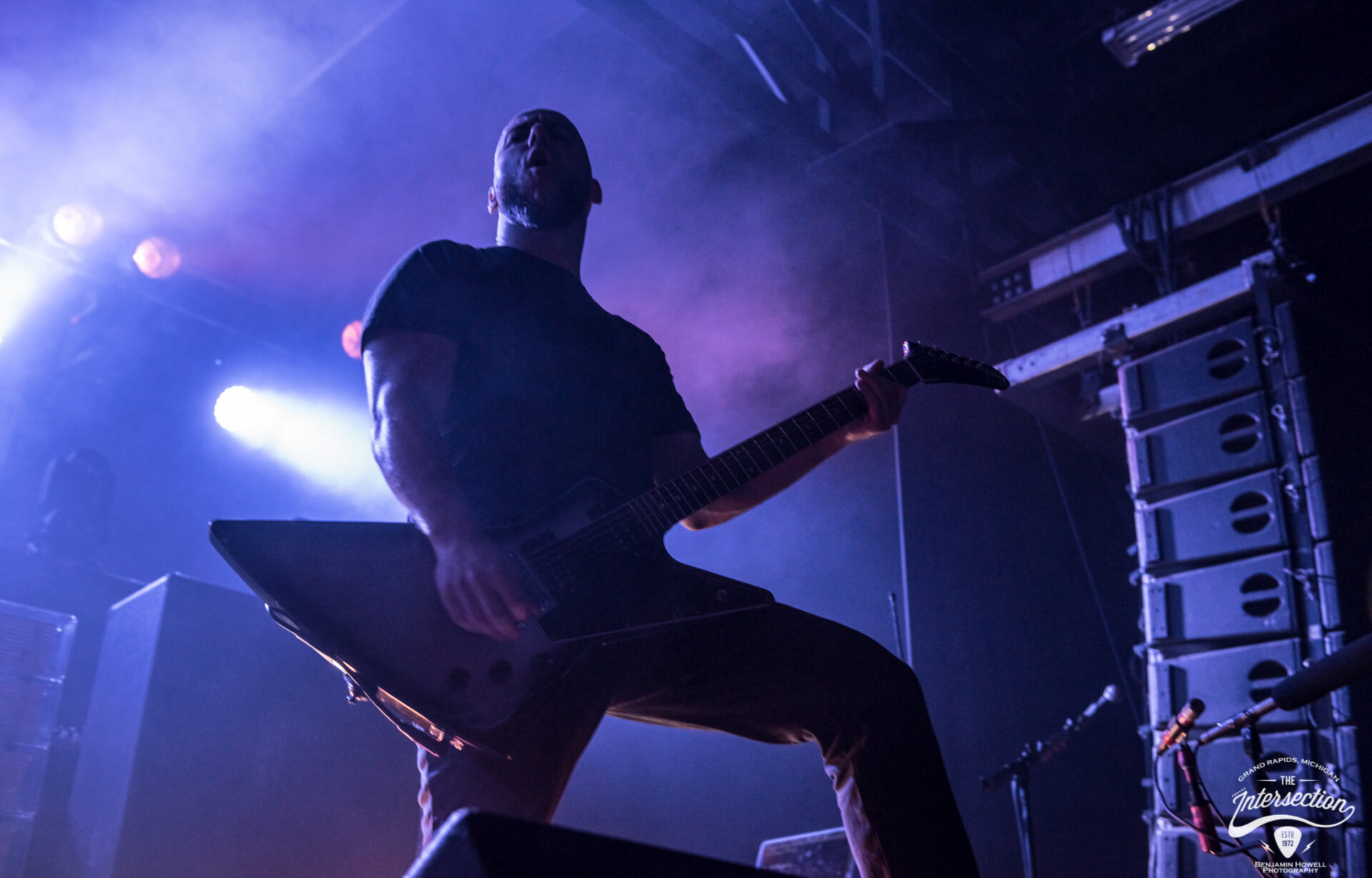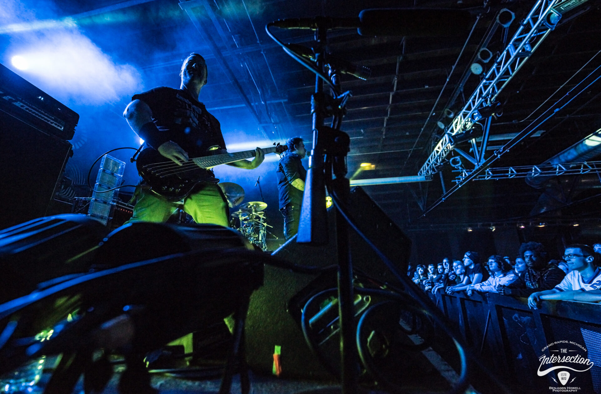 Car Bomb was the first of three bands when the Convergence Tour descended upon The Intersection during the first Friday in November. Their chaotic take on Metal was introduced without word, allowing the crunch of the guitar to speak for itself. Between their amps and monitors it seems they had mere feet to move, but they owned every in they had with a fury all their own. Where the evening’s later acts would often find their beauty through melody, Car Bomb preferred to channel a sound whose predictability would best be compared to a roll of the dice, keeping those in attendance on their toes throughout. You knew they could do more if given more space, but they didn’t need it in order to leave a lasting impression.