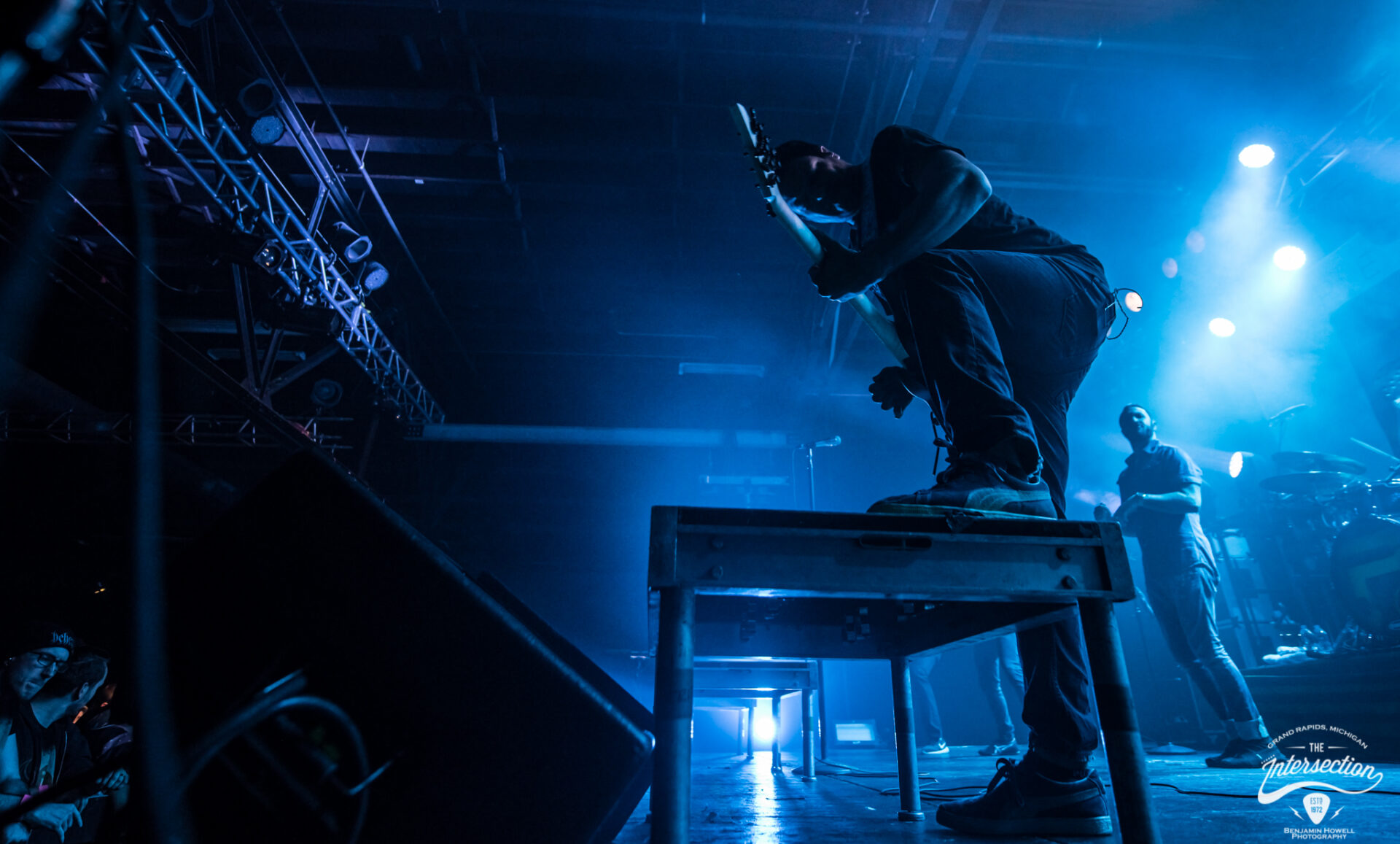 Before I could break into my (third potential mention!) the stage darkened and the sound of thunder flooded the room. Bright blue stage lights struck the audience as the distant sound of guitars slowly faded into a pulsating, drum driven effort that quickly entranced the Grand Rapids crowd. Animals As Leaders had arrived, delivering over an hour of instrumental metal that played like an extremely technical take on modern jazz. If Car Bomb found their sound in the erratic, often unpredictable corners of heavier music then Animals As Leaders found theirs in the unexplored grooves that could tether even the most elaborate metal friendly riffs together. Their art is an impeccably performed balancing act specificity and looseness focused on finding and promptly losing oneself in the flow of a sonic moment. They barely addressed the crowd as they played, yet the the room hung on every note.