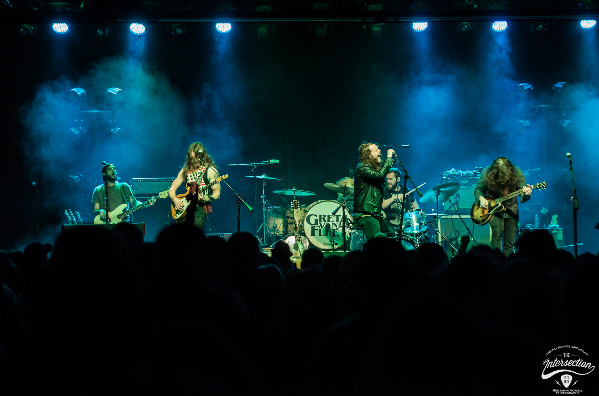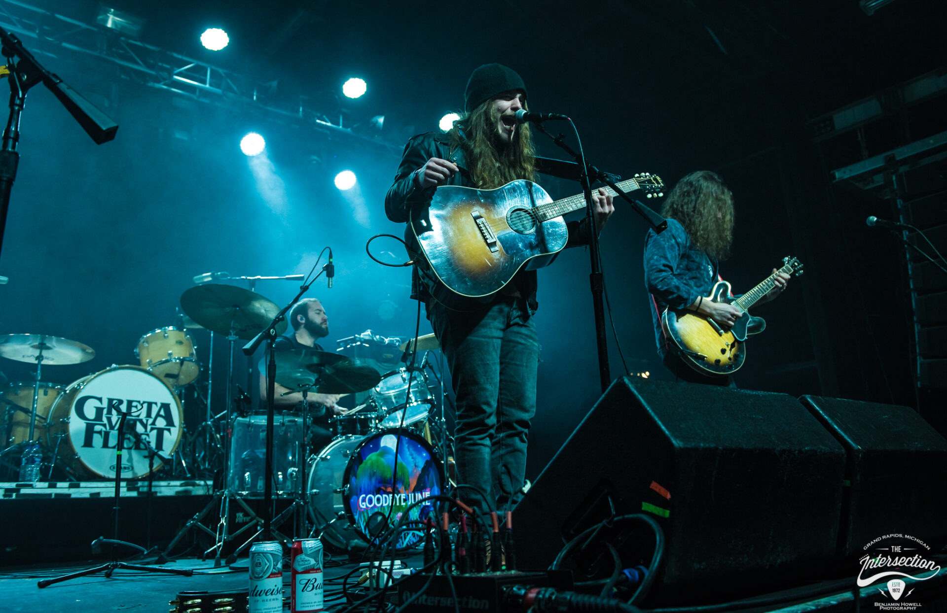 The crowd was still wrapped halfway around the block when the stage lights in the main room of The Intersection first dimmed on the second to last night of 2017. A smattering of applause bounced off the venue walls as a sample from the fake film Angels With Filthy Souls, which you probably know as the old movie Kevin uses to fool people in Home Alone, played through the speakers. People in the crowd, most still bundled in winter coats and scarves, quoted the scene aloud as it played and the members of Goodbye June slowly filled the dark stage. The lights rose and the half-filled room warmly welcomed the band, but all too soon their response transitioned to the traditional silent judgment all opening bands know. Goodbye June took in their audience, which was growing with each passing second as more and more people entered the building, and proceeded to deliver their own brand of rock and roll. Greta Van Fleet may be the reason people came, but they weren’t the only ones who were going to deliver a great show.