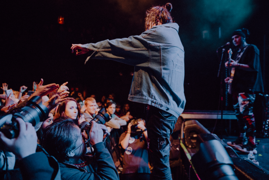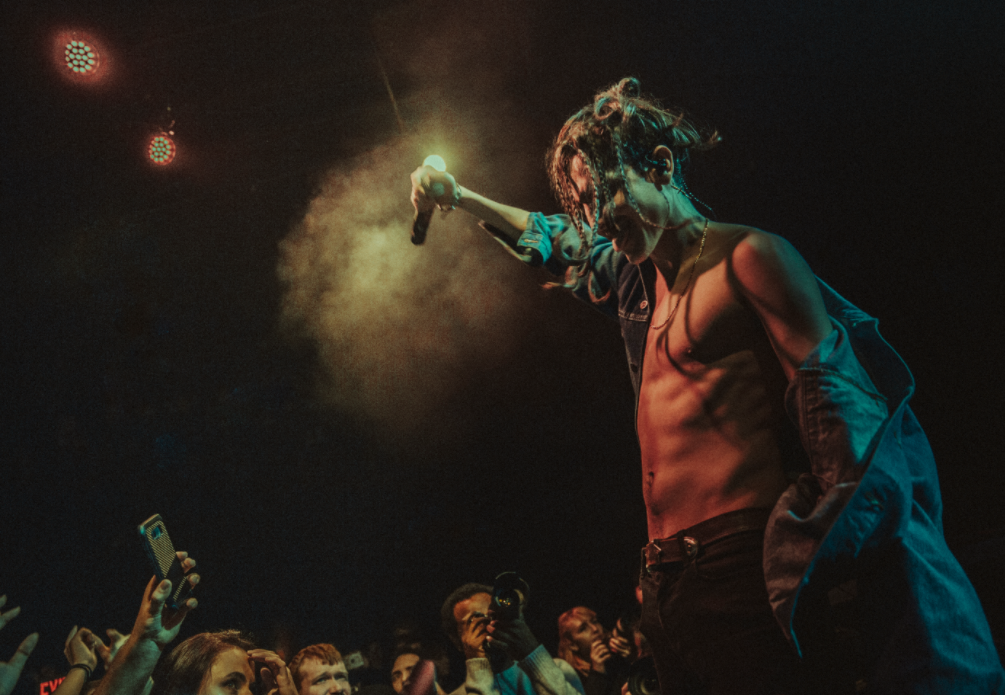 Right before soundcheck, I got to hang out with Chase Atlantic and get to take a few photos of them. I knew of the band but had never worked with the boys personally and I can fully say now that they are some of the funniest and most humble guys I’ve met. Not to mention they’re naturals in front of the camera. We went downstairs where I was greeted with Mitchel and Christian laying on the table, striking a pose for the camera. It was truly a sight to see. Though my time with the boys was short, I was growing even more excited to see their performance later that night — and let me tell you, they did not disappoint. Their intro track began to play and it was clear that the audience was amped and ready for some Chase Atlantic. Not before long, Mitchel, Clinton and Christian were running across the stage as the opening to their hit single “Swim” began. I’ll be honest, I wasn’t fully sure of what to expect during their performance but for a smaller band, they commanded the stage and attention of each and every single person in that venue for those 30 minutes and really created a night to remember. Whether it was climbing up the sides of the stage during “Drugs & Money” or diving into the crowd face first during “Friends,” Chase Atlantic give off such a contagious, joyful energy and the love and passion they have for what they do, shines through on stage.