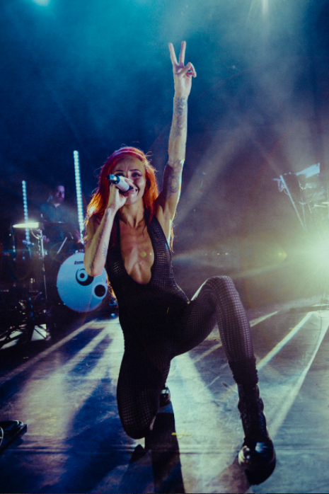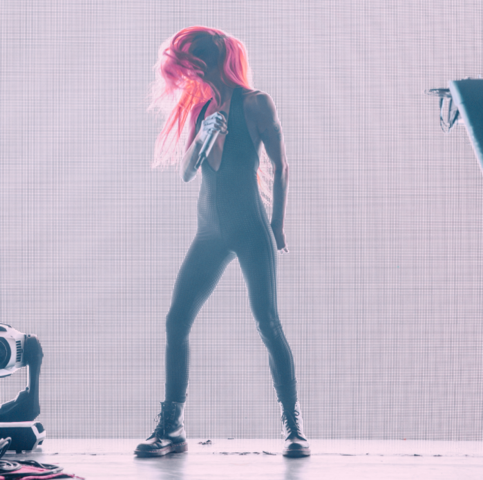 All opening performances had concluded and the venue was preparing for the main event: Lights. Now, I’m no stranger to Lights. I’ve been seeing this insanely talented woman every single time she came to my area for the last ten years — heck, she was my very first concert I went to on my own! So needless to say, I was hardcore fangirling in the pit while photographing her. Her set began with her new song “New Fears,” in which she stood at the rear of the stage in front of a blazingly bright LED screen. The silhouette of her body paired with her electric red hair caused screams to erupt throughout the venue. For such a small in stature woman, Lights is commanding of her audience and a very talented performer. For an artist that has been around as long as Lights has, it can sometimes be hard to condense your entire discography into one concert and make sure that fans both new and old are satisfied, but no task is too big for Lights. Her lengthy 18 song setlist included songs both new and old like “Second Go,” “Siberia,” “Savage” and even an acoustic rendition of some fan favorites like “Banner” and “February Air.”