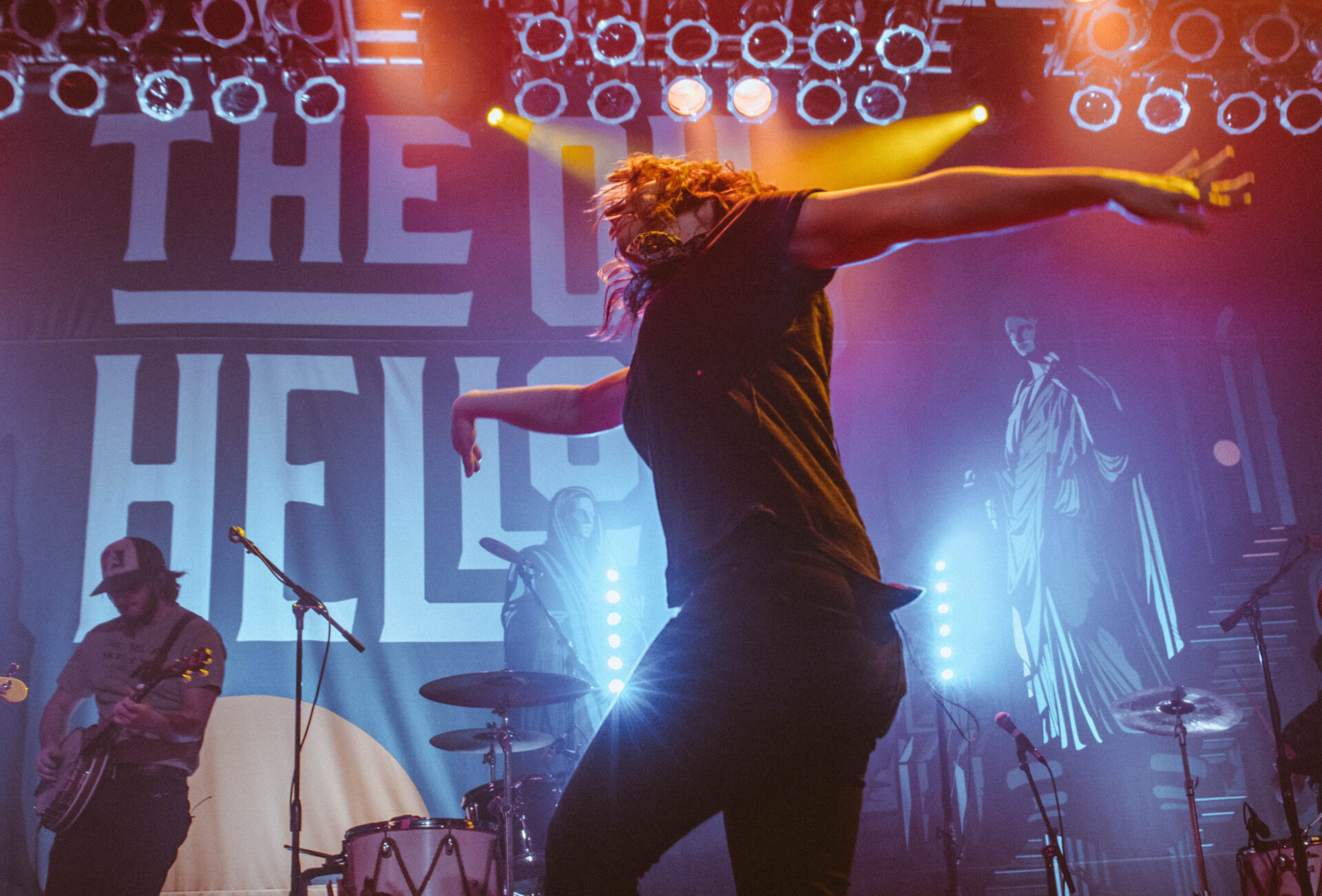 Forget everything you know about folk music, because The Oh Hellos throw those cliches out the window. The brother-sister led group (Tyler and Maggie Heath) released their sixth album, Eurus, earlier this year to rave reviews from fans and critics alike. Their sound is a blend of early Arcade Fire and The Decemberists (think big drums, violin solos, and screaming choruses), but they also bring a lot of humor to their shows. At the beginning of their set, they asked fans to dance along with them like they were being attacked by birds. “Just throw your arms up in the air and swing away, but be careful…y’know don’t really hit your neighbors or any birds.”