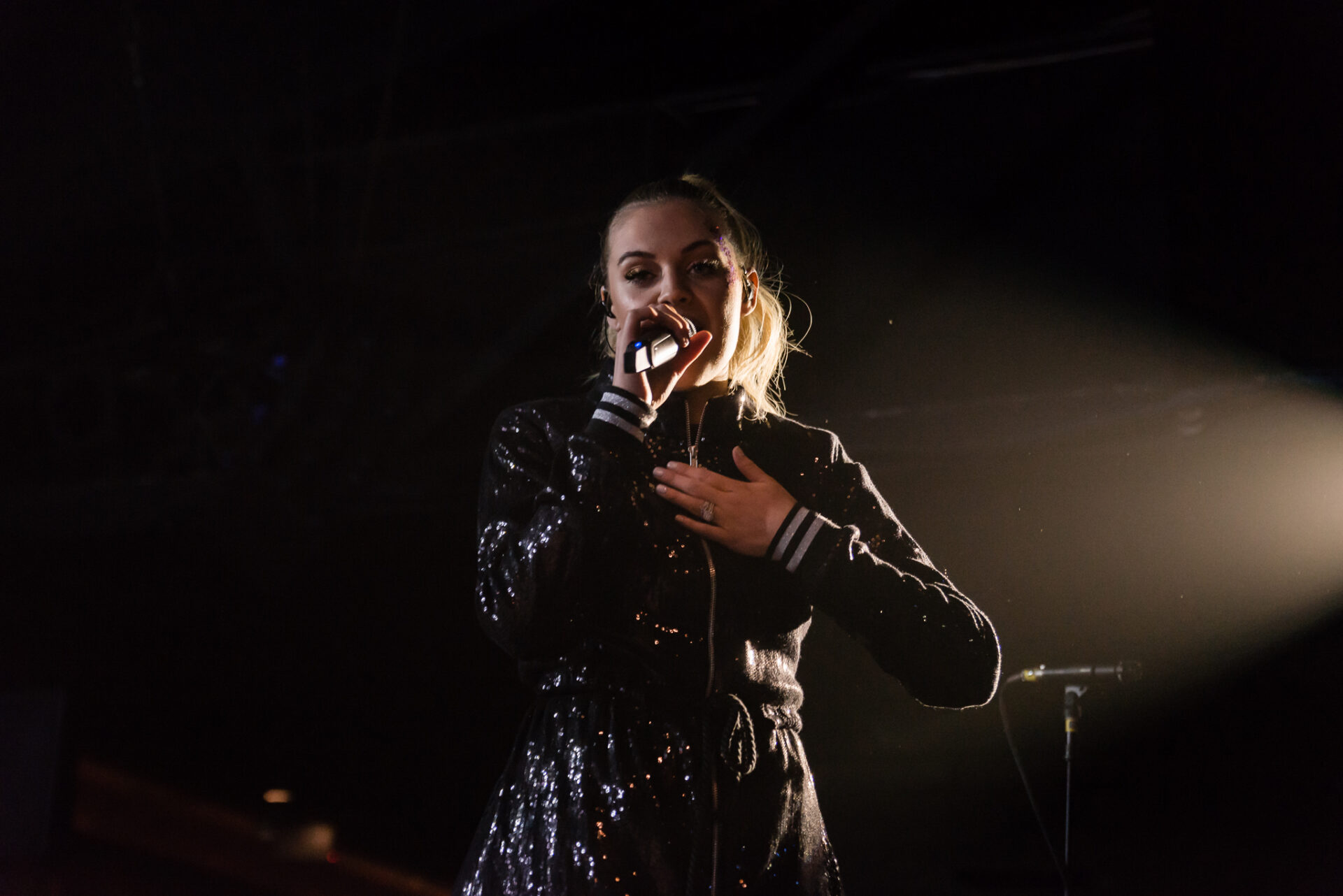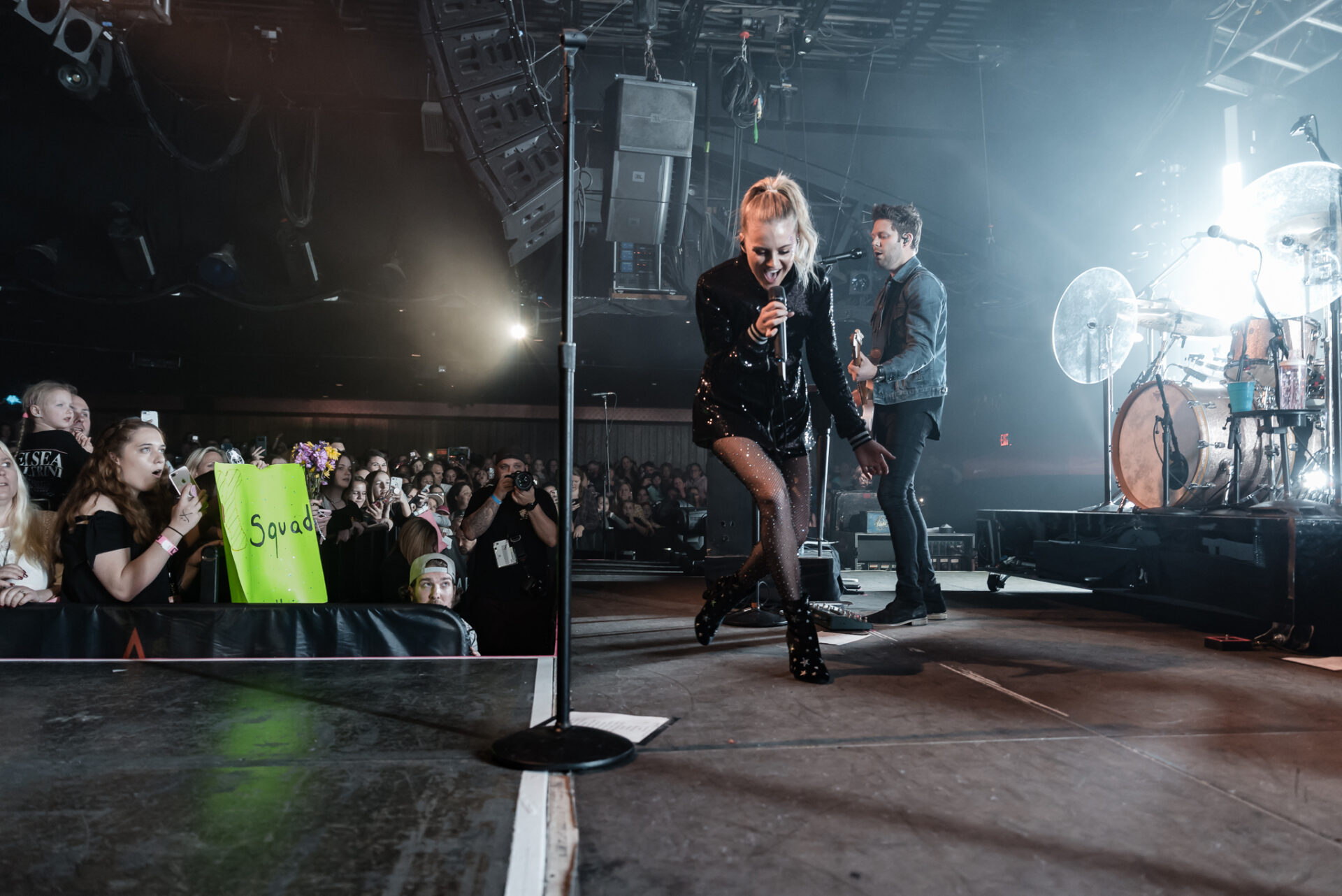 The stage is rather close to the crowd – but nevertheless, Ballerini hopped off the stage more than once to sing directly to those standing on the sides, and made frequent use of the catwalk so she could get even closer to the fans up front, several of whom had brought homemade signs which she’d read and smile it, even wishing one fan a happy birthday.