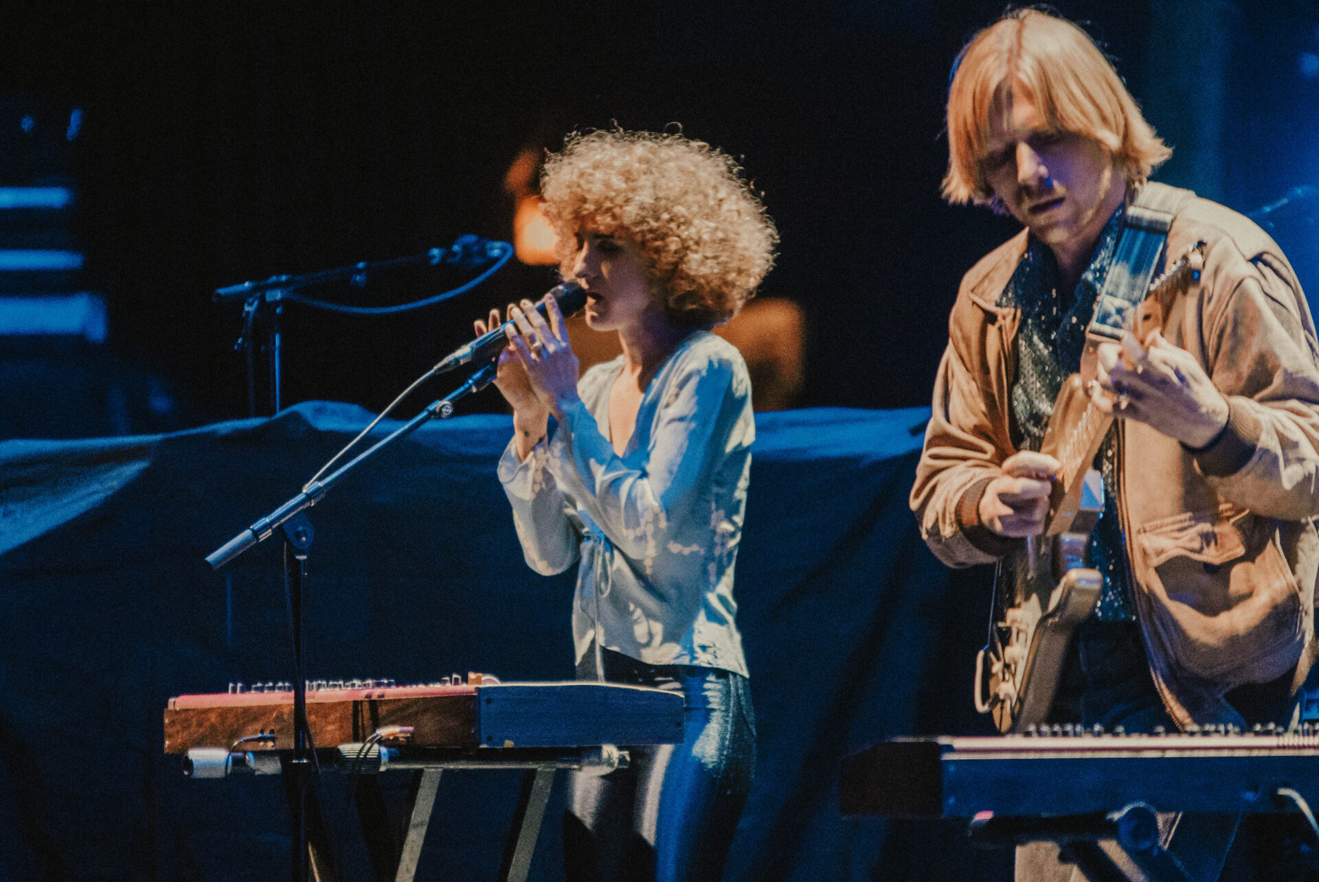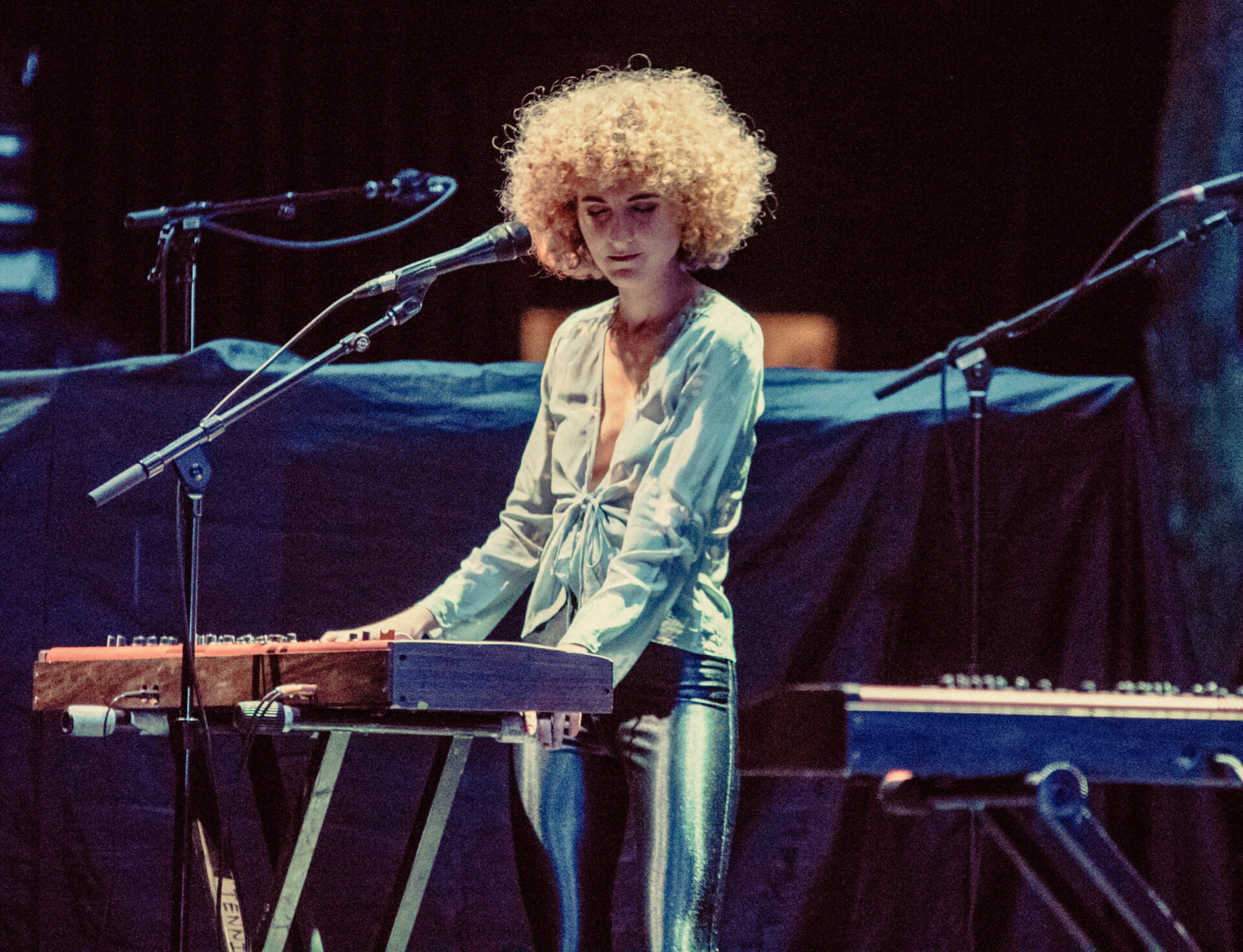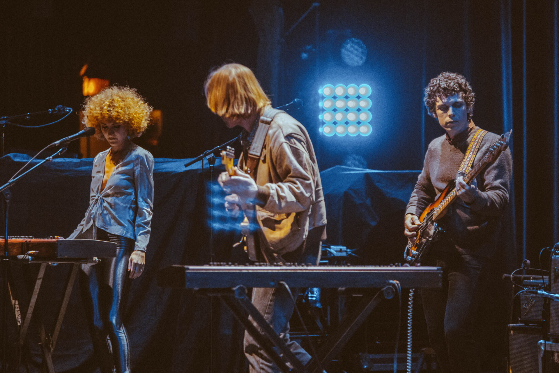 Tennis opened the evening as concert-goers started filing into their plush red seats. The husband-and-wife duo started making music in 2010 and released their newest album, Yours Conditionally, early last year. Singer/keyboardist Alaina Moore looked radiant in tight leather leggings, donning her classic Dirty Dancing hairstyle, and her voice sounded like a soft dream. She dedicated a song to her anxiety while her husband, guitarist Patrick Riley, played a 1970s melody guaranteed to make the audience swoon. Tennis sound like they’re either just going to sleep or just waking up, and it was a perfect way to start the evening for their Chicago fans.