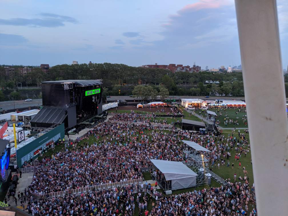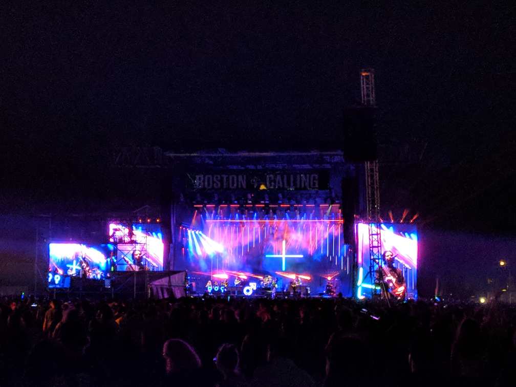 Once on the Ferris Wheel, The National is up, and for a band that has a strong catalog of slower songs, they put on an incredibly energetic, captivating performance. They’re one of those bands that I’ve followed lazily, but after seeing their performance, I’m going to go ahead and call myself a fan. I don’t know how I’ve missed these guys at past Boston Callings. Fellow artist Maggie Rogers joins them on stage for a beautiful rendition of their song “I Need My Girl”, and before long they’re wrapping up their set and hyping the crowd for tonight’s headliners, The Killers.