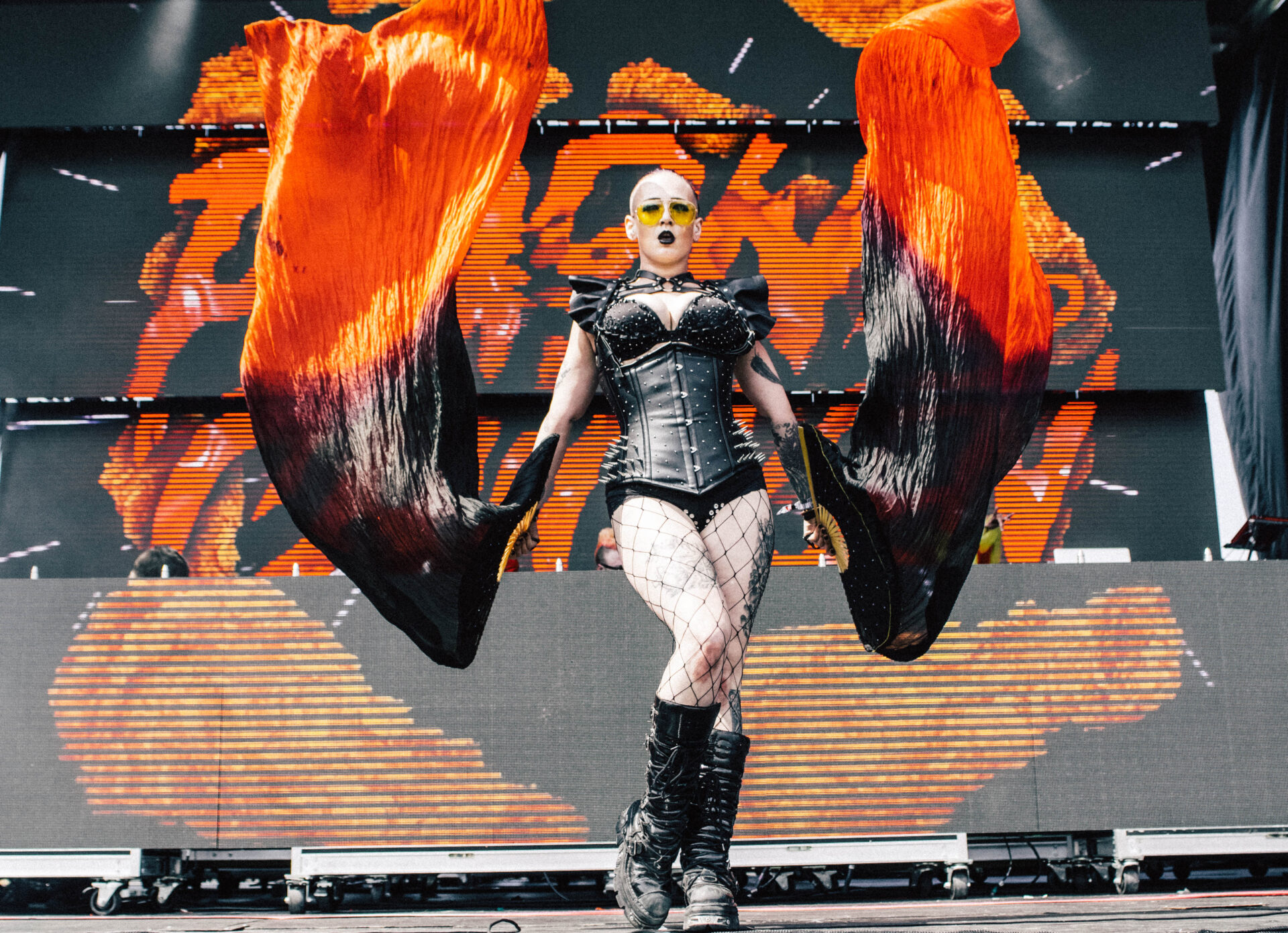 On Saturday, one of Chicago’s biggest EDM staples, Porn and Chicken, put on the most exciting and interactive show of the weekend. The group includes Ammunition, a performance artist who wields an angle-grinder against a belt of steel when the beat drops. Combine that with the group’s sick guitar riffs, drumming skills, and a dude who dresses like a chicken and runs into the crowd, and it’s clear to see why Porn and Chicken is a must-see at every Spring Awakening.