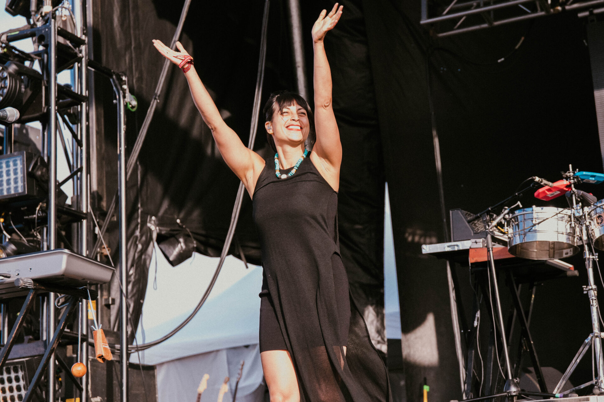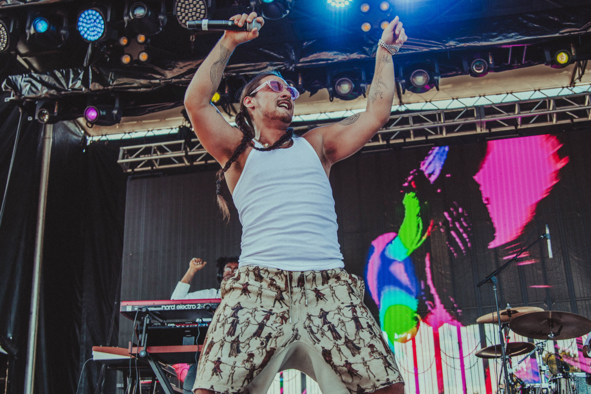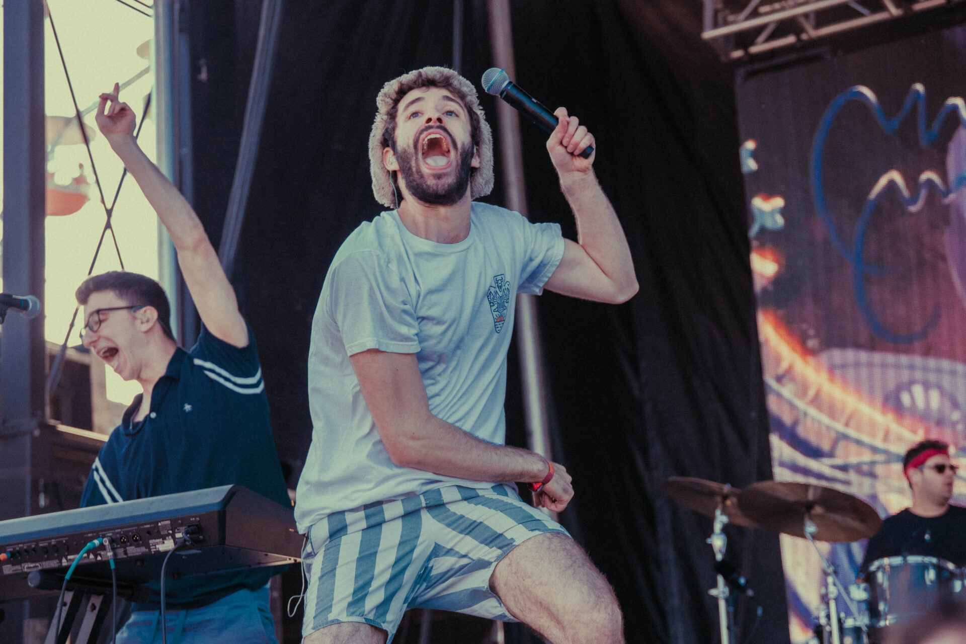 Later in the day, South African expat Jean-Philip Grober (aka St. Lucia) played a spellbinding set that embodied the vibes of the beach and summer heat. St. Lucia has been making bouncy, tropical music for nearly a decade, with their most recent album, Matter, edited and programmed by Bleachers’ own Jack Antonoff. Alongside his wife, keyboardist Patti Beranek, St. Lucia and his band played new and old hits before Grober himself jumped offstage to sing alonside his fans. Mamby is the perfect festival for getting up close and personal with the crowd, and St. Lucia certainly took advantage of that.