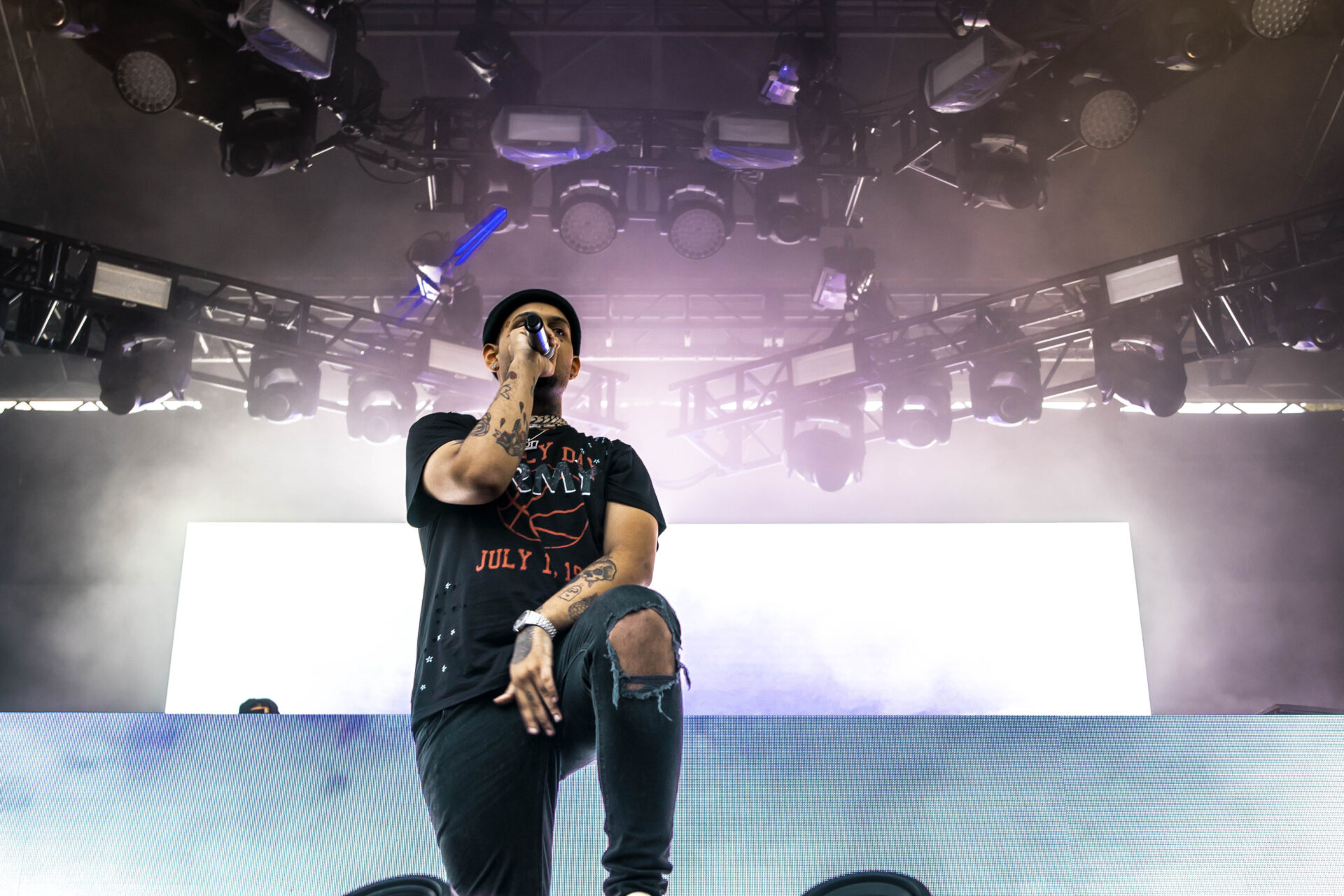 By 8pm, R&B crooner DVSN played at the North Stage as pop star Miguel’s team prepared his elaborate set on the main stage. Just a few minutes later, a huge gust of wind blew through the park and the rain came down in sheets. Fellow photographers and artists huddled under the beer tent in the press lounge and waited for the storm to pass, but as the storm grew stronger and the radar became more and more red, it was clear this wasn’t going away. The park was evacuated, and the festival was shut down early for the night. Both Miguel and Axwell ^ Ingrosso’s sets were canceled.
