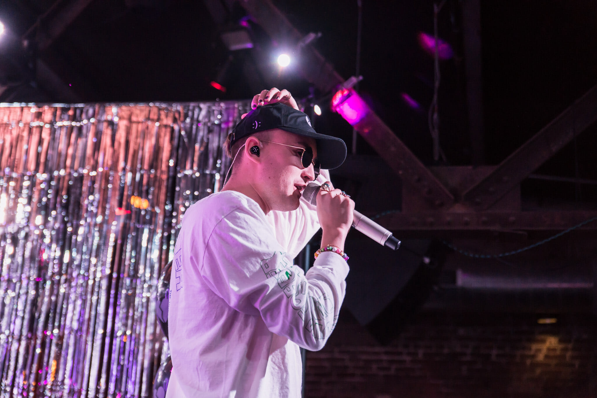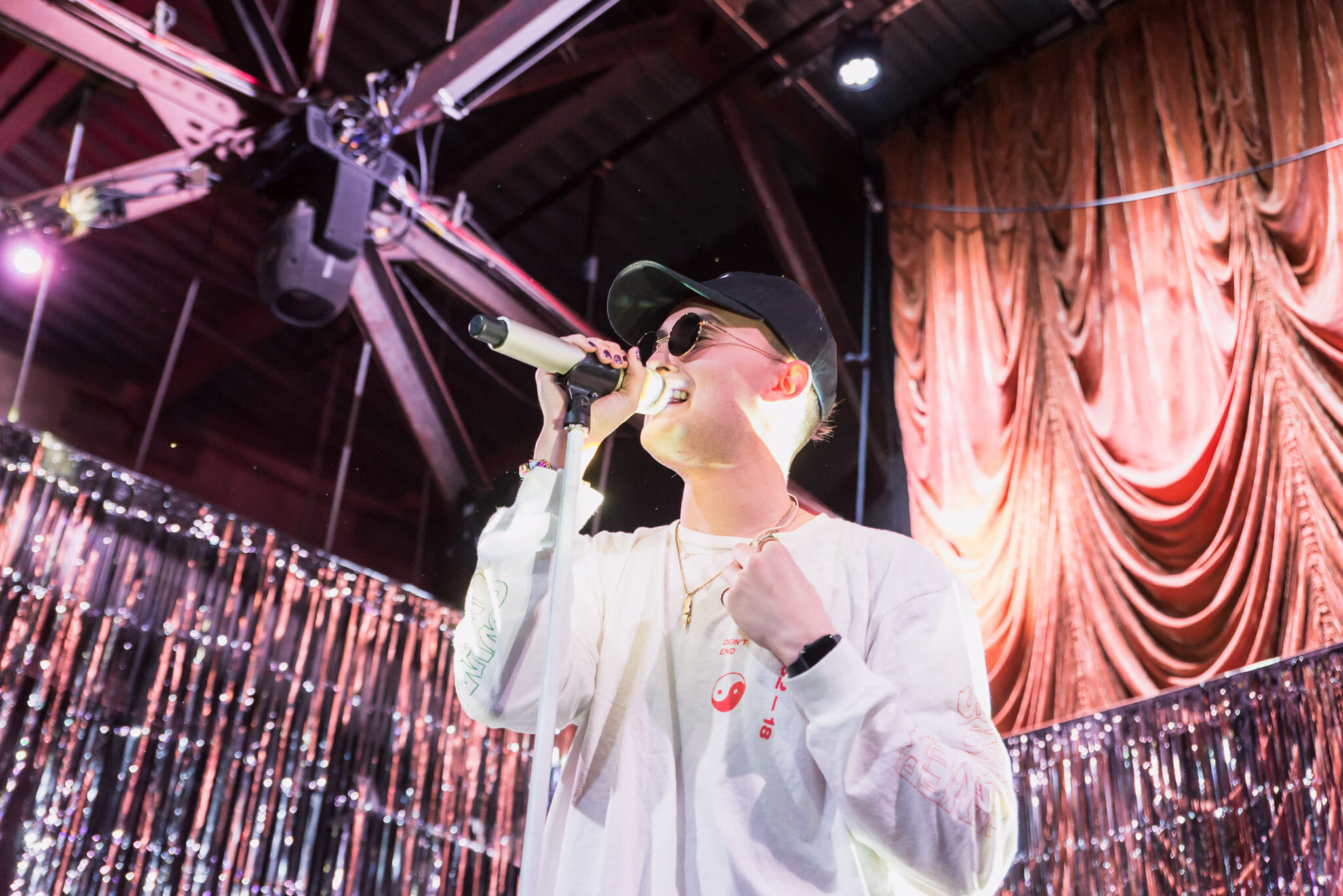 I observe that he seems to have a very healthy way of handling his emotions, and he nods in agreement. “I do my best, and we try to encourage people to do the same,” he says. Following “dear insecurity,” for which he brought out an acoustic guitar, gnash lead the crowd in a “mini-meditation,” counting down from three and instructing people to breathe in and out to let go of the bad stuff and “replace it with the positive energy in this room.” On stage, “I talk about how important it is to drink water and think and have space to think and be proud of yourself and not let small or big things get to you and just know that everything will pass and that it’ll be okay and tomorrow’s just a dream away and all the things that I encourage people to believe in.”