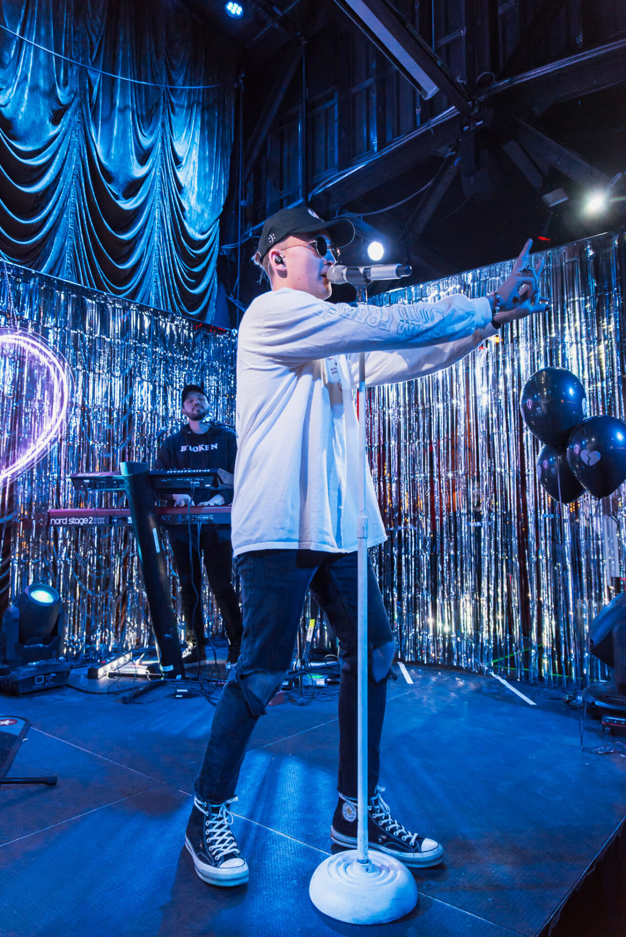 The conversation continues after the show, where he hosts a nightly broken hearts club meeting. Fifty to a hundred people will meet up after the emotional experience of the show to regroup and come together. It’s a free meeting where they can talk about how they feel and bring up questions. The broken hearts club meeting is a chance to meditate and come together, and it’s also been effective in helping people make new friends: “I’ve seen people talking to their new friends online or making a group DM or exchanging Snapchat names or whatever it is. That’s been beautiful because that was the point of the broken hearts club tour, to get people to come together to talk about how we feel, because if we feel together, then we’ll feel better.”