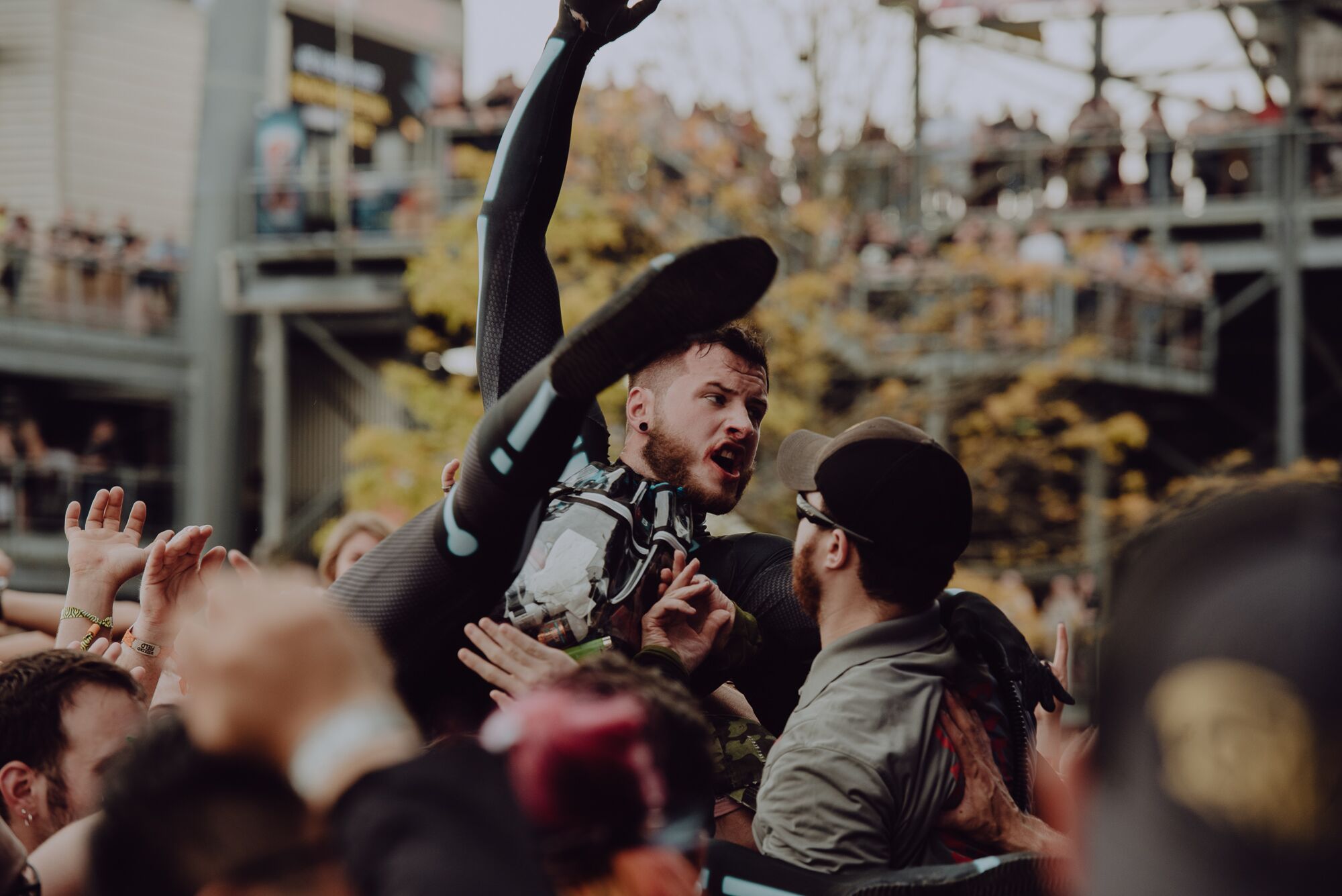 Day 1 started off with Hands Like Houses, which was a real treat after having just seen them weeks prior opening up for Beartooth on their Disease tour. Let’s be real here, sometimes it’s hard to be excited and energetic at 11:30am in the muggy cloudy weather, but Hands Like Houses literally said “forget that” and the post hardcore Aussies had the crowd jumping the whole time, setting the tone for the rest of the day. There was no disappointment with any band performance here, with bands such as Badflower, Halestorm, Messugah, and Parkway Drive all destroying their sets there was no way to not be excited about what was happening and it was only the first day.
