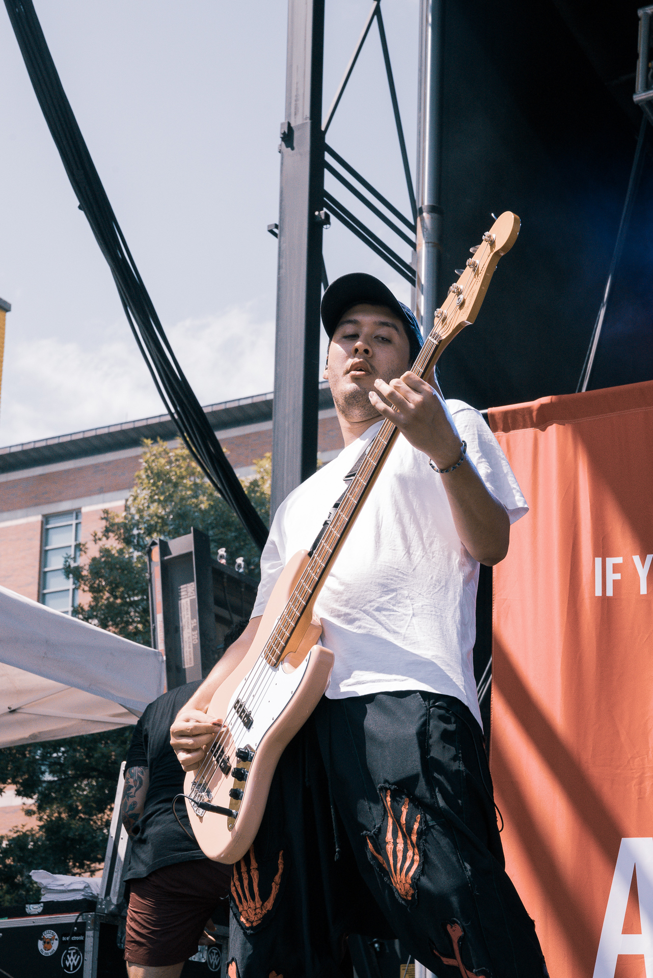 As for the music, the lineup was diverse yet incredibly cohesive. Just Friends kicked off the day with a high-energy, positive set that set the mood for the rest of the day. The band has a clear ska influence, unlike the other bands on the bill. However, the crowd loved them and cheered loudly when they realized that the frontman of Just Friends, Sam Kless, is the bassist of Mom Jeans. That crossover was certainly unique and pulled the bands together.