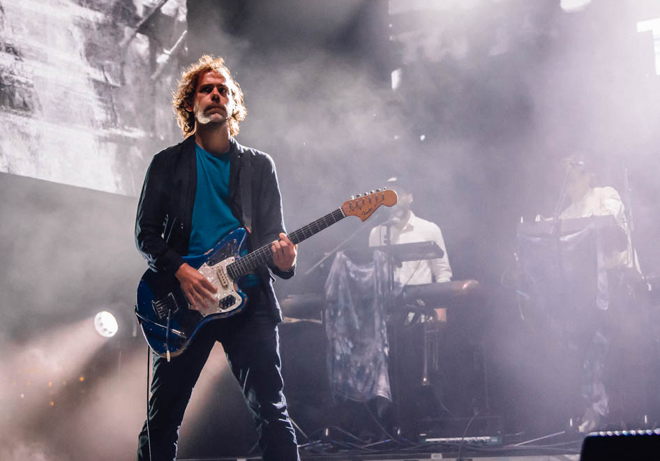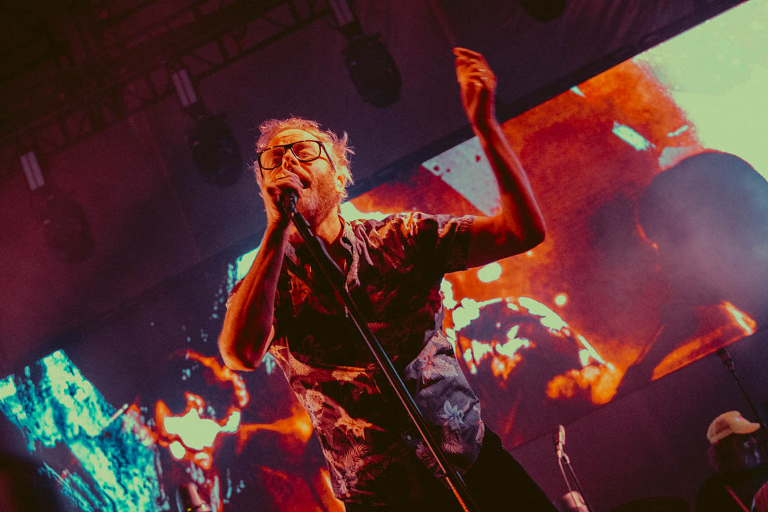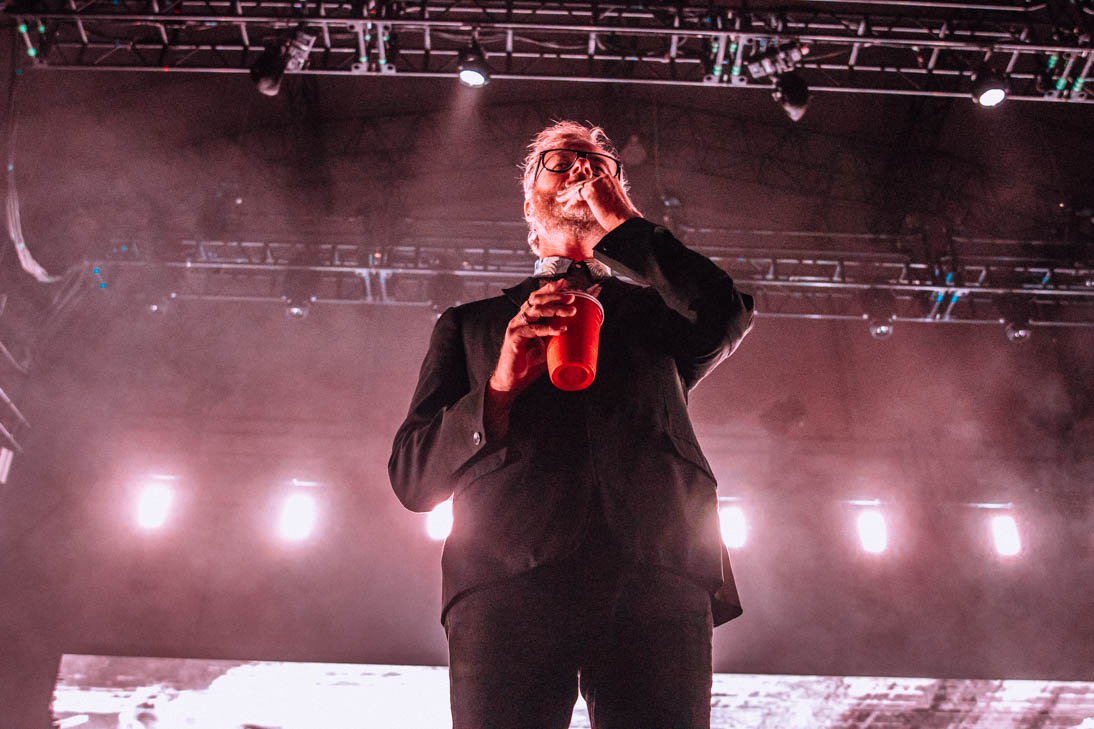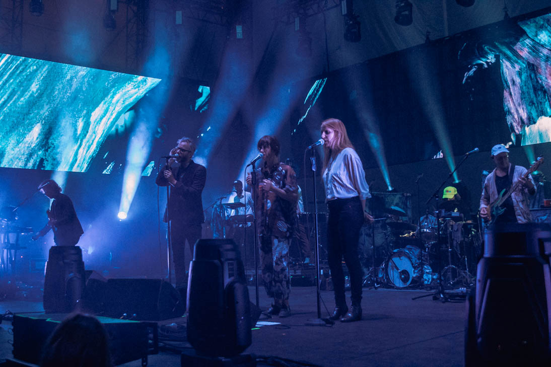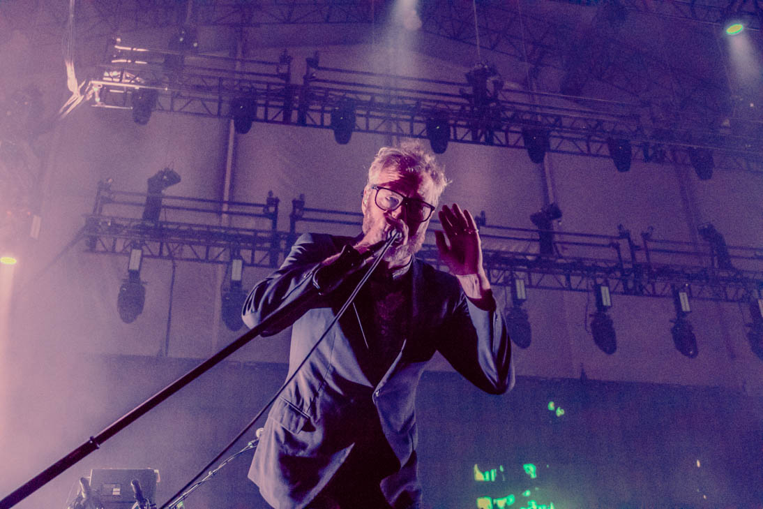 Before opening band Alvvays could start things off, all of Huntington Bank Pavilion had to be evacuated due to storms. Hundreds of people angrily marched out of the venue and stood under whatever shelter they could find, only to queue up again less than an hour later. Luckily, the venue extended curfew and both Alvvays and The National were able to play full sets (nearly 2 hours in The National’s case). With the release of their eighth studio album, I Am Easy to Find, the band have really hit their stride, both lyrically and musically. They opened their Chicago set with the title track from their new album, “You Had Your Soul With You”. Fans immediately began singing along and reaching for vocalist Matt Berninger’s hand as he floated from one side of the stage to the other.