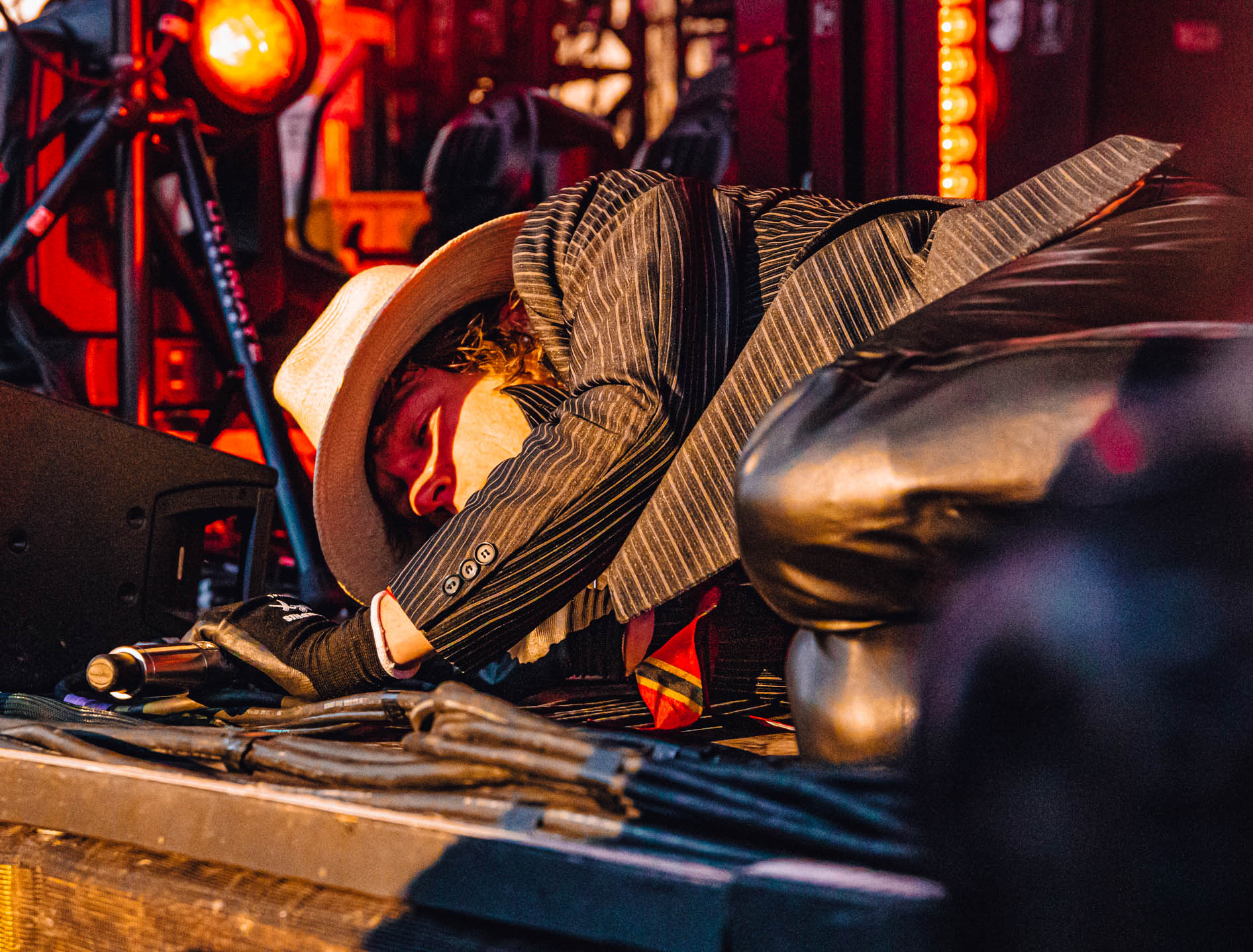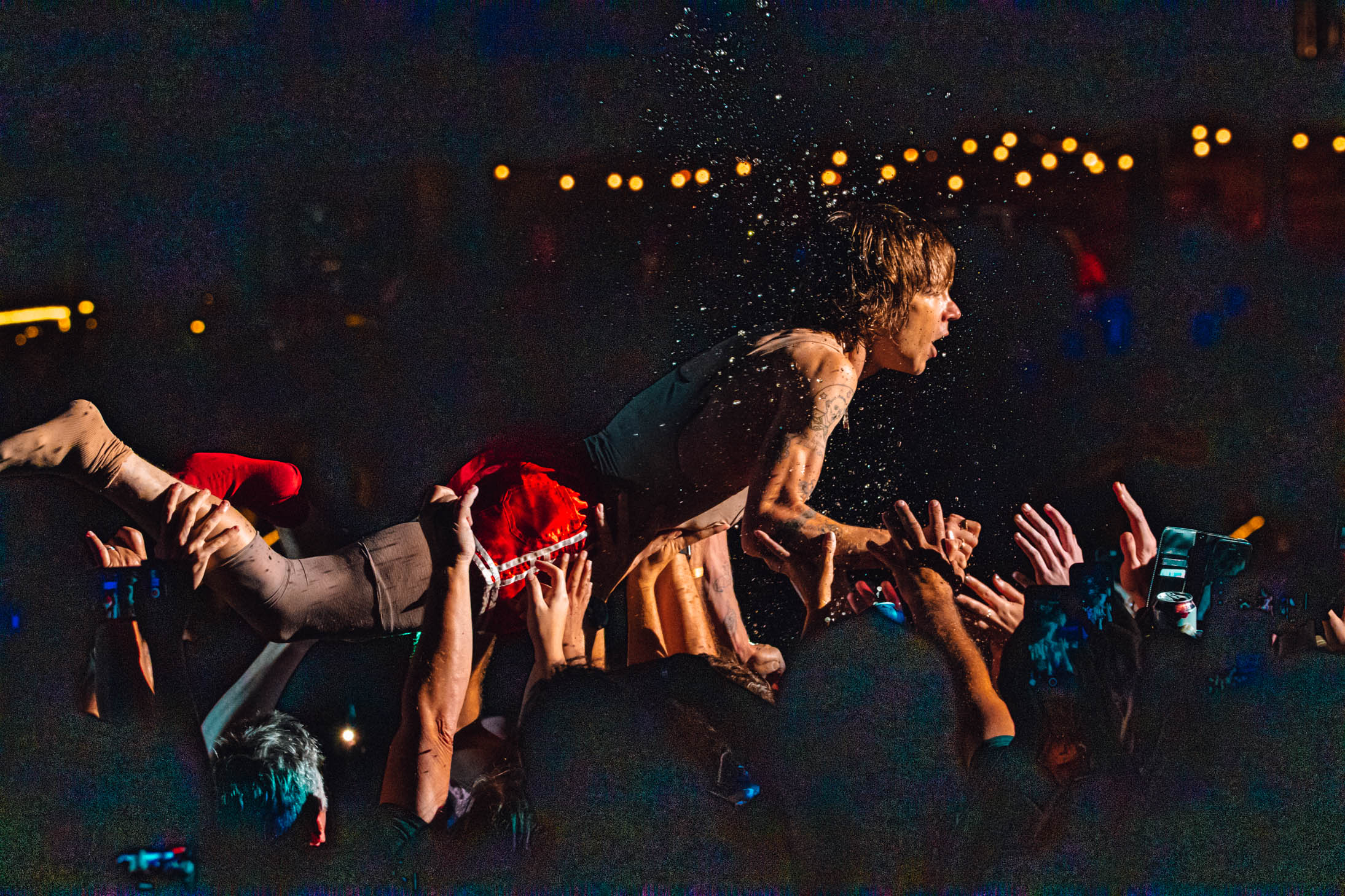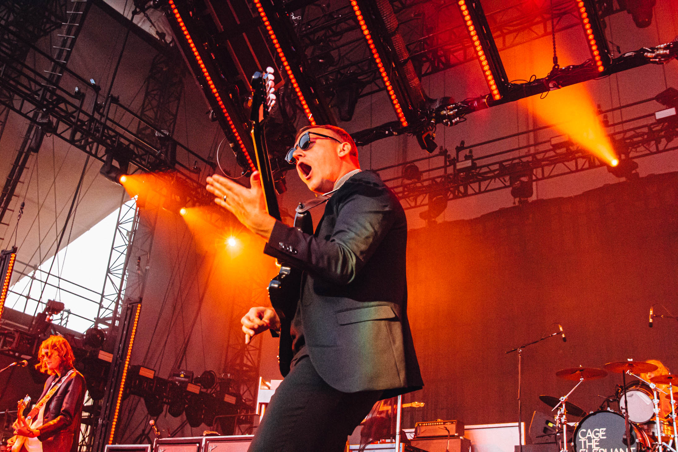 Schultz did something I’ve never seen before: he crowdsurfed at a seated show. He slowly and carefully made his way to back of the pavilion as the band closed with “Teeth”, floating on top of the crowd the entire time. When he made it to the soundboard, he climbed the spotlight rigging, all while wearing a wrestling singlet he’d stripped down to earlier. At one point, he pretended to fall but was just showing off his acrobatic skills (this was at least 40 feet in the air). Not only was Cage the Elephant’s set musically incredible, Schultz ensured that those who didn’t know his band would remember him forever.