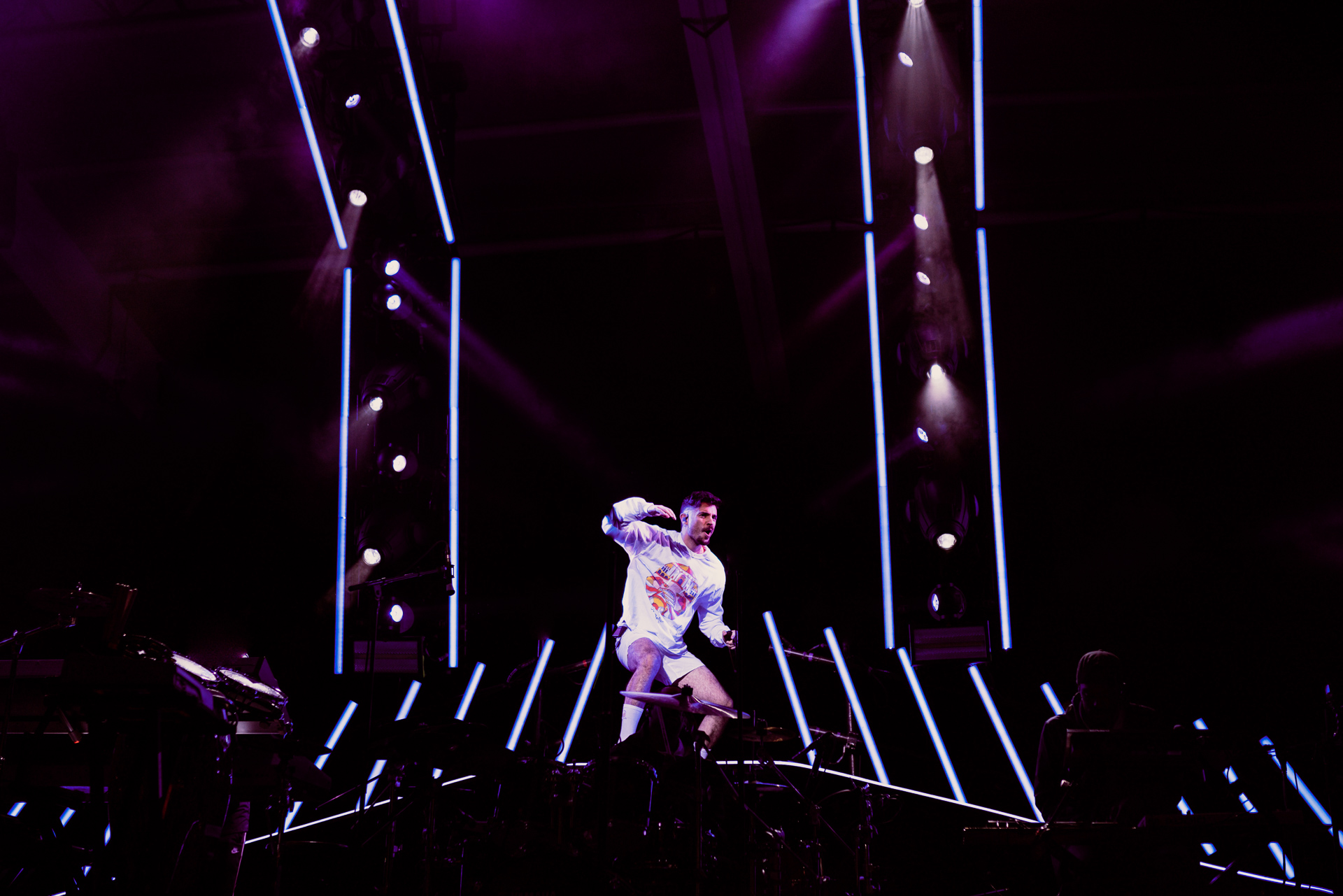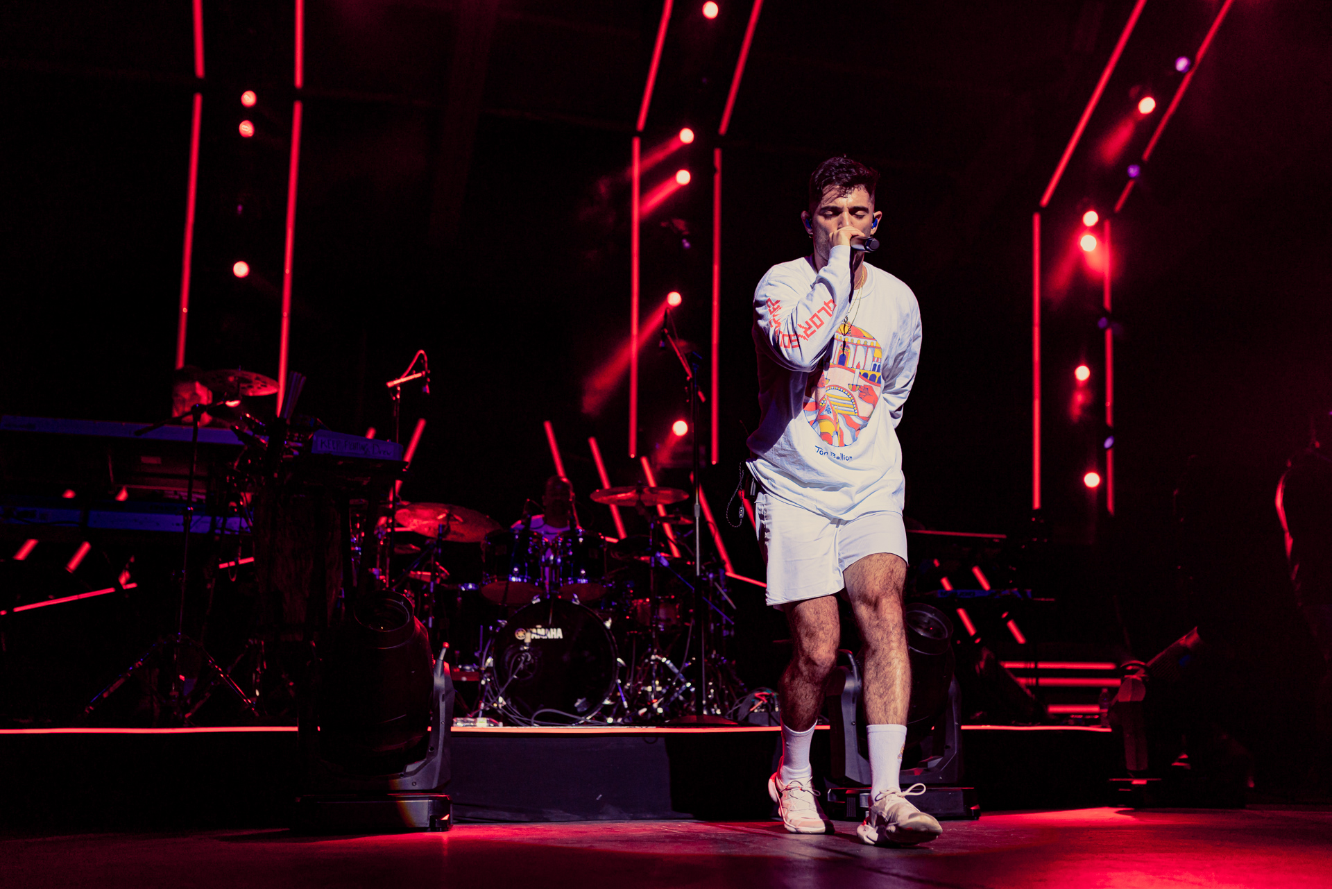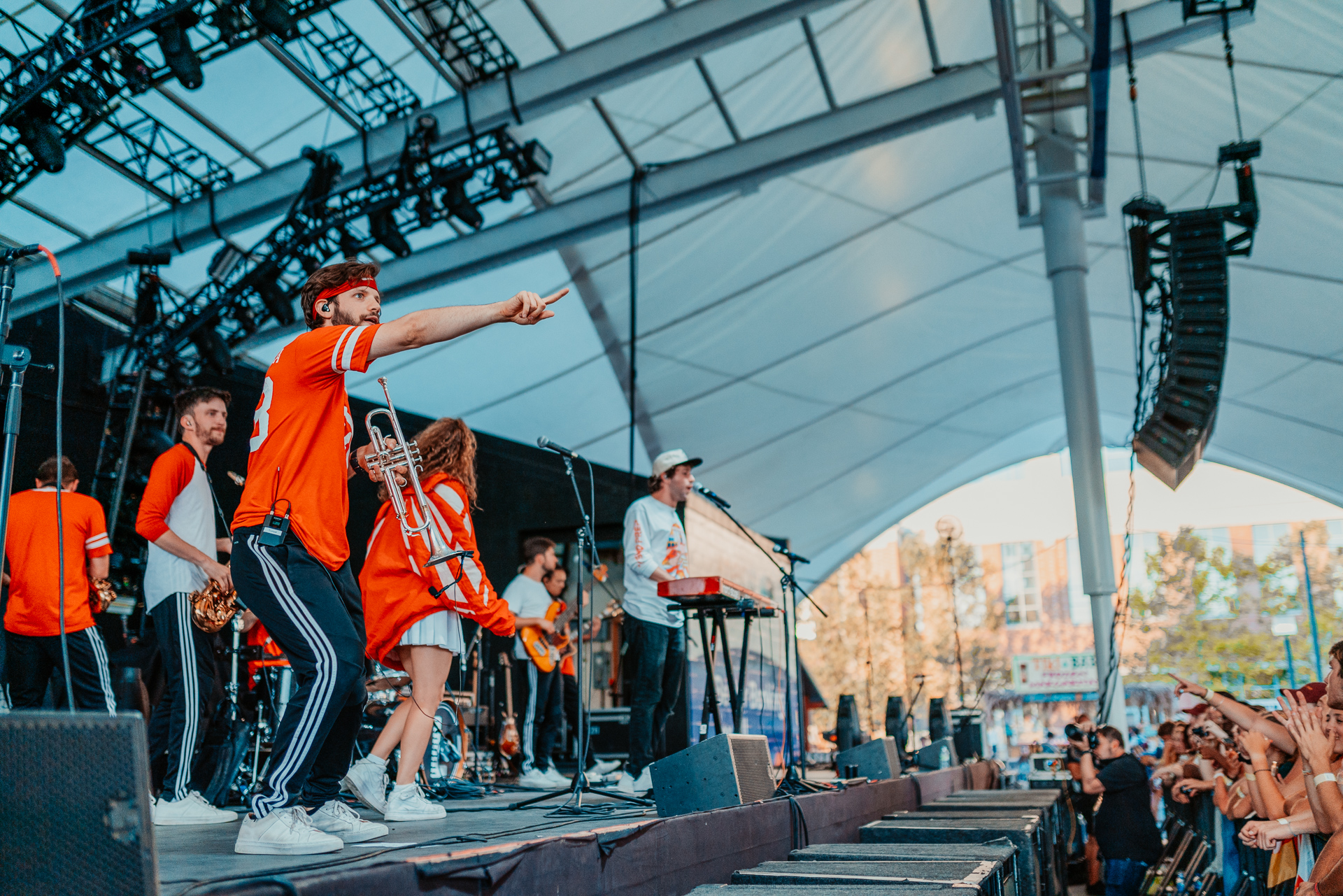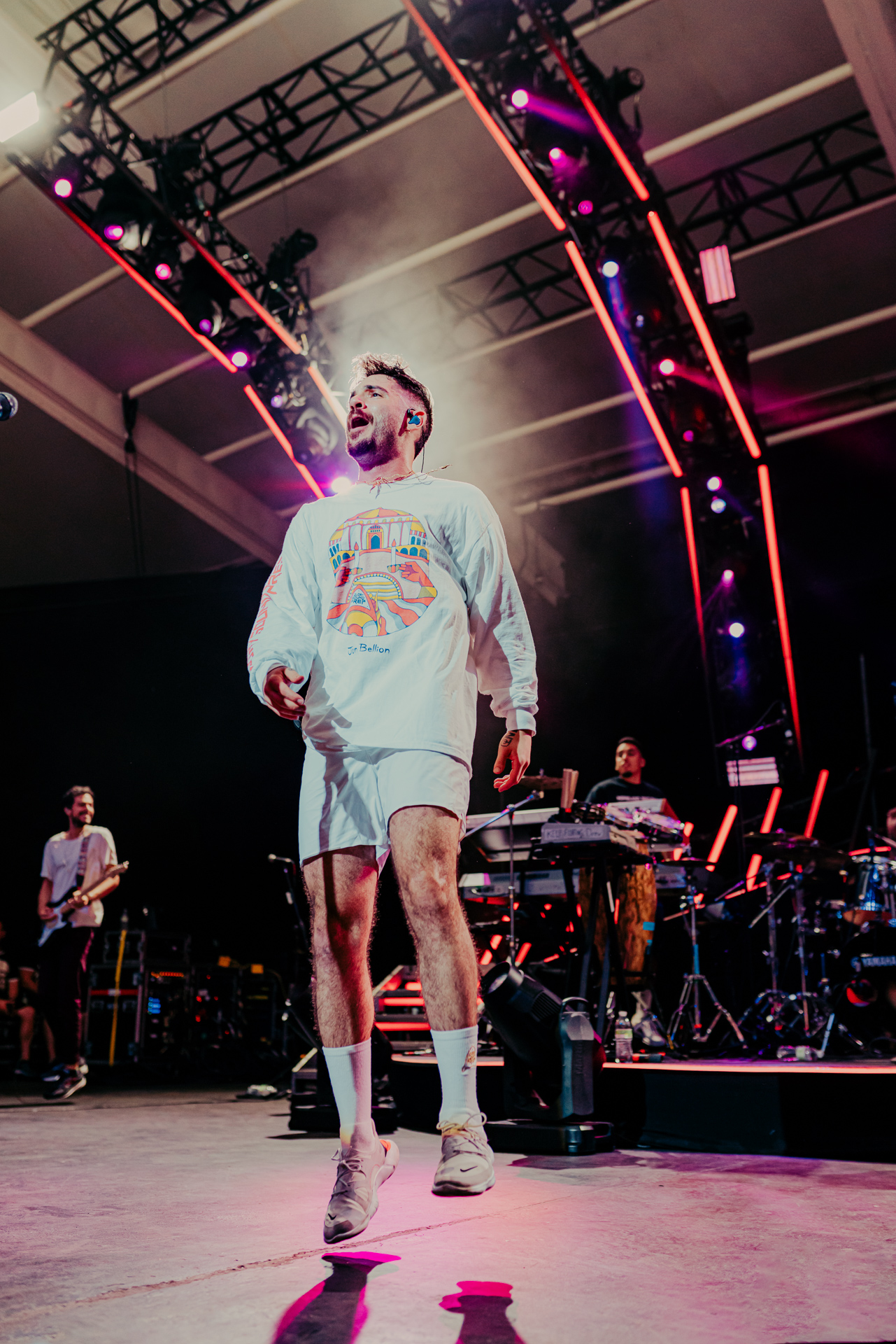 During his song “The Internet,” all eight members of Lawrence joined Bellion on stage in a dynamic performance, culminating with an epic solo-battle. Bellion calls it his “wheel of solos,” and whoever he points to on stage must battle against each other for a quick improvisation. The battles were fun and showed off just how talented all of the artists are. Bellion concluded the solos, and his performance, with a simple statement: “Actual live music. This is real shit.”