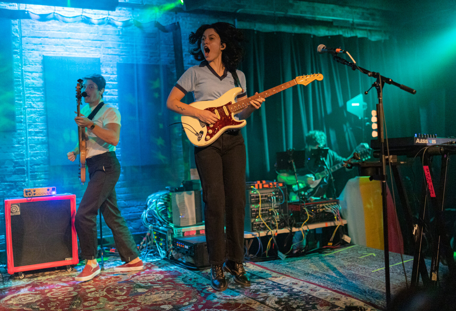 As Katie Gavin, Josette Maskin, and Naomi McPherson came onstage, the applause in the room was so loud you’d swear you were in a stadium. The trio had enormous energy from the first note they played to their departure from the room. MUNA started the night with “Number One Fan”, a delightful tongue-in-cheek take on fame and relationships. Fans screamed the lyrics to every single song MUNA played, including “Winterbreak”, a song that Katie Gavin said was partially written in an Evanston parking garage.