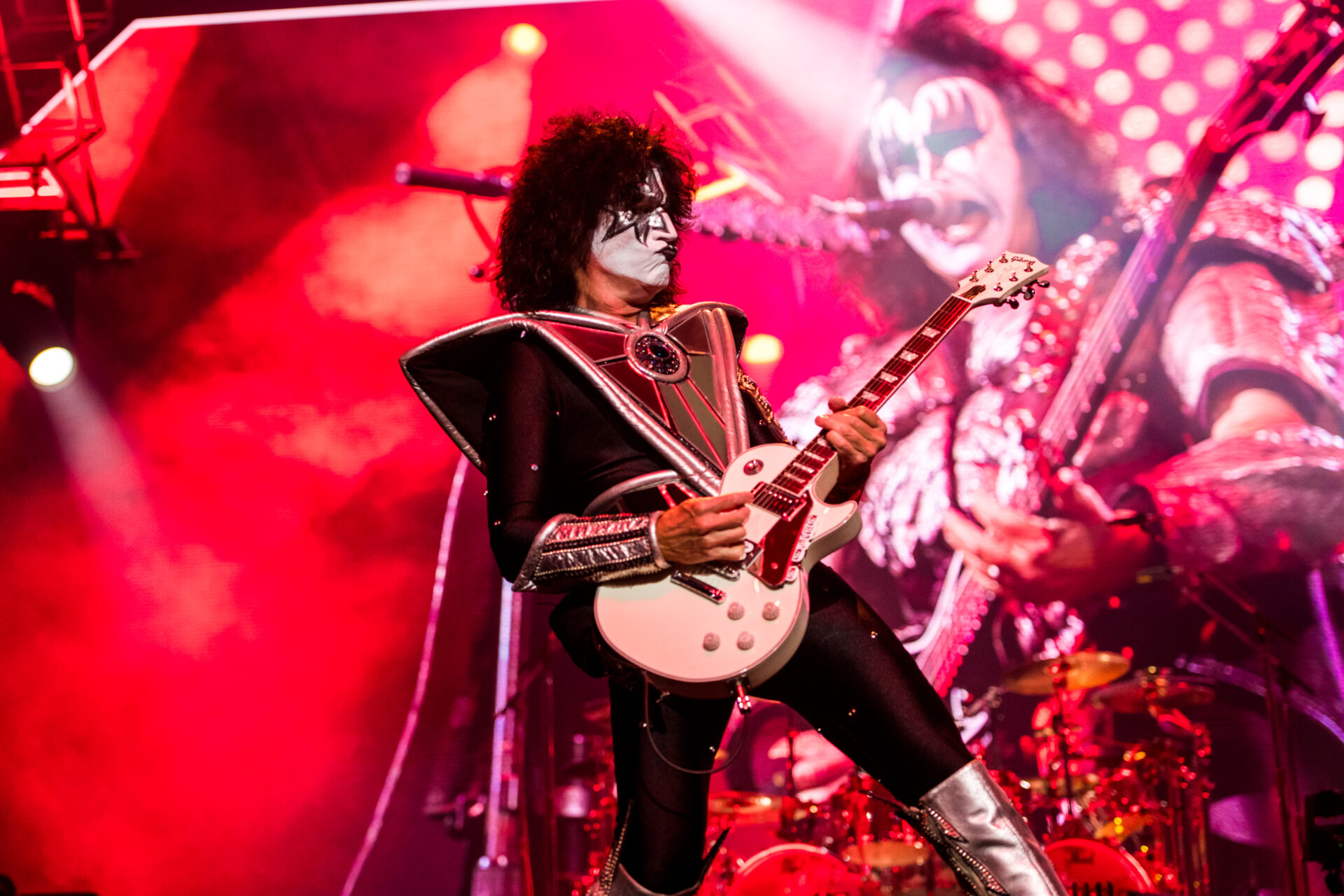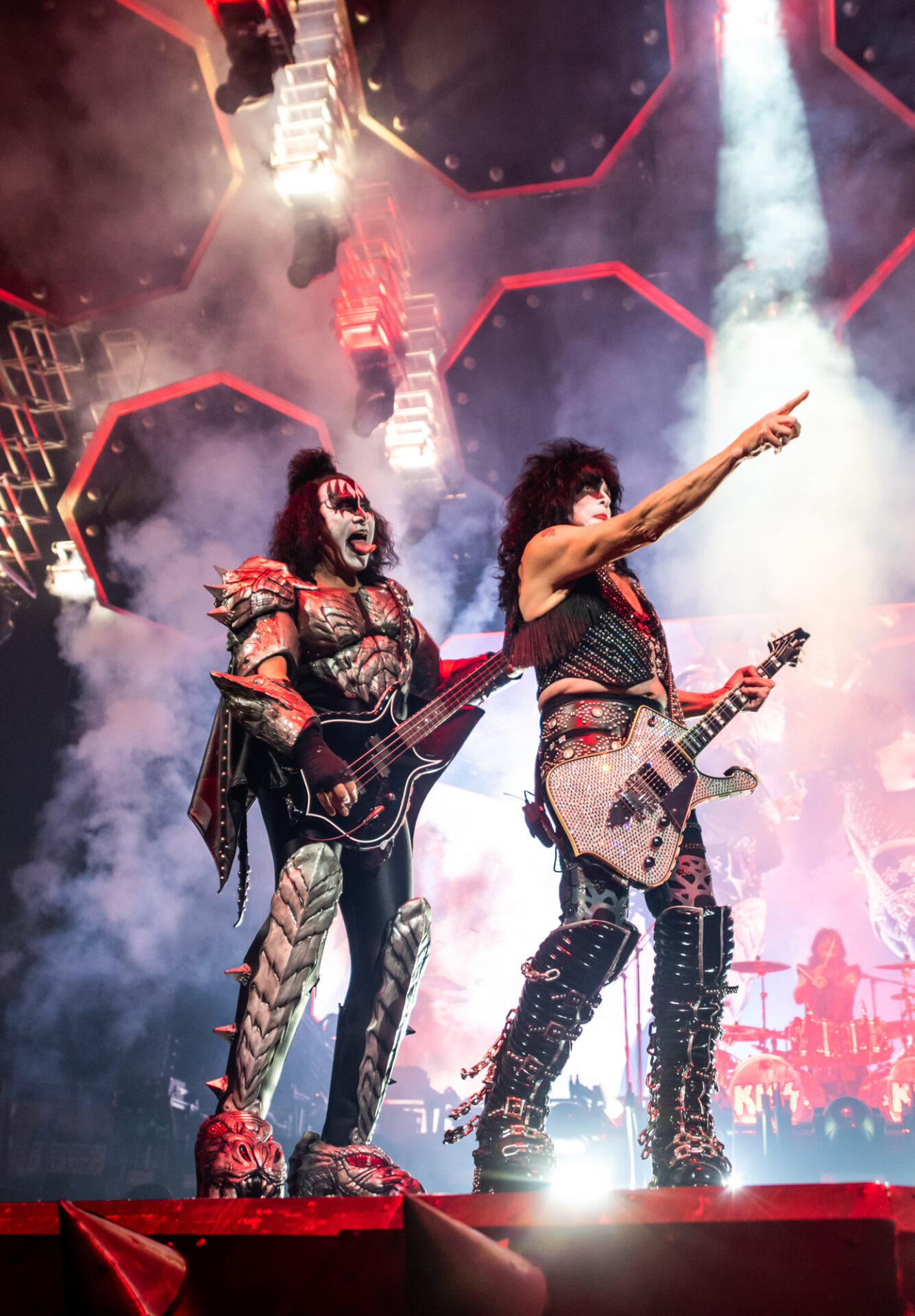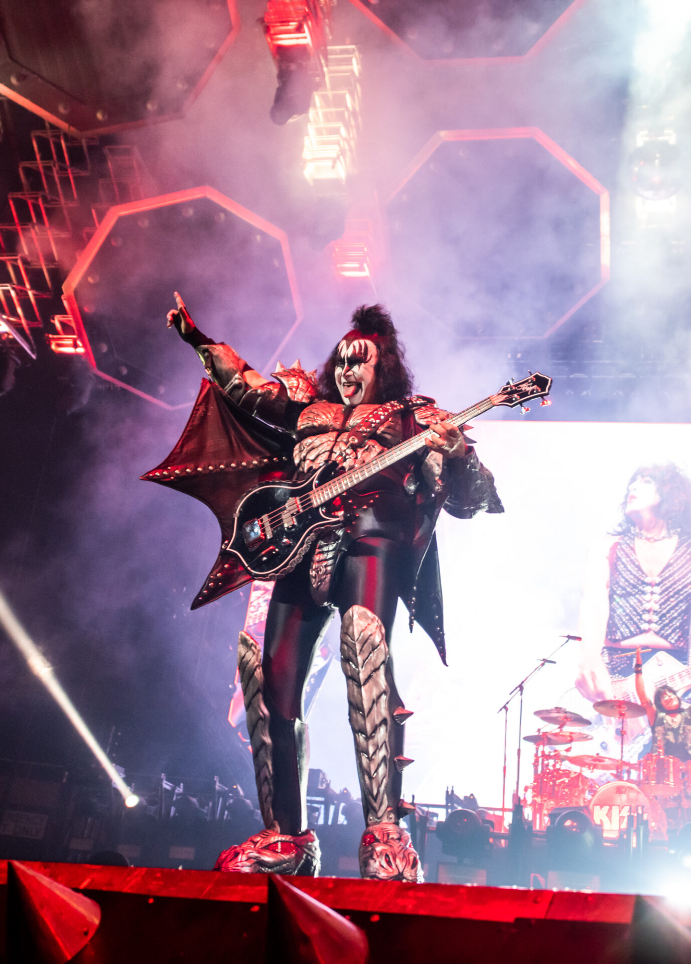 The show started off with the band members Gene Simmons, Paul Stanley, Tommy Thayer and Eric Singer descending from the ceiling on massive platforms surrounded by fire and fog as they played “Detroit Rock City”. For the thousands in attendance, this concert, barring a change of heart or even a miracle, would be the last chance to see their legendary stage production in person. If the crowd wanted the best, that’s exactly what they got. The band took the audience through a 50 year discography including songs like “Black Diamond”, “Cold Gin”, “Lick it Up”, “Rock and Roll All Nite” and “Psycho Circus”. With a band like KISS of course it isn’t just about the music though, it’s about the theatrics. Whether it be Gene Simmons spitting fake blood from his mouth during his bass solo, Paul Stanley flying over the crowd to another stage to perform “Love Gun” and “I Was Made for Lovin’ You” or drummer Eric Singer performing his drum solo while rising 30 feet above the stage, the fans were treated to a show that played to almost all the senses.