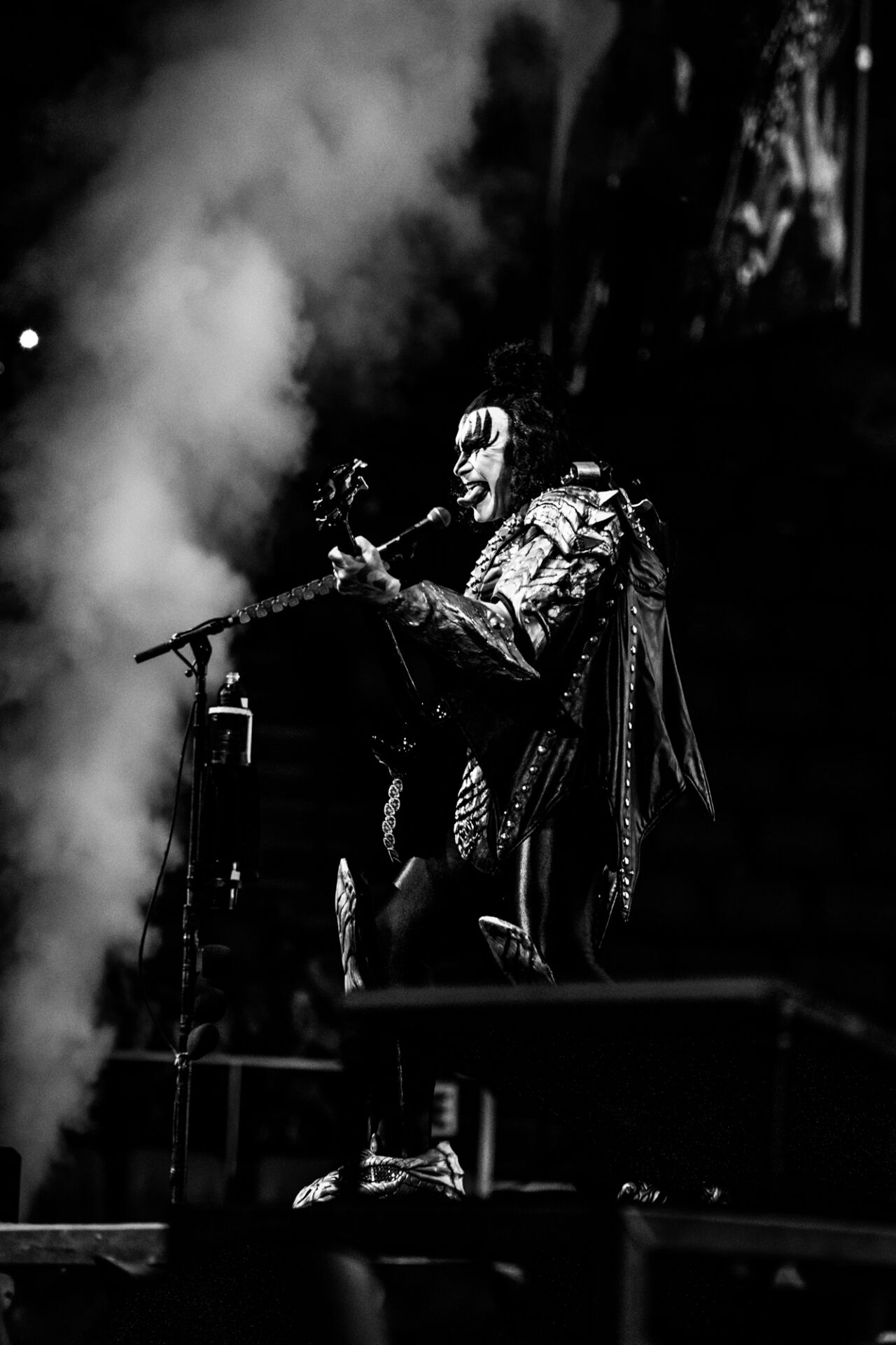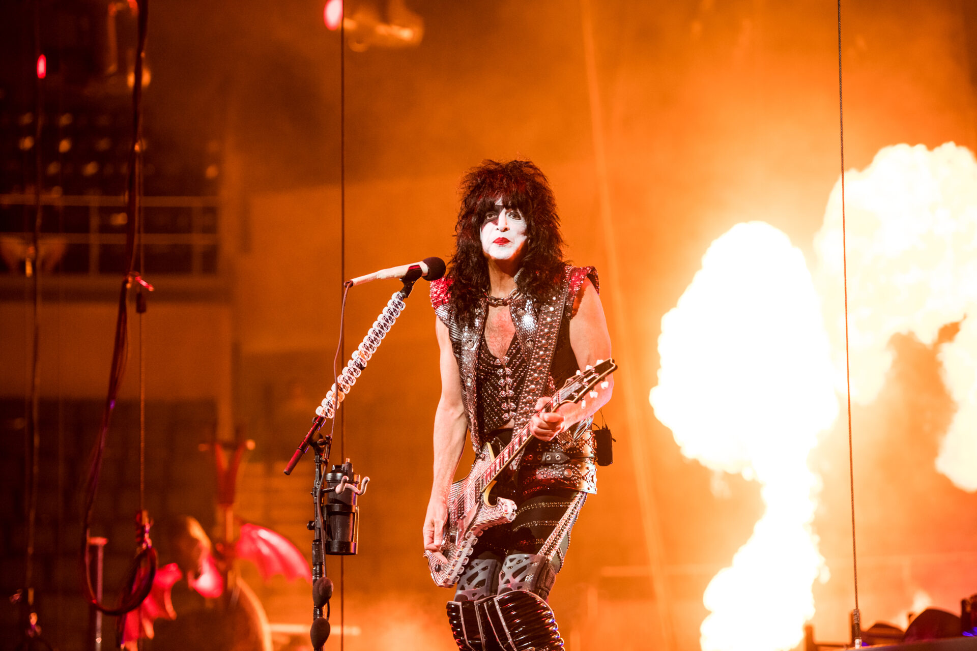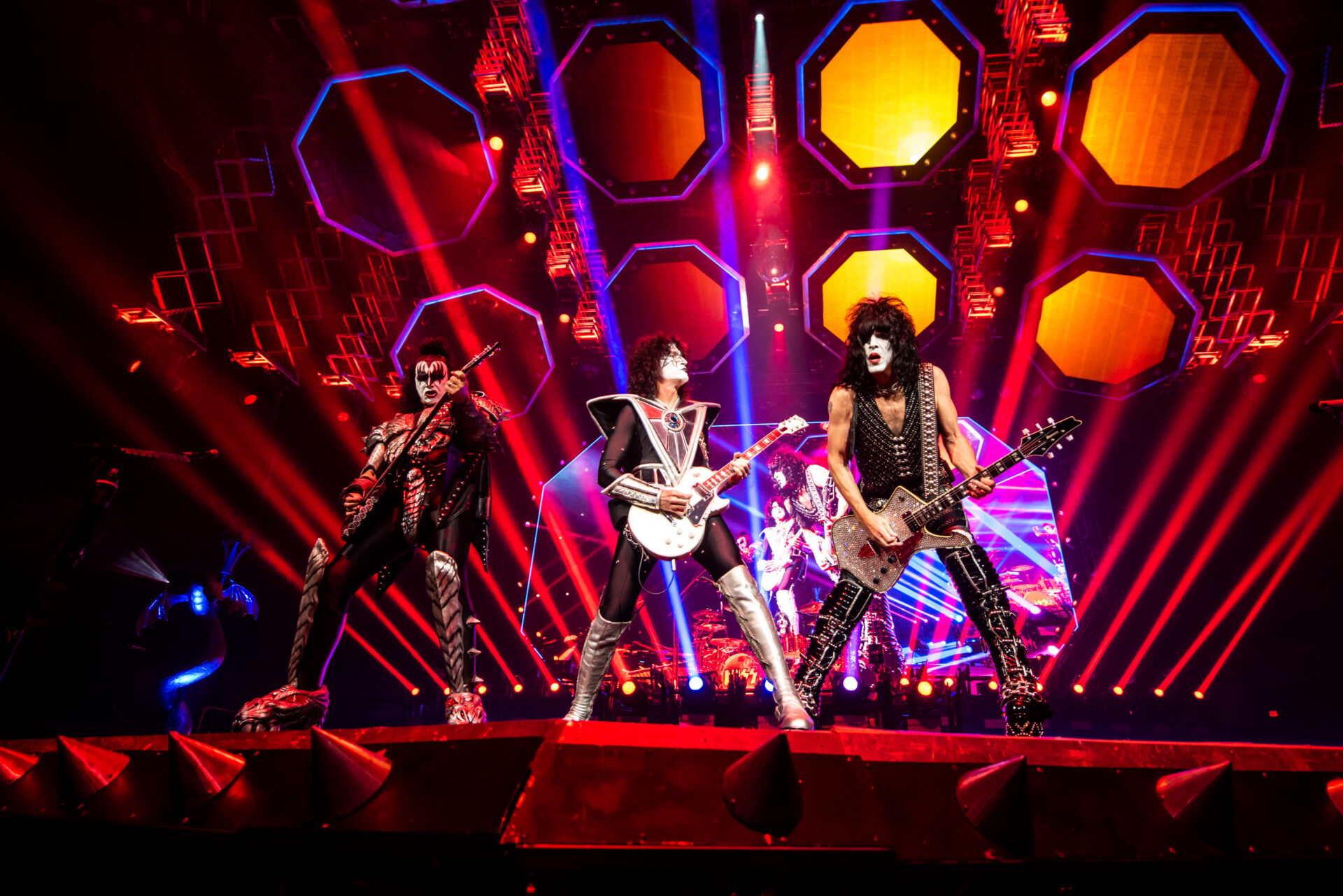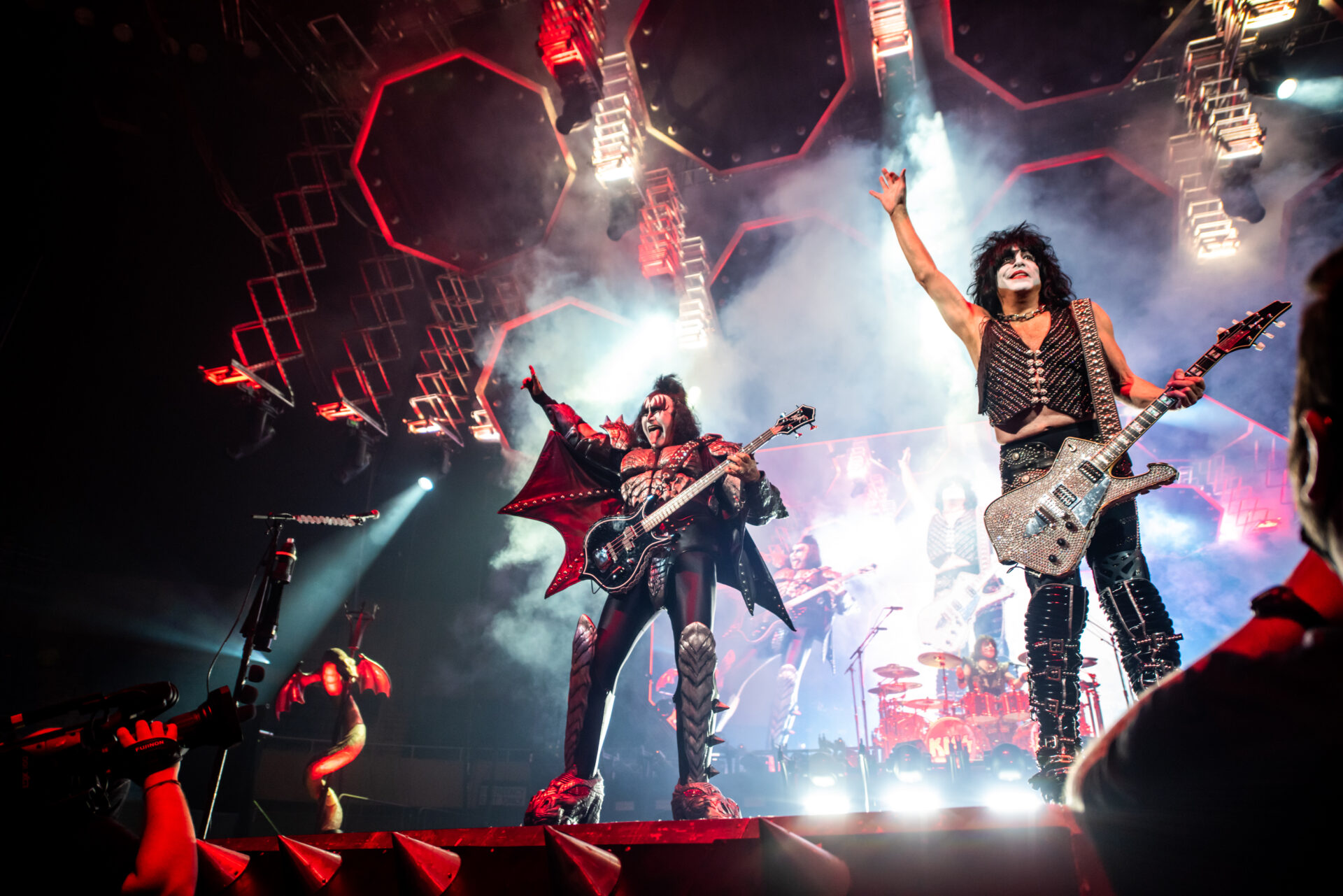 The show started off with the band members Gene Simmons, Paul Stanley, Tommy Thayer and Eric Singer descending from the ceiling on massive platforms surrounded by fire and fog as they played “Detroit Rock City”. For the thousands in attendance, this concert, barring a change of heart or even a miracle, would be the last chance to see their legendary stage production in person. If the crowd wanted the best, that’s exactly what they got. The band took the audience through a 50 year discography including songs like “Black Diamond”, “Cold Gin”, “Lick it Up”, “Rock and Roll All Nite” and “Psycho Circus”. With a band like KISS of course it isn’t just about the music though, it’s about the theatrics. Whether it be Gene Simmons spitting fake blood from his mouth during his bass solo, Paul Stanley flying over the crowd to another stage to perform “Love Gun” and “I Was Made for Lovin’ You” or drummer Eric Singer performing his drum solo while rising 30 feet above the stage, the fans were treated to a show that played to almost all the senses.