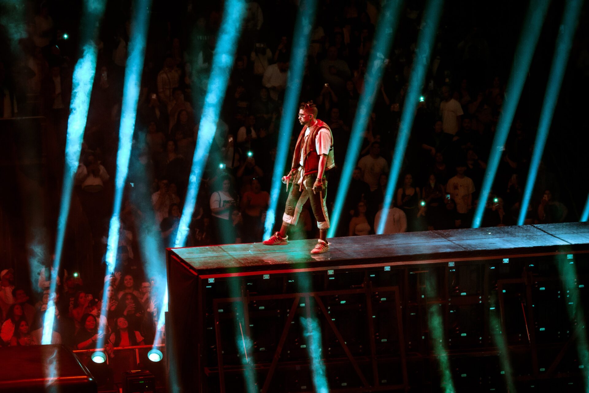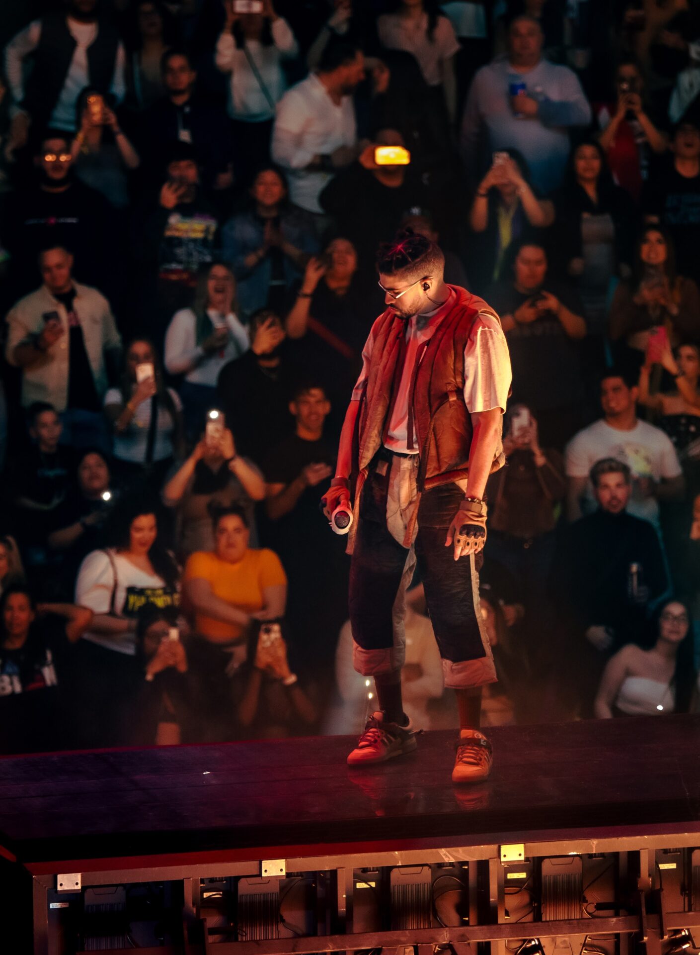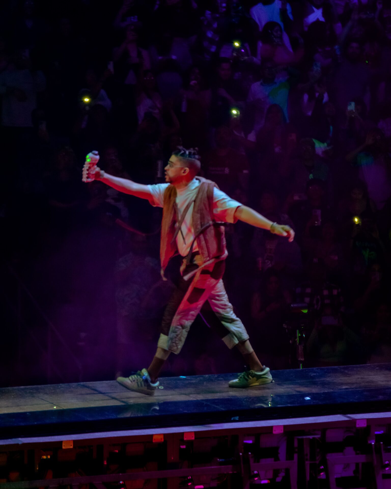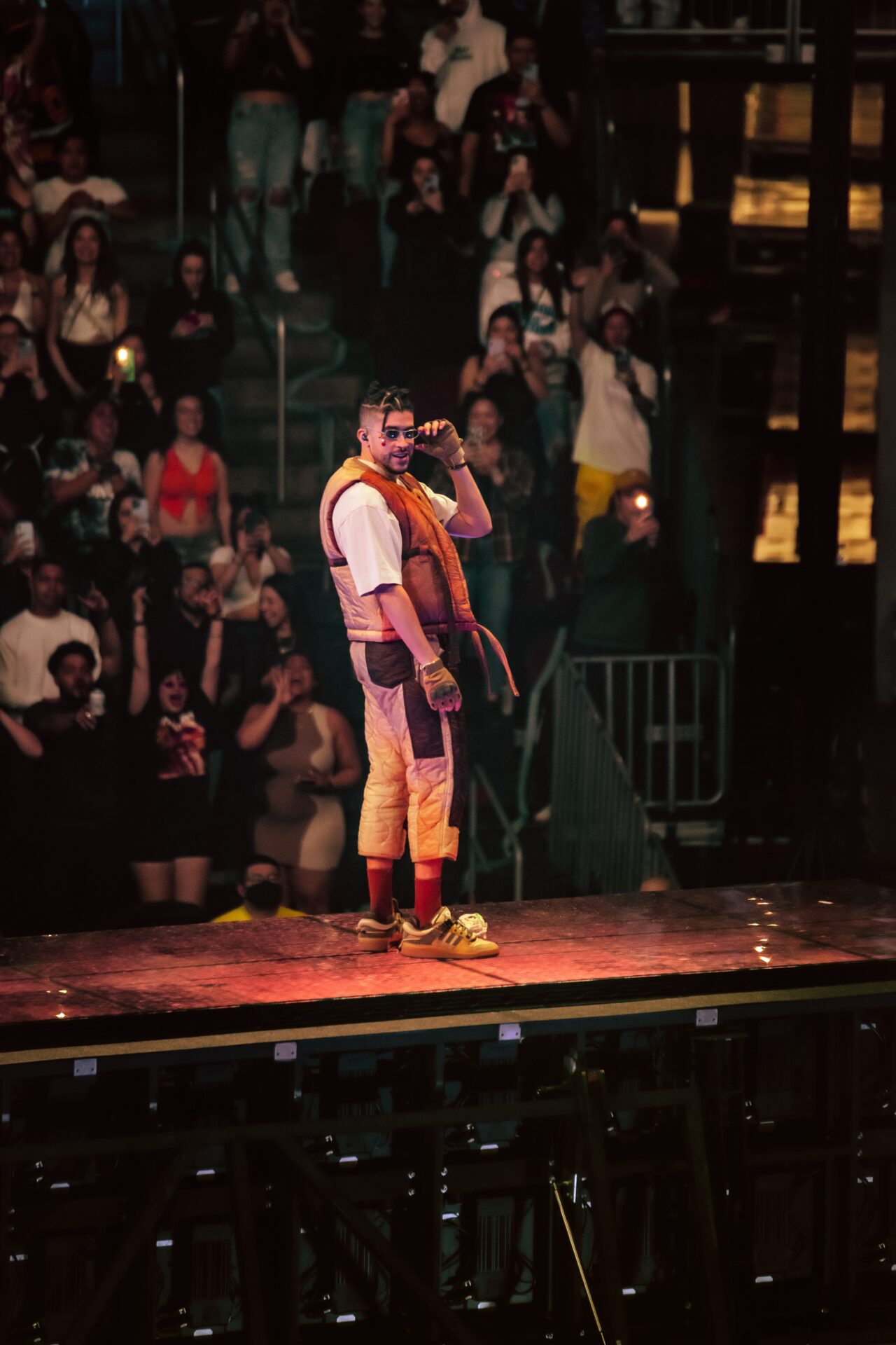 Labeled as El Ultimo Tour Del Mundo (The Last Tour In The World), Bad Bunny drew a sold-out crowd and had many guests scrambling to pick up last-minute tickets online—some of the highest prices were going for $1000. Upon entering the arena’s concert center, I was instantly greeted without thousands of screaming fans in their seats, eagerly awaiting the show to begin. The atmosphere was electric, and the fans donning shark costumes were spread throughout the venue.