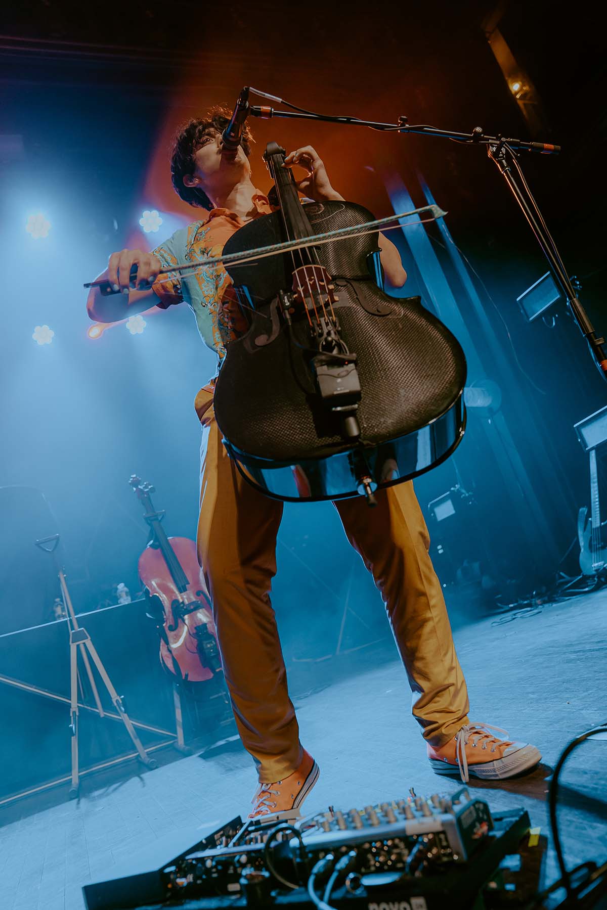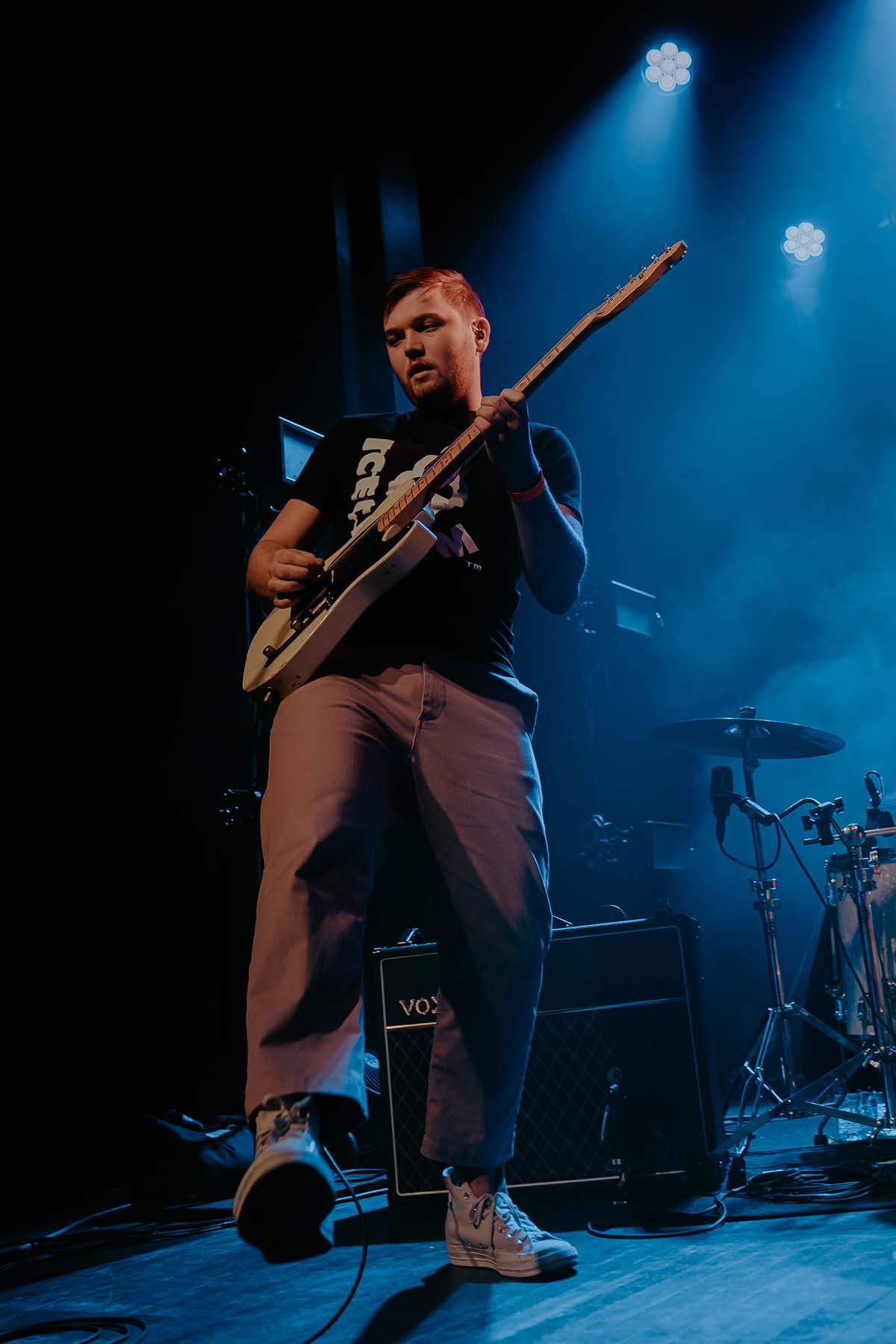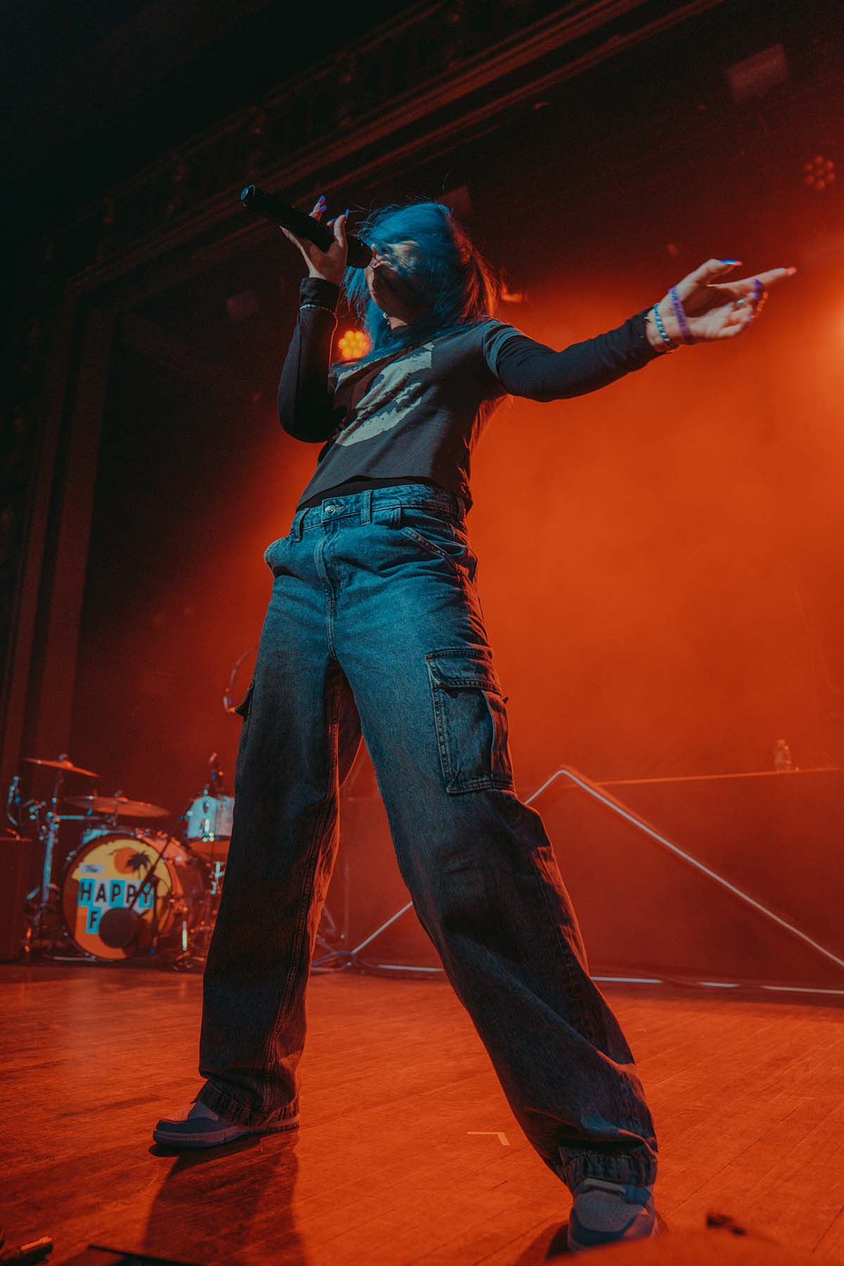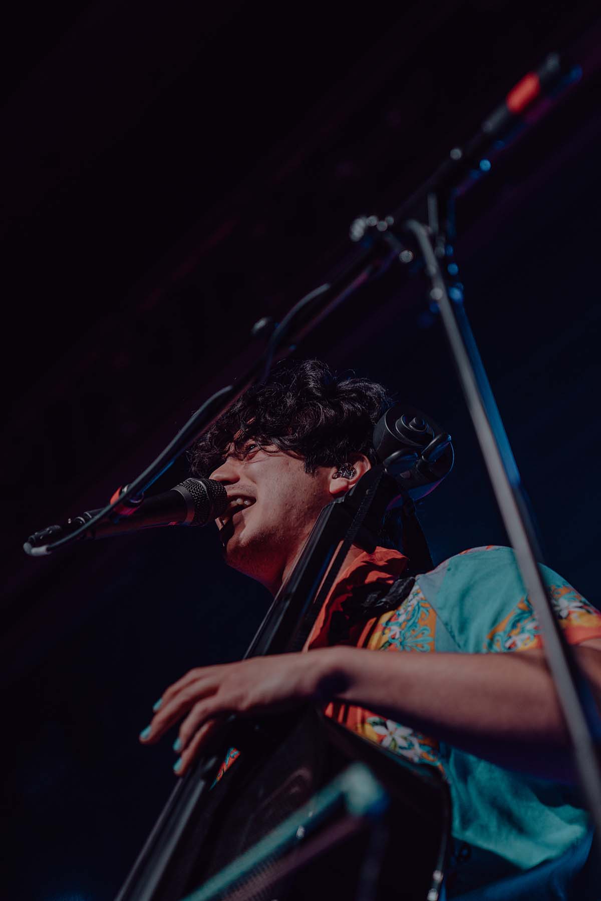 Up next was New Jersey indie rock trio, The Happy Fits. As they took to the stage, I couldn’t help but notice that lead singer, Calvin Langman, also played the cello. I can safely say this was my first time going to a non-classical music concert and seeing someone play the cello — extremely energetically, at that! Watching The Happy Fits perform felt like such a core memory moment for me. Their infectious smiles and tangible happiness were pouring from their faces and I couldn’t help but also feel that happiness. The Happy Fits made me nostalgic for my college years in the mid 2010’s, when bands like Magic Man, Smallpools, Walk the Moon (and even The Maine) were dominating this exact music genre. It was a moment of reassurance, that every single college age folk in that room, was experiencing the same things I did when I was in college, just a new generation. It truly warmed my heart!