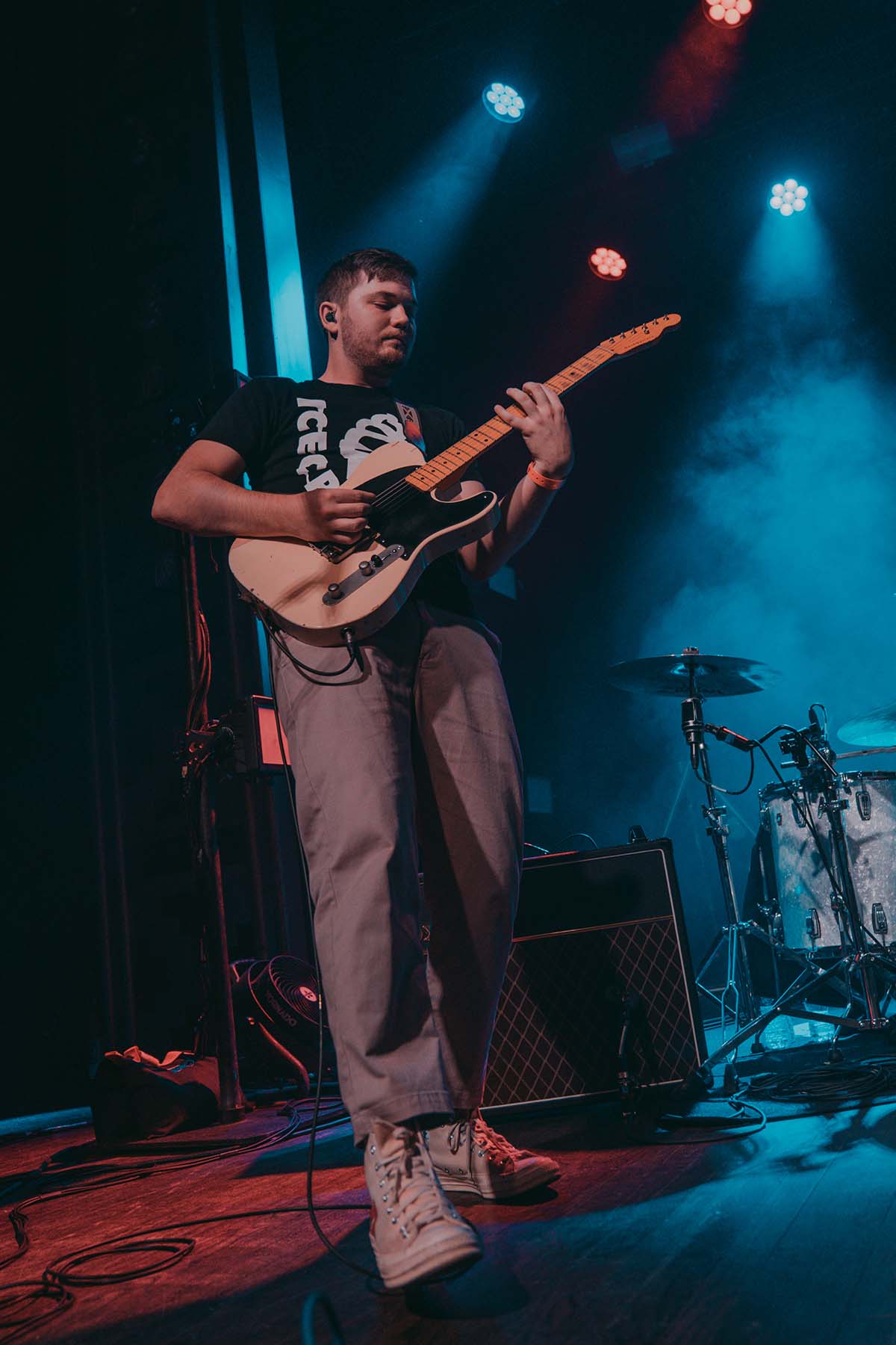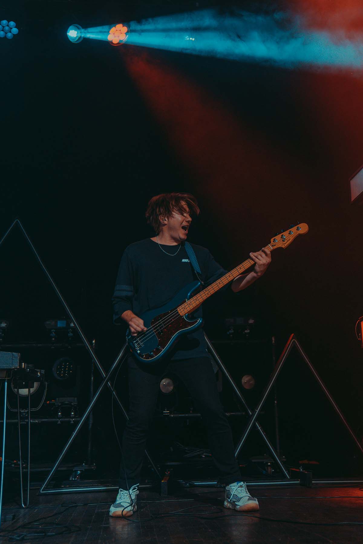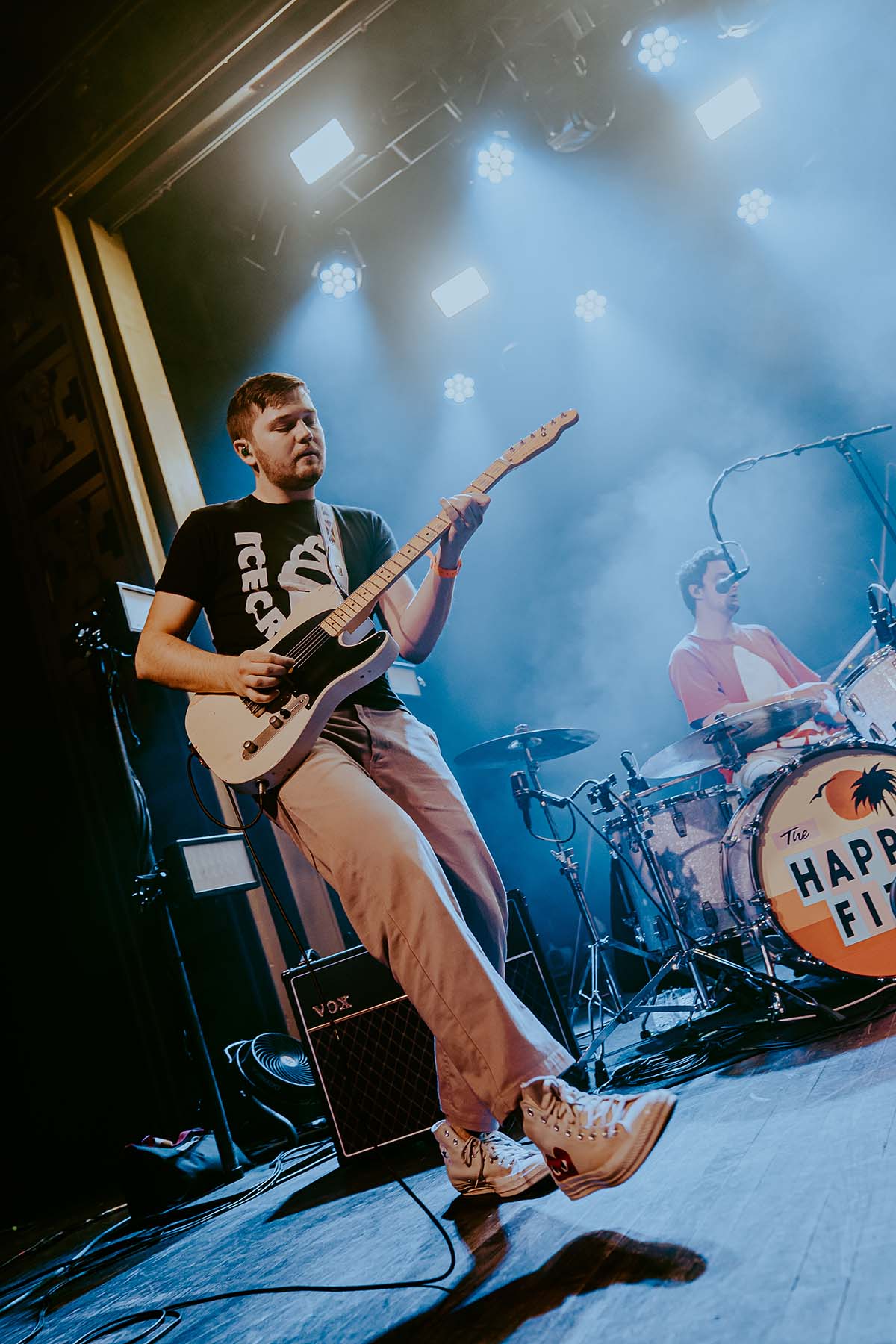 Up next was New Jersey indie rock trio, The Happy Fits. As they took to the stage, I couldn’t help but notice that lead singer, Calvin Langman, also played the cello. I can safely say this was my first time going to a non-classical music concert and seeing someone play the cello — extremely energetically, at that! Watching The Happy Fits perform felt like such a core memory moment for me. Their infectious smiles and tangible happiness were pouring from their faces and I couldn’t help but also feel that happiness. The Happy Fits made me nostalgic for my college years in the mid 2010’s, when bands like Magic Man, Smallpools, Walk the Moon (and even The Maine) were dominating this exact music genre. It was a moment of reassurance, that every single college age folk in that room, was experiencing the same things I did when I was in college, just a new generation. It truly warmed my heart!