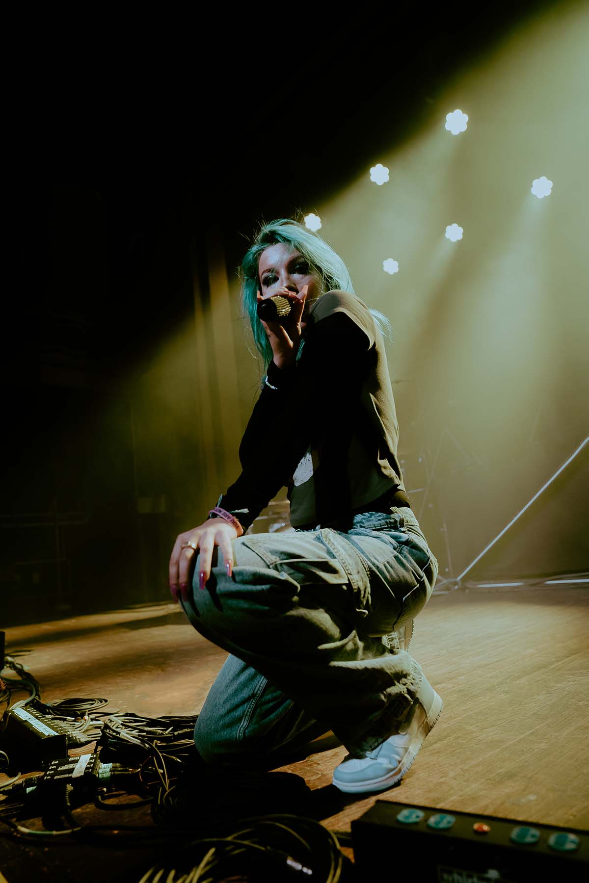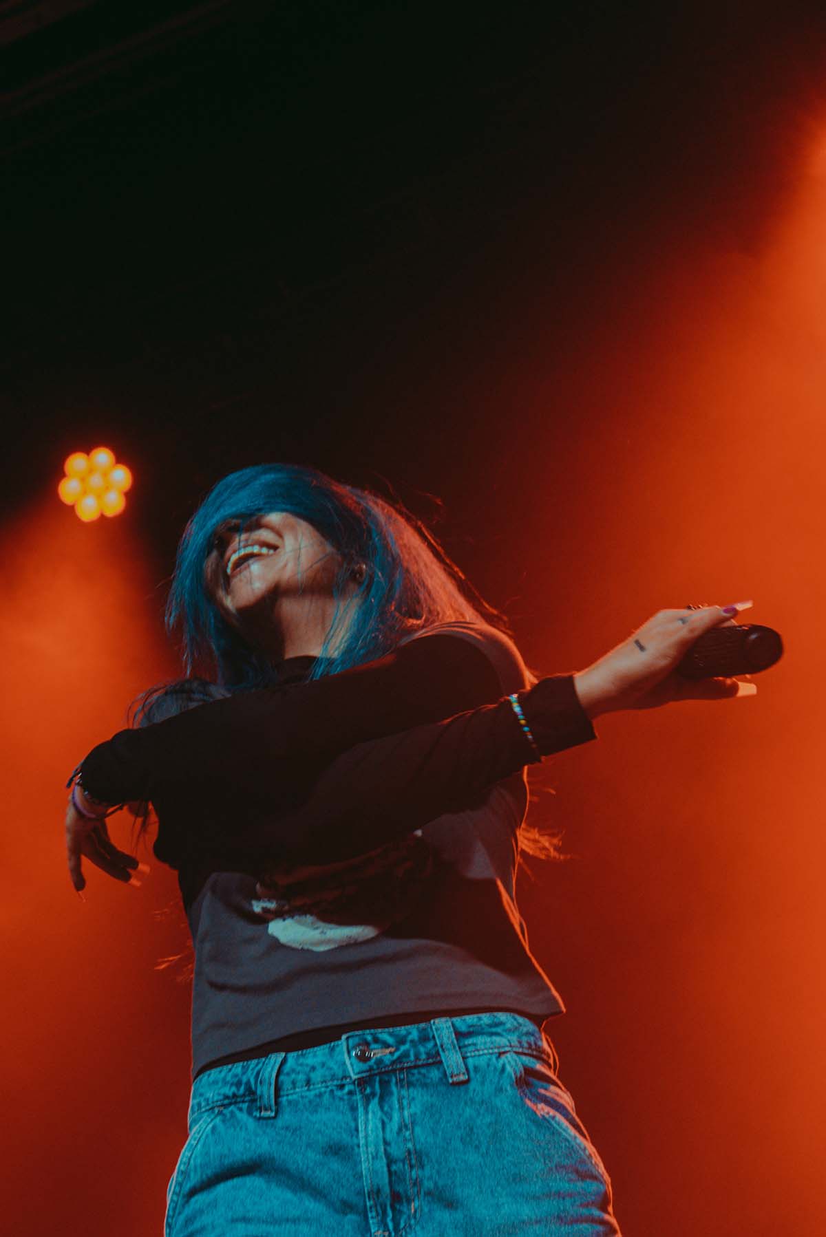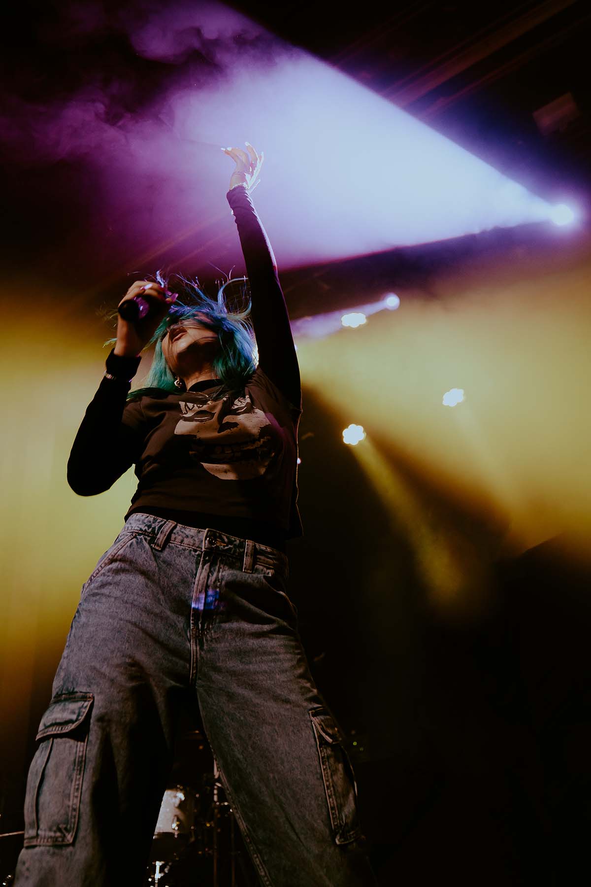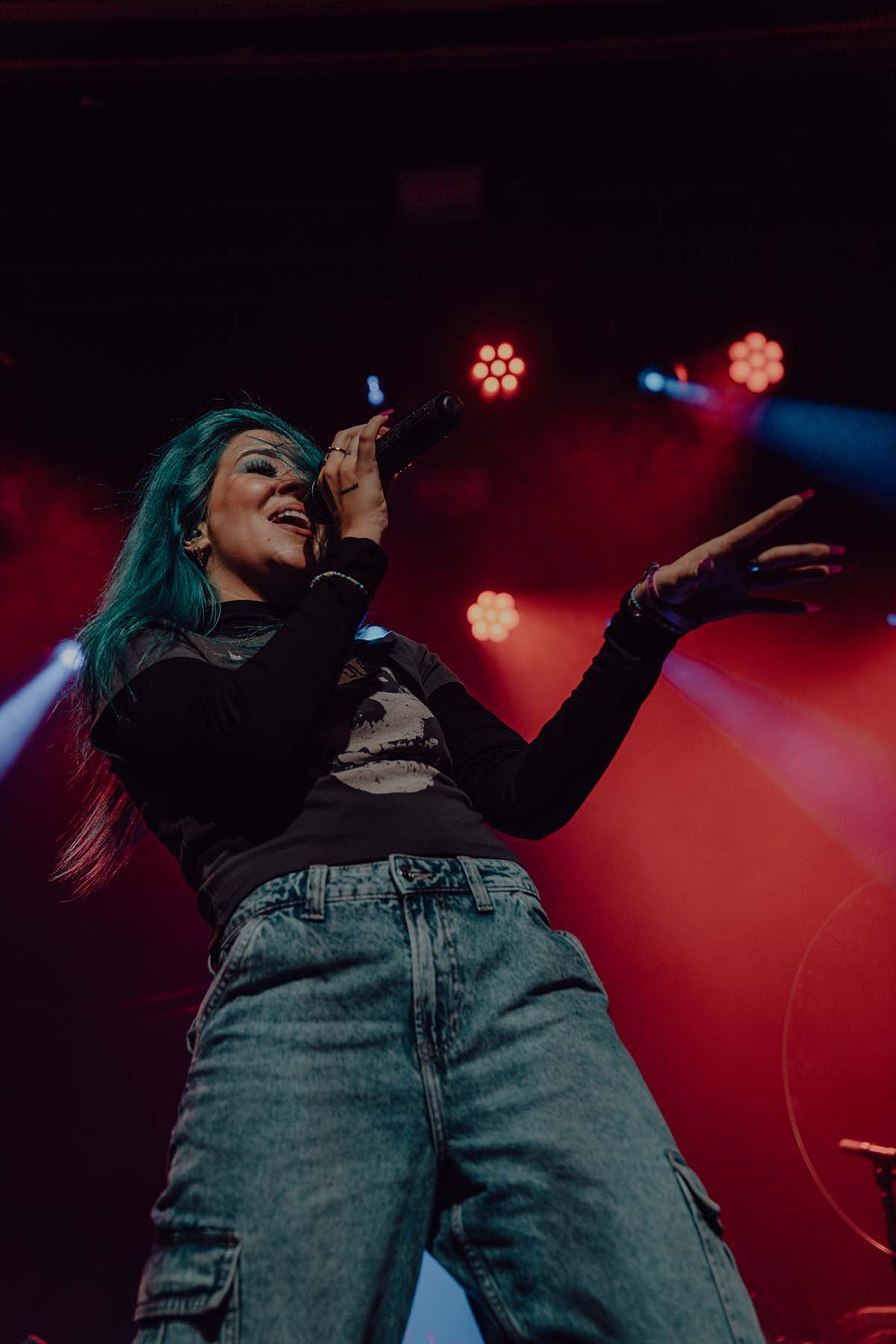Up next was New Jersey indie rock trio, The Happy Fits. As they took to the stage, I couldn’t help but notice that lead singer, Calvin Langman, also played the cello. I can safely say this was my first time going to a non-classical music concert and seeing someone play the cello — extremely energetically, at that! Watching The Happy Fits perform felt like such a core memory moment for me. Their infectious smiles and tangible happiness were pouring from their faces and I couldn’t help but also feel that happiness. The Happy Fits made me nostalgic for my college years in the mid 2010’s, when bands like Magic Man, Smallpools, Walk the Moon (and even The Maine) were dominating this exact music genre. It was a moment of reassurance, that every single college age folk in that room, was experiencing the same things I did when I was in college, just a new generation. It truly warmed my heart!