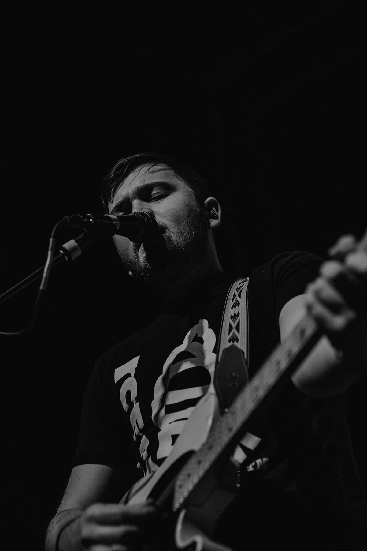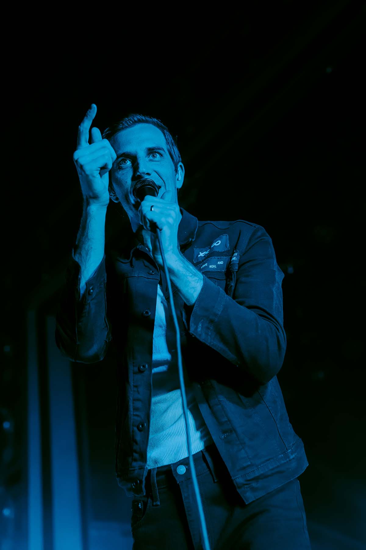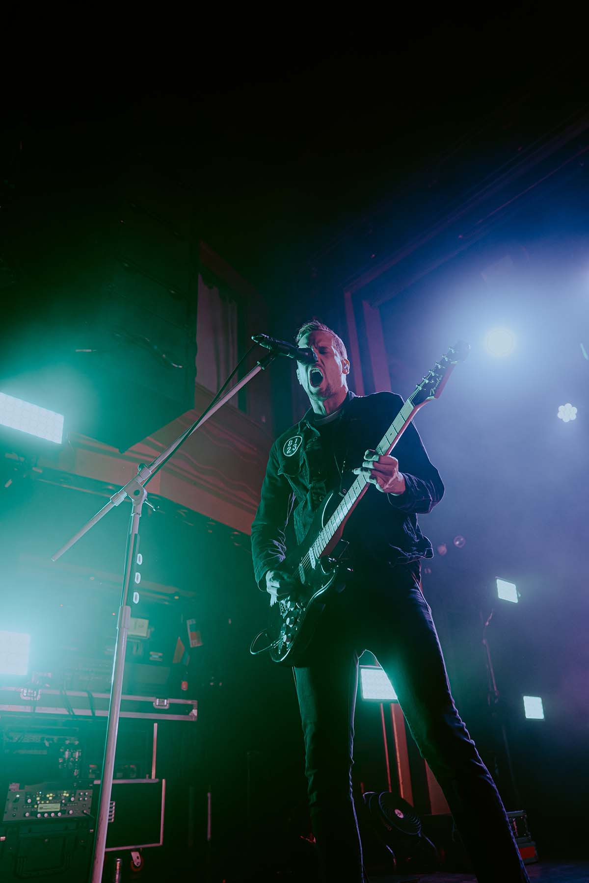 Last but not least was the main act of the night — Tempe, Arizona’s finest, The Maine! Entering from stage left slowly, the band waved to the crowd as Neil Diamond’s “Sweet Caroline” blasted throughout the venue. Lead singer, John O’Callaghan grabbed the microphone with both hands and they immediately ripped into “Sticky” off their most recent album XOXO: From Love and Anxiety In Real Time. The floor beneath me was bouncing up and down so much so that it was quite the challenge to get pictures of the band. Guitarists Kennedy Brock and Jared Monaco were shredding it at opposing sides of the stage, while bassist Garrett Nickelsen floated across the stage from side to side.