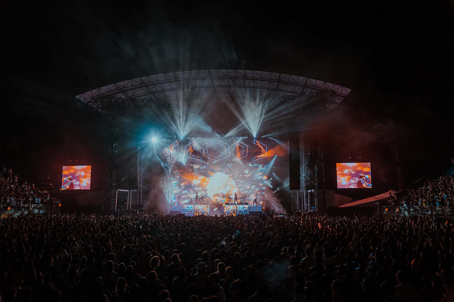 The stadium held a stacked lineup on Saturday night, with Gilligan Moss, San Holo, Sylvan Esso, and Odesza. It was, what appeared to be, a completely sold out show. If you’ve ventured out to this venue, you know how many people this entails. Food and drink vendors were scattered throughout the venue, along with free water stations and, my personal favorite, a place where you could get mango chile popsicles – a MUST on a warm night in Queens.