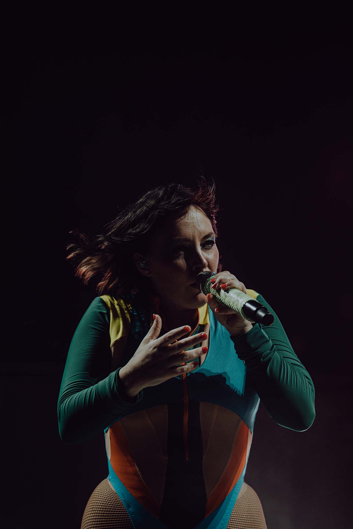 Sylvan Esso was up next, and they were a site to see! The duo humbly waved at the crowd as the stepped onto the stage before starting with their song “What If.” Throughout the performance, they made sure to thank the crowd for showing up early to watch their set – a small but sweet gesture from artists. They kept the talking to a minimum and had a solid 15 song show, packing as much music into their allotted time as possible. Nick Sanborn stays behind the keyboard to work some live mixing magic, while Amelia Meath keeps the audience captivated by her energetic dance moves and high kicks while she kills it on the vocals. The type of performance where you just couldn’t look away. By this time of the night, the sky had darkened and several light up balloons had been released and made their way bouncing across the crowd, adding to the liveliness of their performance.