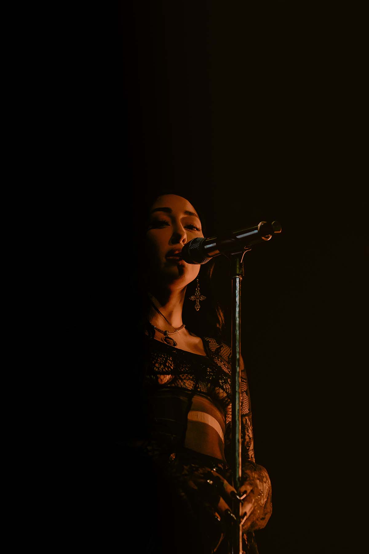 Her straight dark hair continuously slipped into her line of view, using her long nails to brush it out of her eyes during her opening song “Noah (Stand Still)”. The energy within the walls was quiet and reserved, but respectful and in deep awe of the set of pipes on Cyrus.
