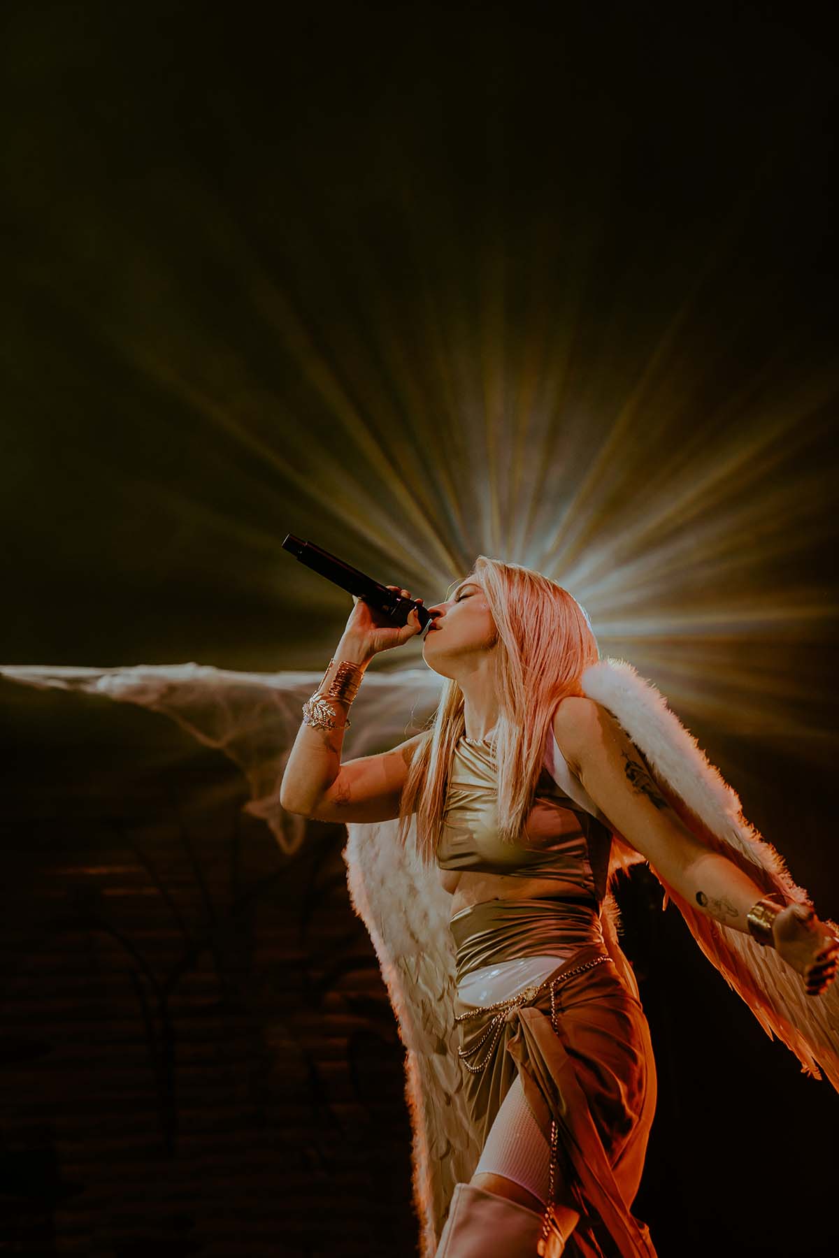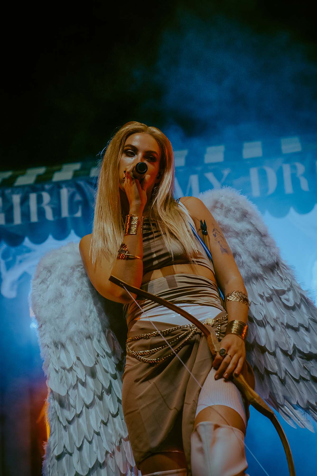 Finally, the lights went dark and the show began. Fletcher, wearing an insanely intricate cupid costume with massive elaborate wings, and her band busted through the door of the storefront set and immediately ripped into “Guess We Lied…”. Immediately the energy was palpable, I could barely hear Fletcher over the fans screaming the lyrics right back to her. Fletcher threw fans along the barricade a few winks and a smile before delving fully into her zone and providing the thousands of fans in that room with the best Halloween-eve they’ve ever experienced.