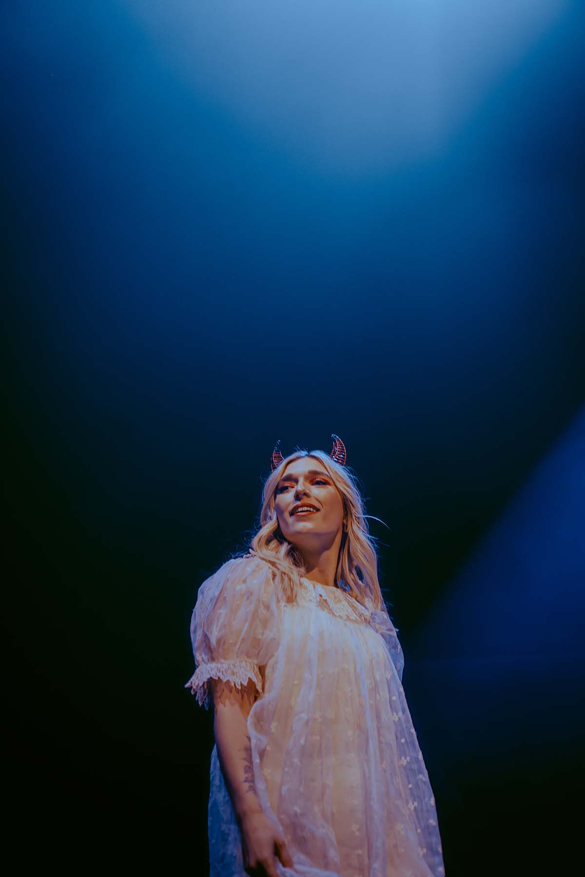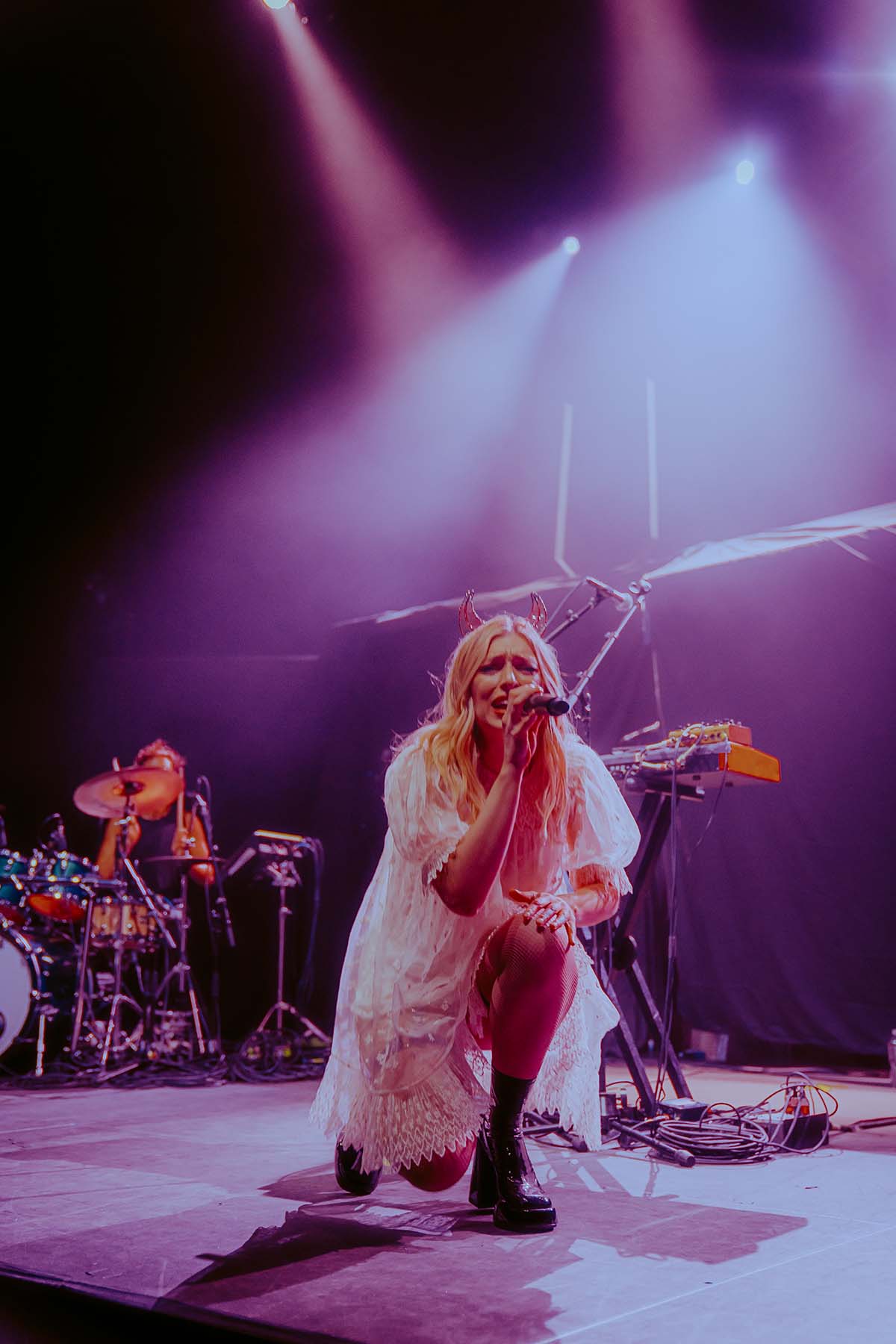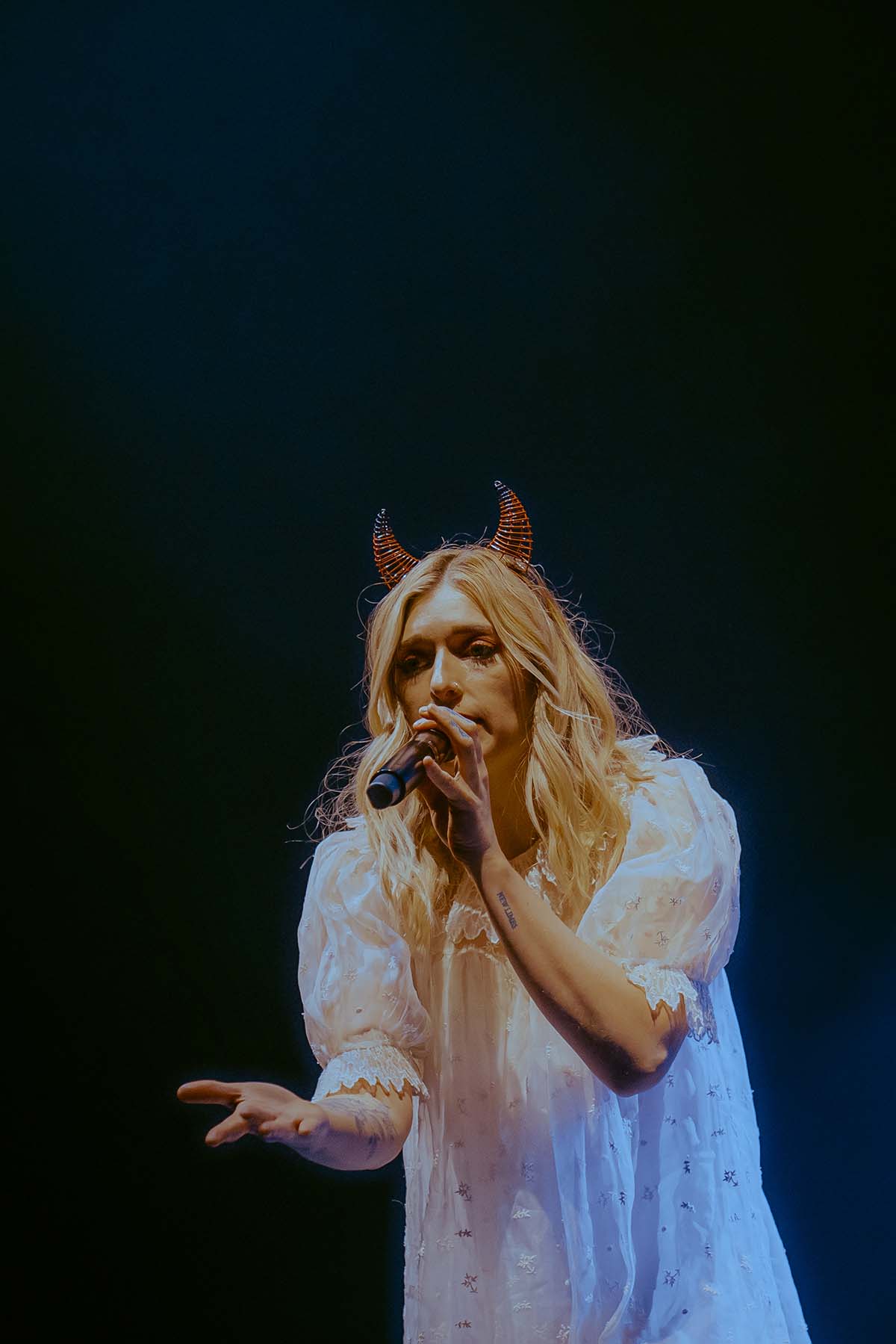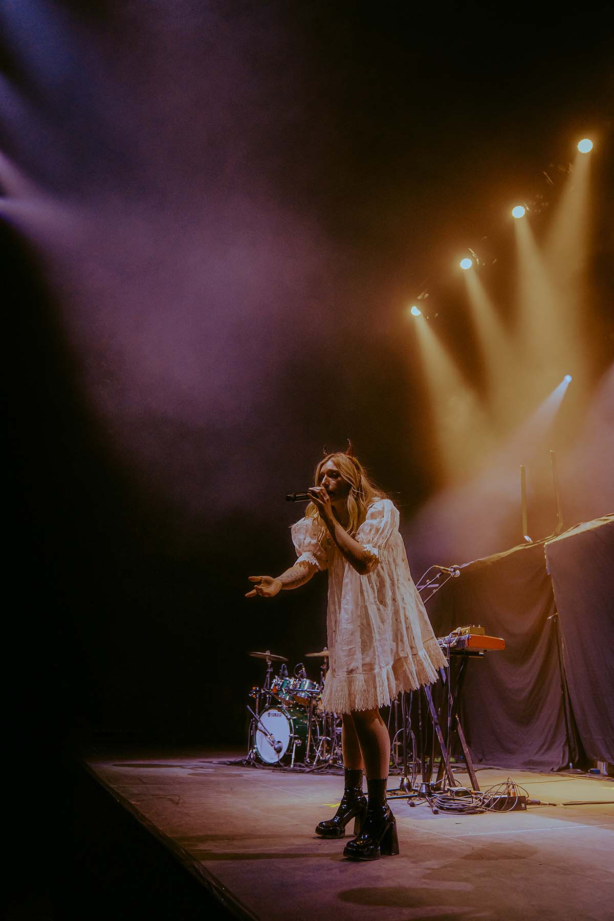 At 8pm sharp, New York based singer/songwriter, Verité graced the stage. In a fairy-like white dress and donning a headband with devil horns on them, Verité gave fans the perfect opening performance to set the tone for the evening. After asking the New York crowd how they were feeling and receiving endless hoots and hollers from the crowd, Verité smiled into her microphone and said, “Good. It’s good to be home”. Verité performed a brief 30 minute setlist packed with seven of her most recent songs, including “he’s not you”, “think of me” and her final song of the evening, “are we done yet?”.