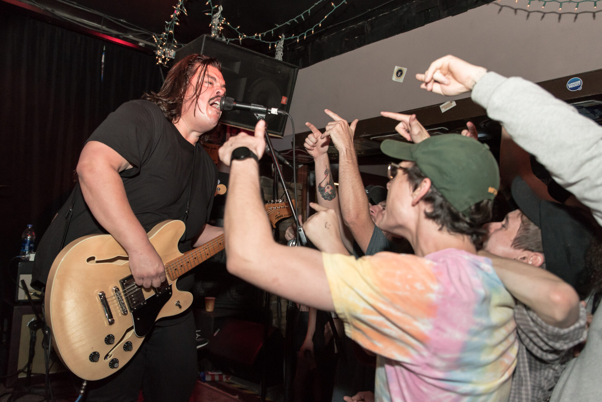 MH: I am so excited to be here. I’ve been looking forward to this, and it’s so fun for me to see that, like – you have Handguns on a few shows, who were some of the first people you toured with when you first came out to the East Coast. You had Nominee – they’re not on here tonight, but the first time I saw you was with I Call Fives with Chris Mclelland. In a way, it’s like a reunion, but it seems like you all have stayed in touch over the years. And then you bring on Homesafe, Death Lens, and Pollyanna, who are awesome. They’re so good.