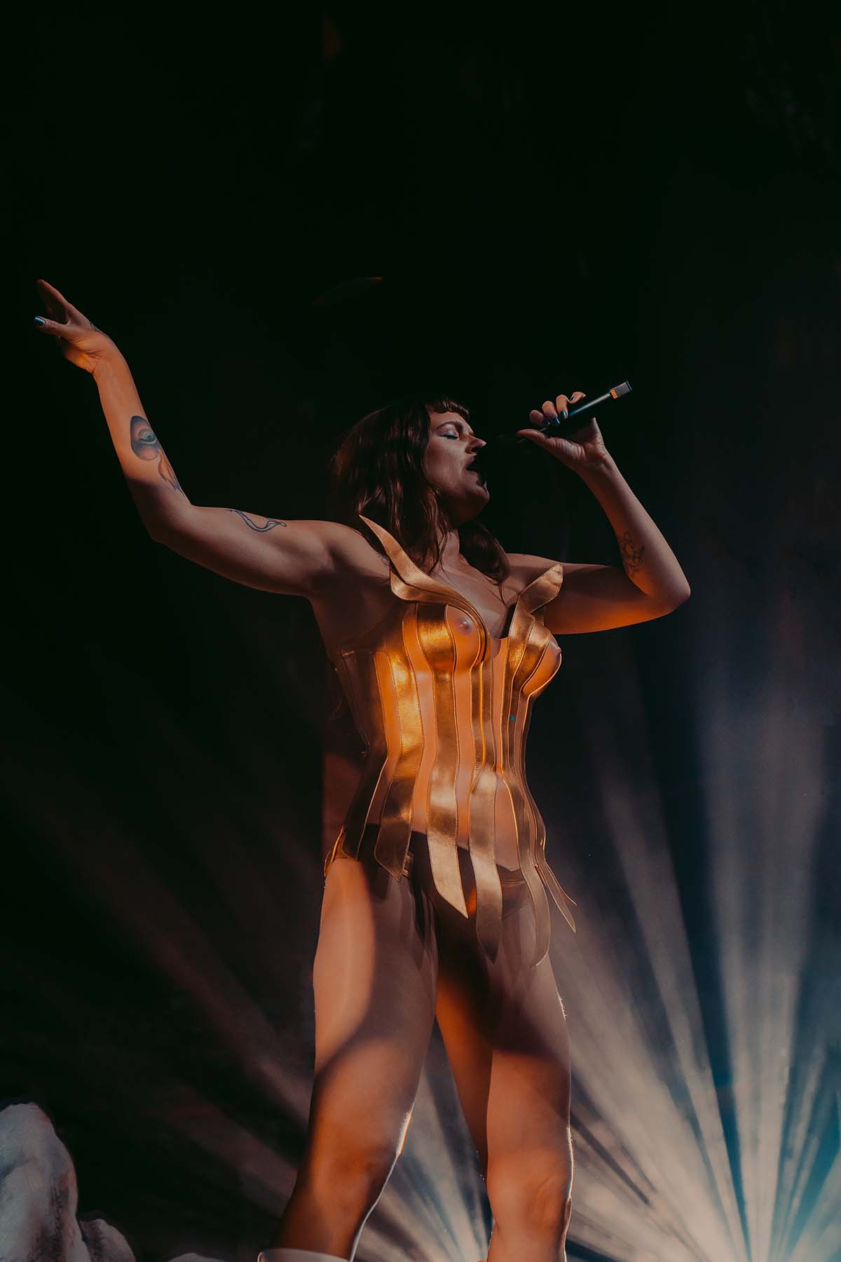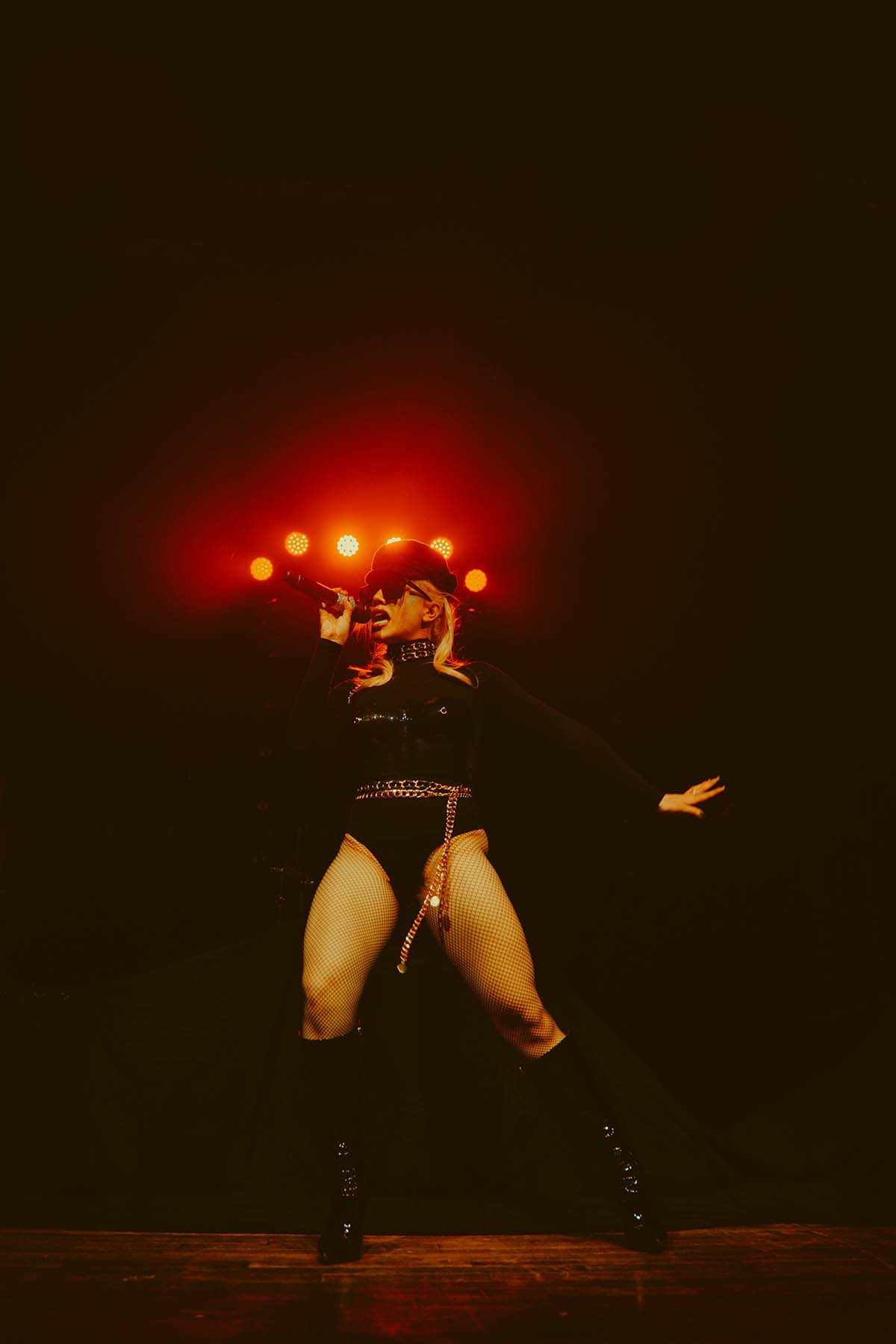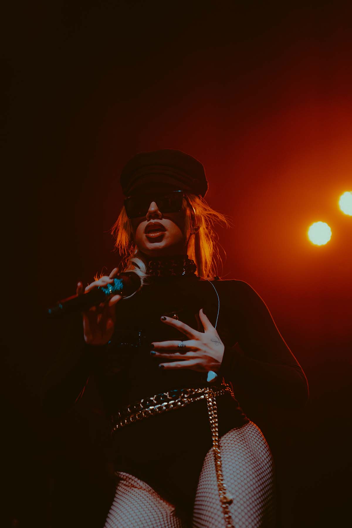 Kicking off the evenings festivities was electro-pop singer Slayyyter who, in her own words, makes music about “sex, drugs and partying”. Opening her set with “Erotic Electronic”, Slayyyter captivated the crowds attention. In an all black jumpsuit with a black chest piece, leather hat and dark black sunglasses she bounced across the stage accompanied by her DJ, Owen Jackson (who was wearing an Eagles jersey)! Slayyyter’s 11 song setlist was chock full of fan favorites like “Mine”, “Butterflies”, “Clouds” and my personal favorite song “Troubled Paradise”. Slayyyter’s energy never wavered throughout her performance and she chose to conclude her set with her high energy single from the movie Bodies, Bodies, Bodies — “Daddy AF”.