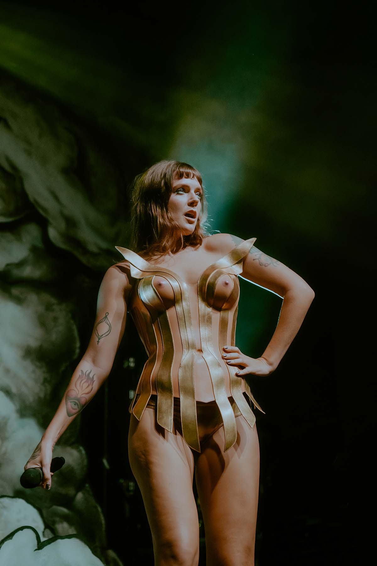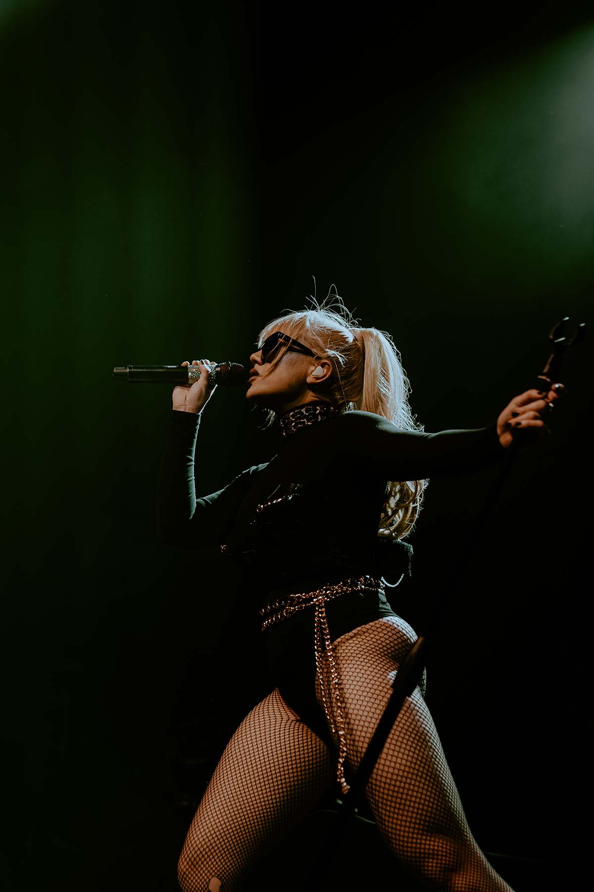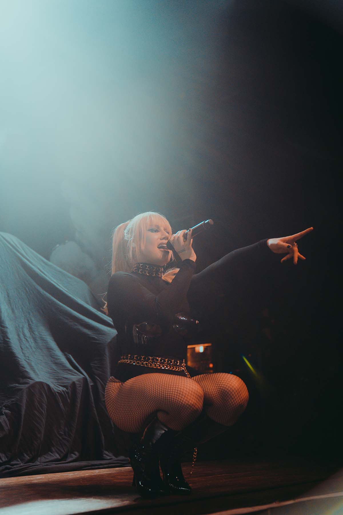 Kicking off the evenings festivities was electro-pop singer Slayyyter who, in her own words, makes music about “sex, drugs and partying”. Opening her set with “Erotic Electronic”, Slayyyter captivated the crowds attention. In an all black jumpsuit with a black chest piece, leather hat and dark black sunglasses she bounced across the stage accompanied by her DJ, Owen Jackson (who was wearing an Eagles jersey)! Slayyyter’s 11 song setlist was chock full of fan favorites like “Mine”, “Butterflies”, “Clouds” and my personal favorite song “Troubled Paradise”. Slayyyter’s energy never wavered throughout her performance and she chose to conclude her set with her high energy single from the movie Bodies, Bodies, Bodies — “Daddy AF”.