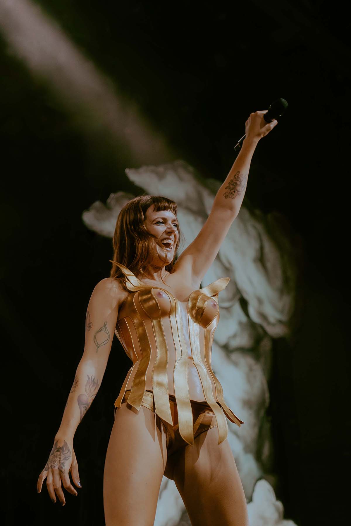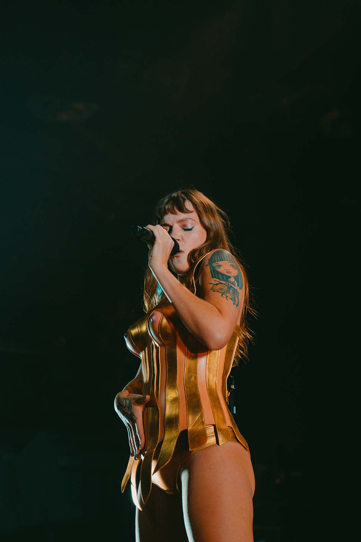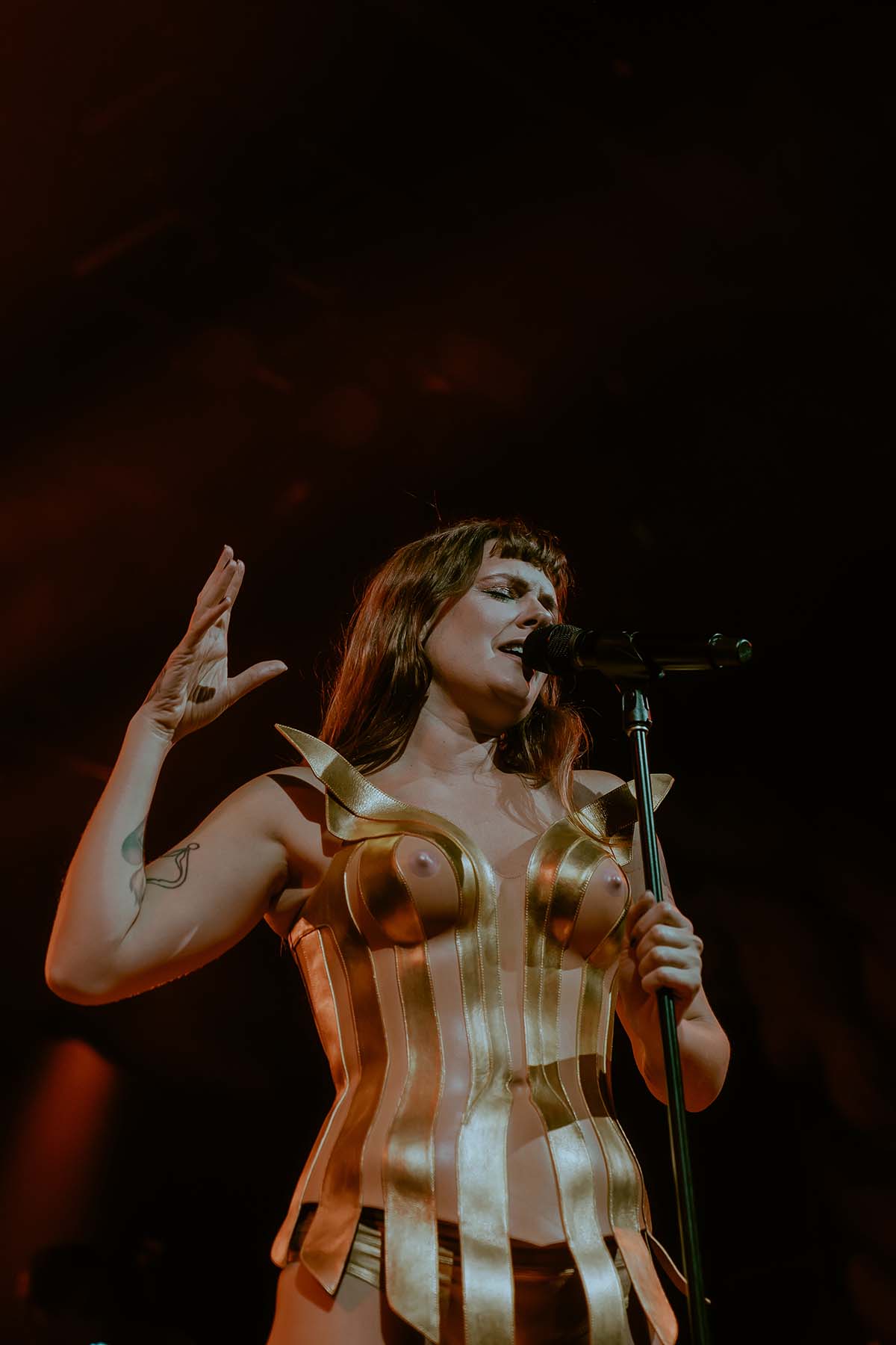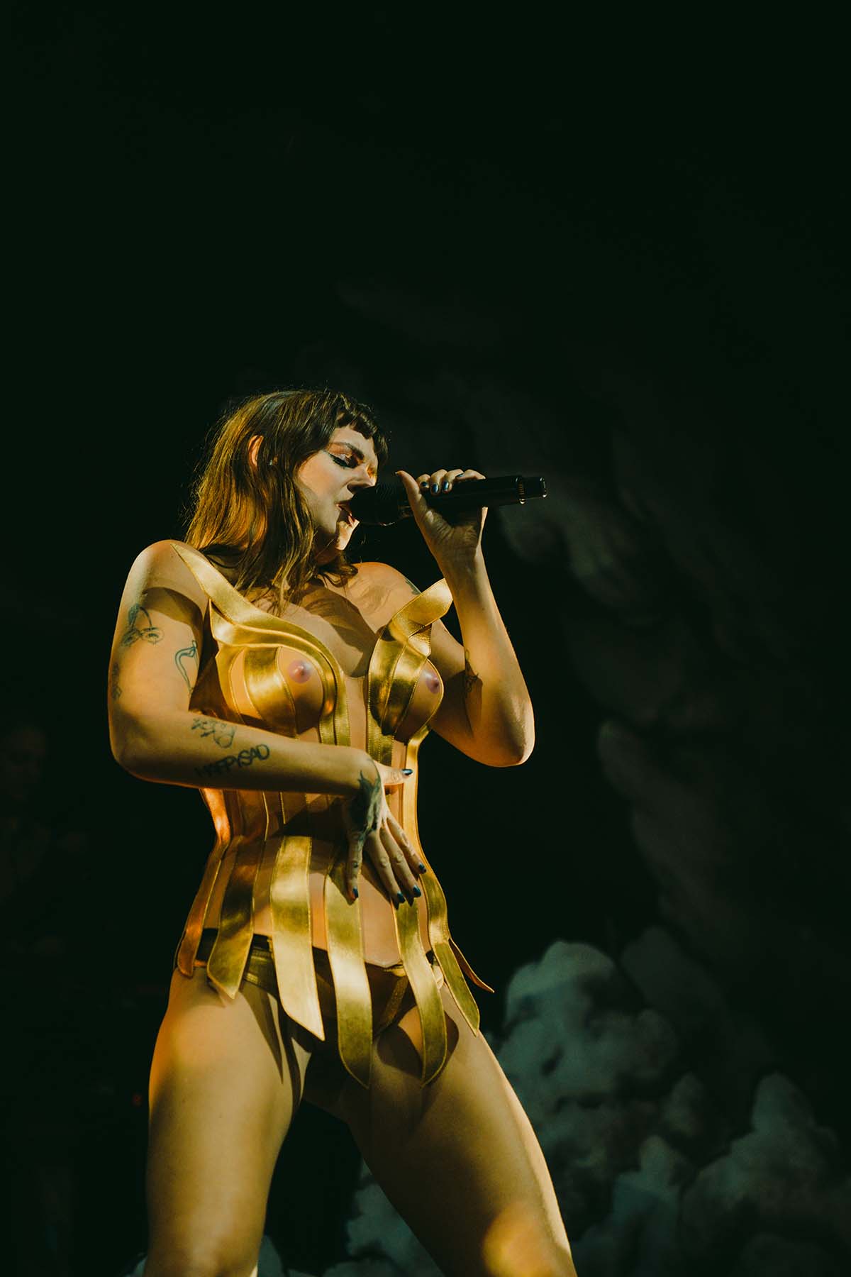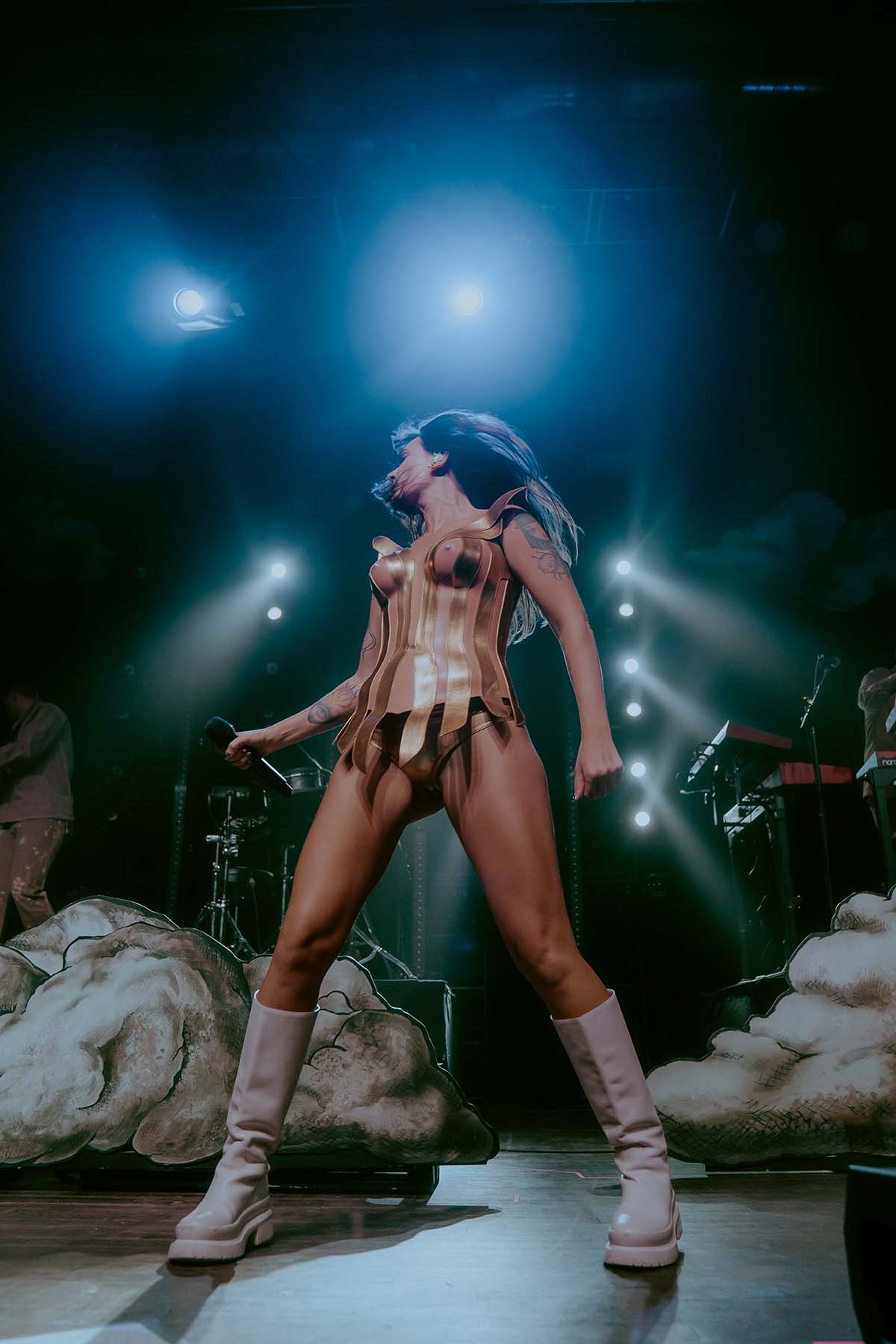 Between sets, the entire venue was buzzing. The excitement of queer icon Tove Lo’s arrival was increasing by the minute and the desire to let loose and rave was becoming unbearable for many patrons in the crowd. Finally, just around 9pm, the lights went dark and Tove Lo’s band took to the stage. Opening her set with two high energy hits from her album Dirt Femme, Tove Lo waisted no time with “Pineapple Slice” and “Attention Whore”. The entire crowd was jumping and the front barricade slid back and forth against the pressure from the crowd.