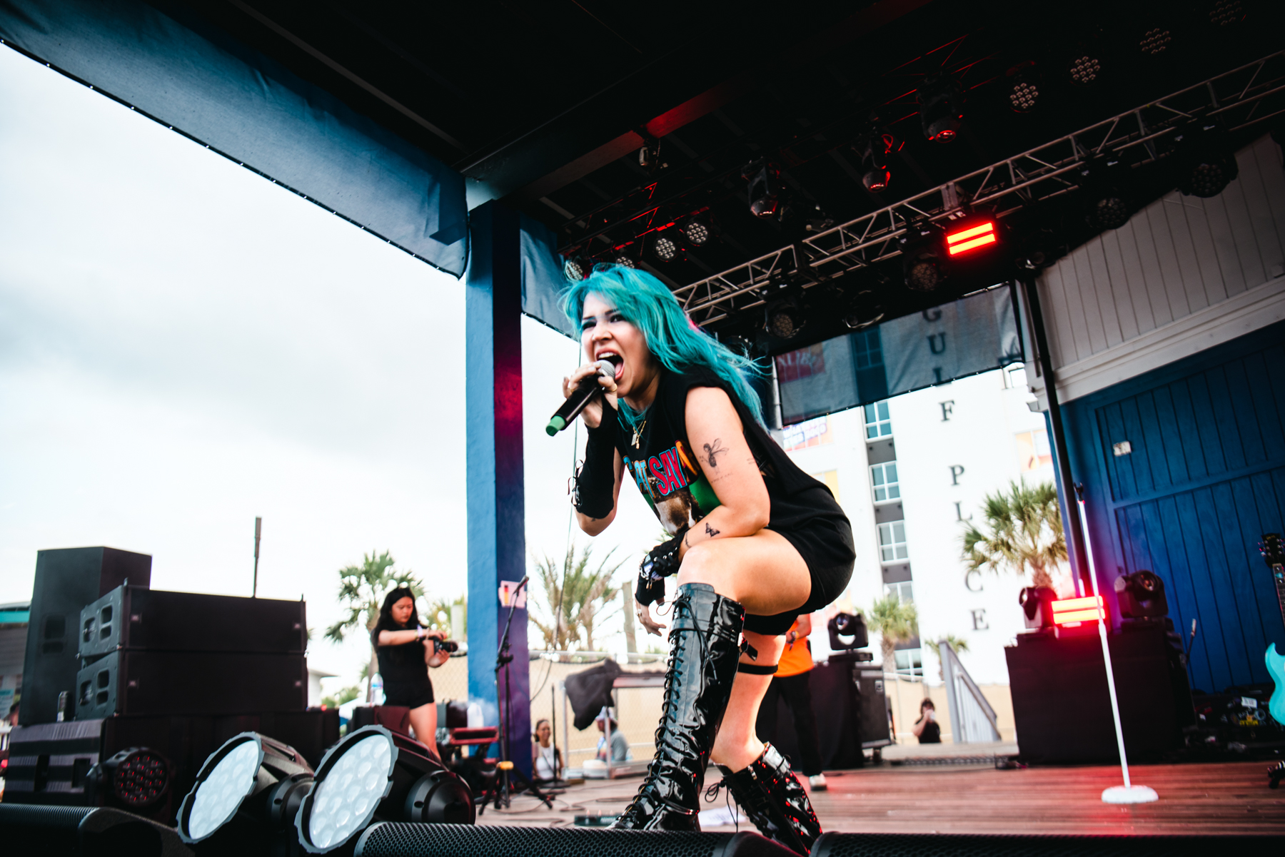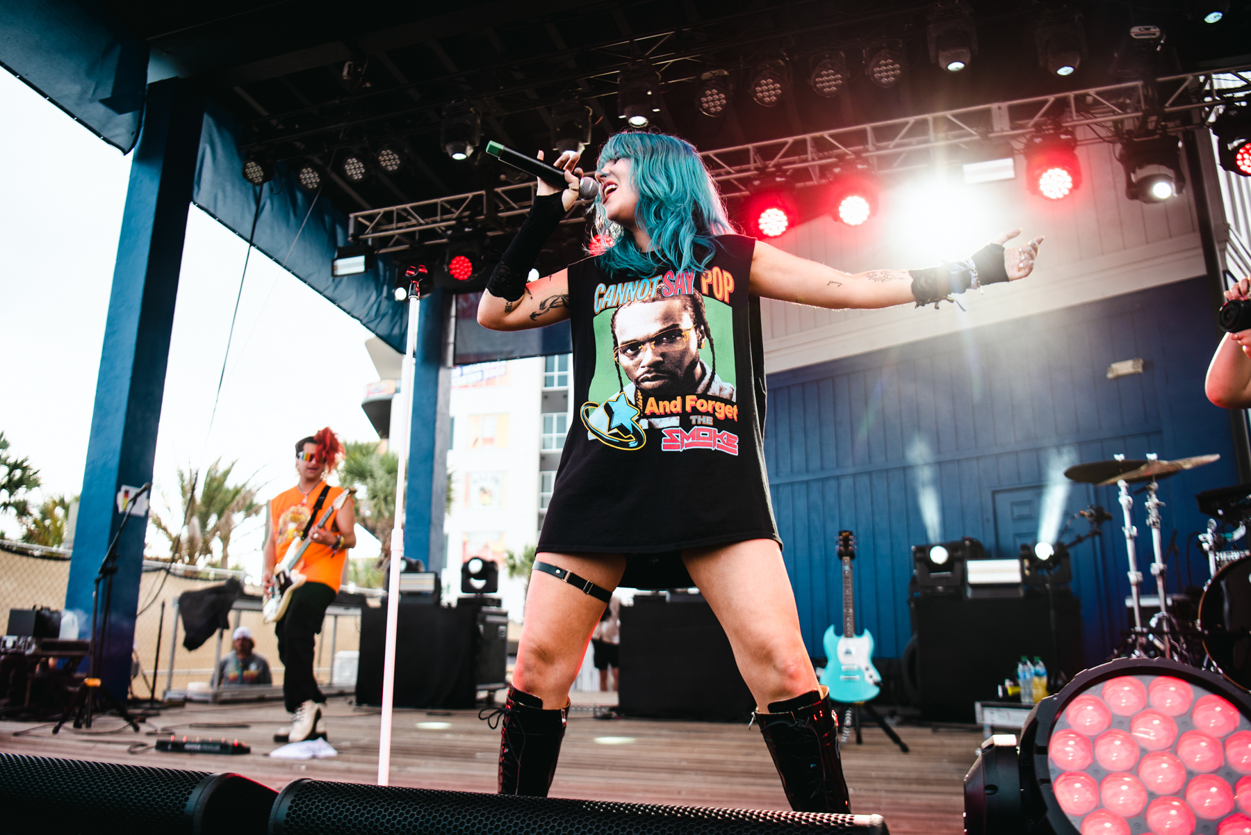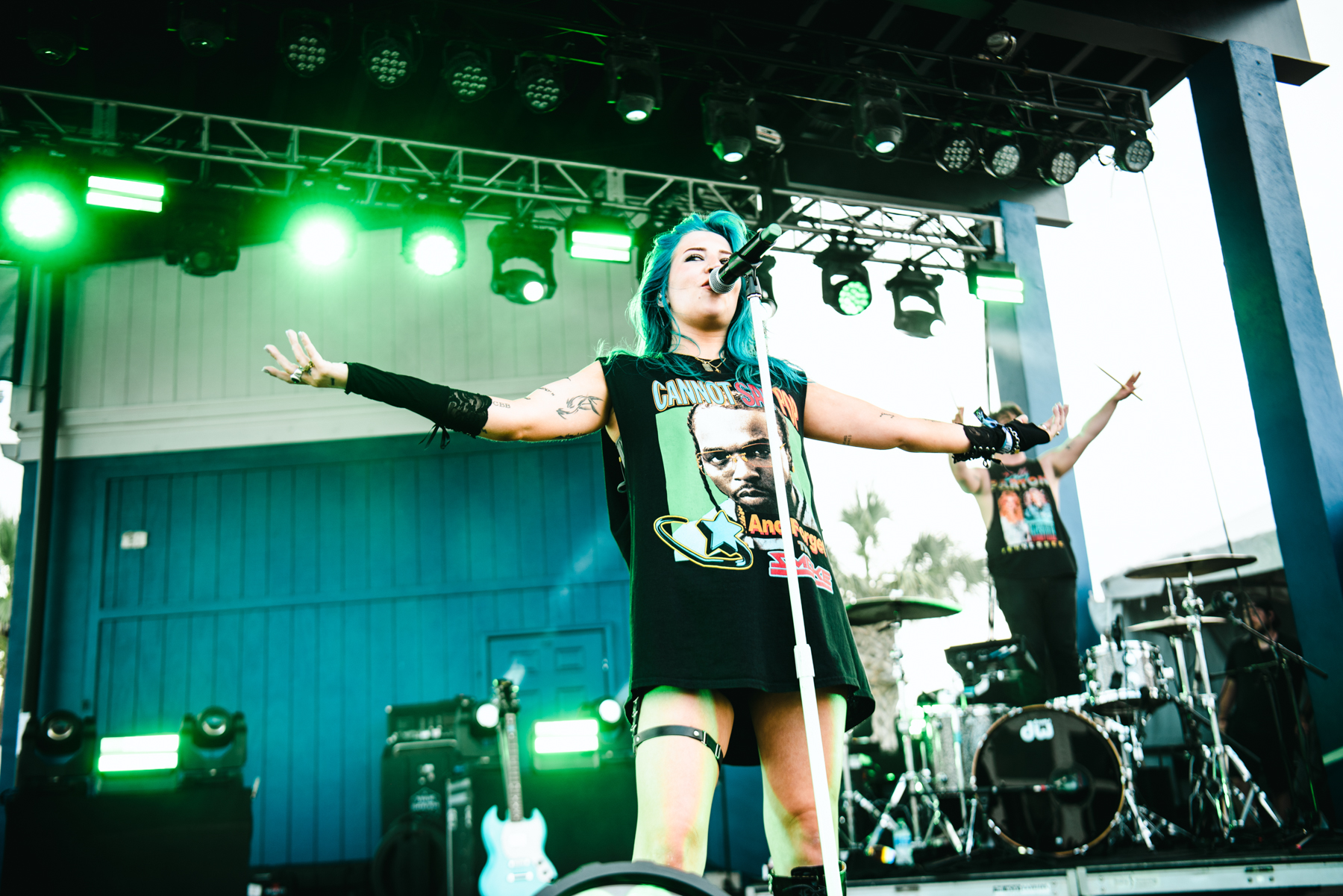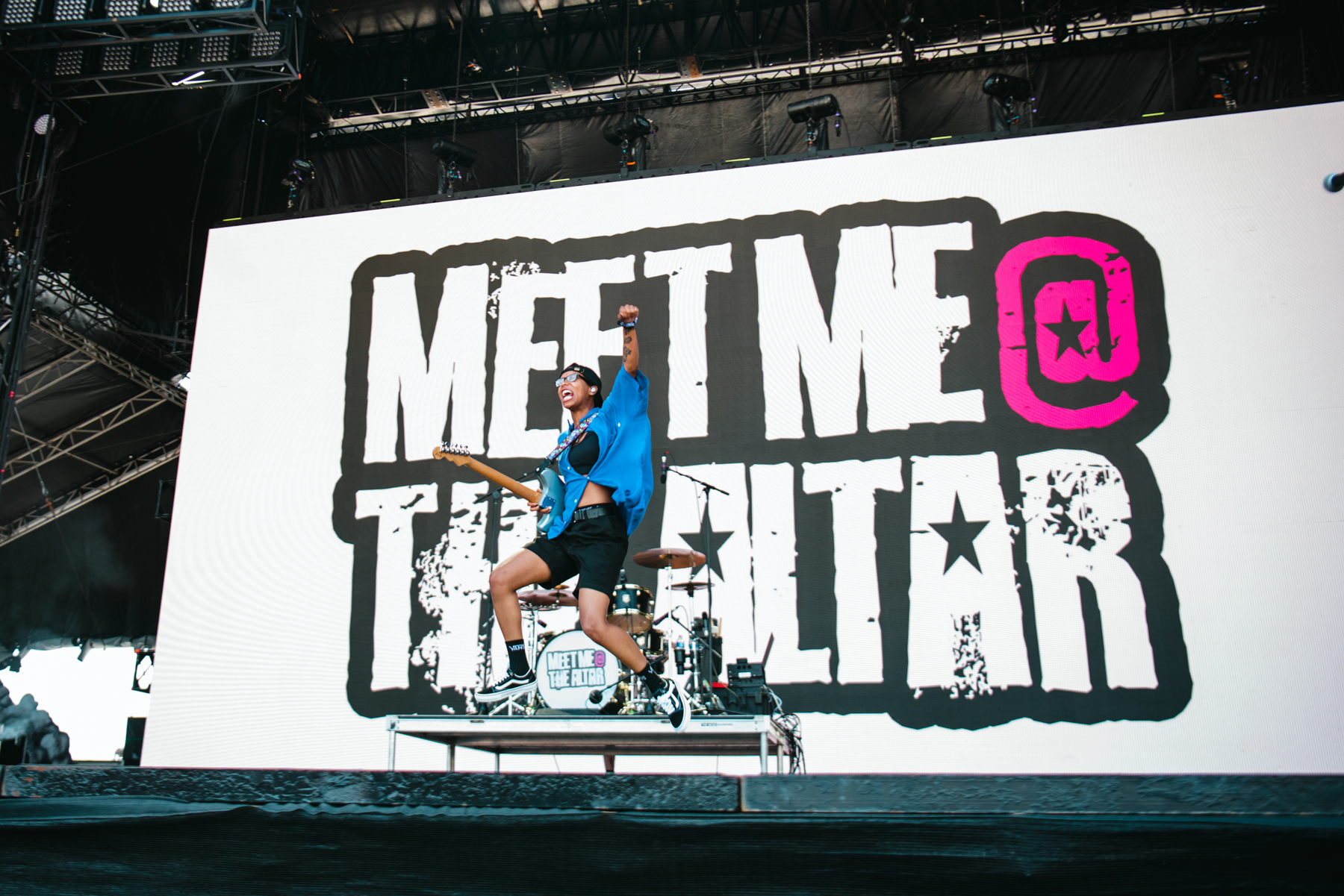 Pop-Punk Trio Meet Me @ The Altar was the first band of the day to hit the Hangout Stage and brought a sizeable crowd to their performance. The crowd went crazy as they unleashed their rendition of the song “Take Me Away” by the band Lash. The nostalgic anthem, forever etched in the memories of many, gained fame through its inclusion in the iconic 2003 movie Freaky Friday, with Lindsay Lohan and Jamie Lee Curtis. The band recently revealed on Tik Tok that they had been in the studio to record a cover of the song. With Jamie Lee Curtis recently confirming that a sequel to the film was in the works, it would be an awesome addition to include Meet Me @ The Altar’s cover for the sequel.